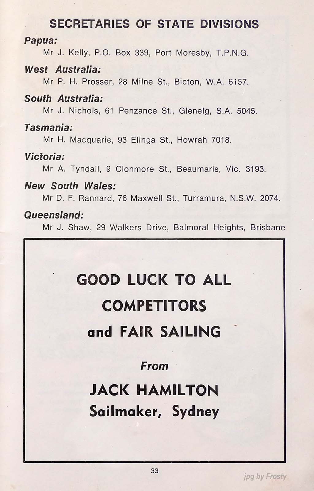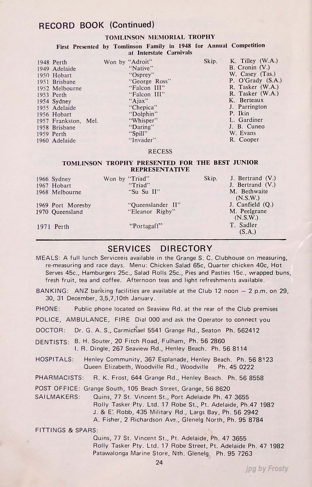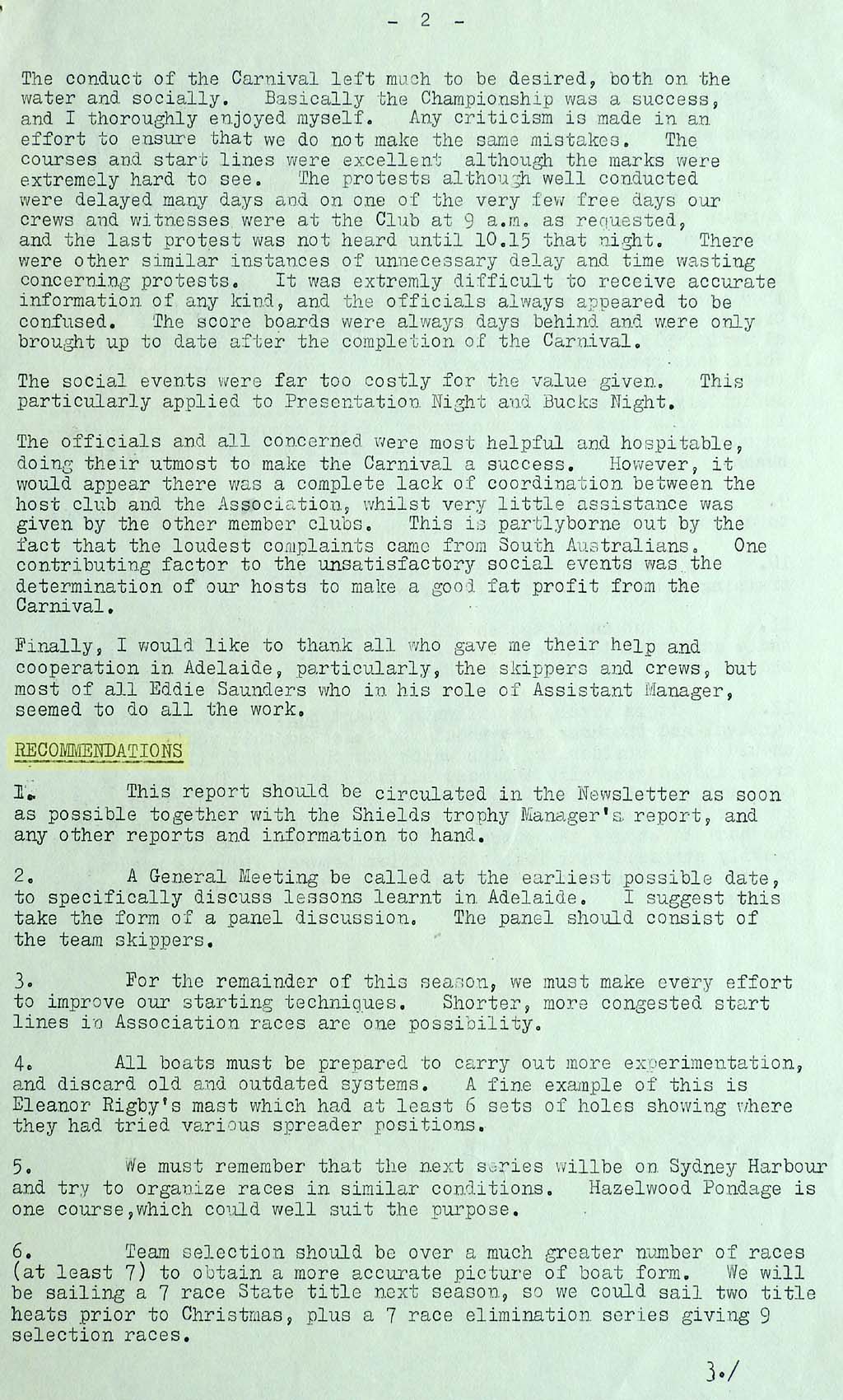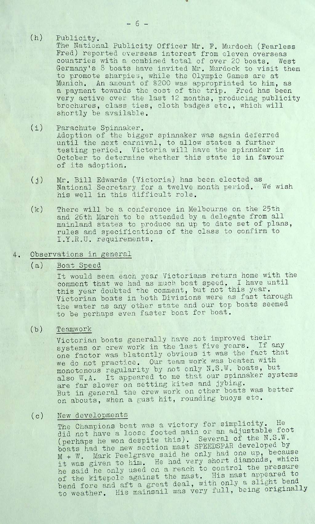 The results were taken from the Victorian Sharpie Association Newsletter dated February 1972