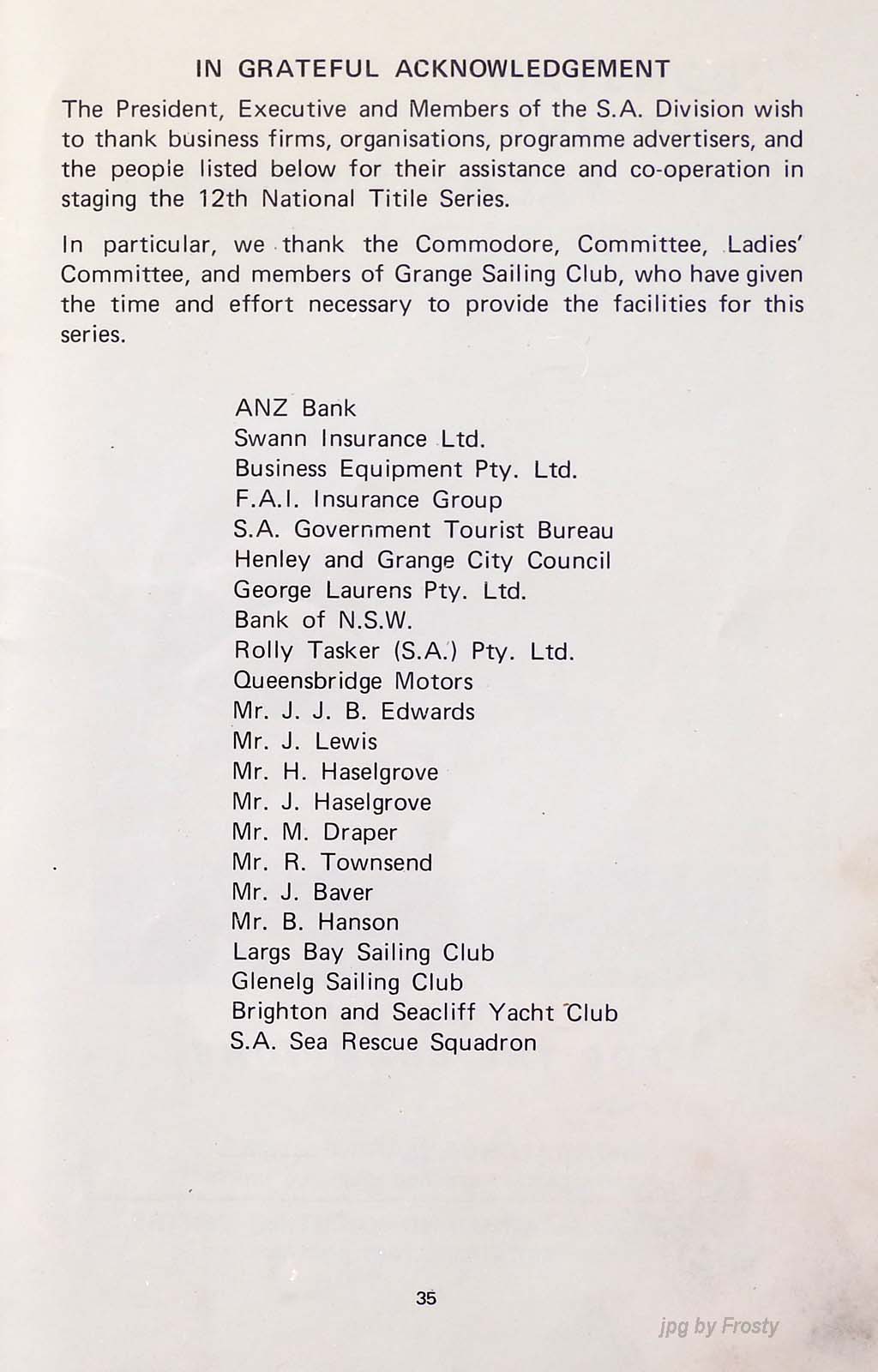 at Grange Sailing Club, Adelaide.