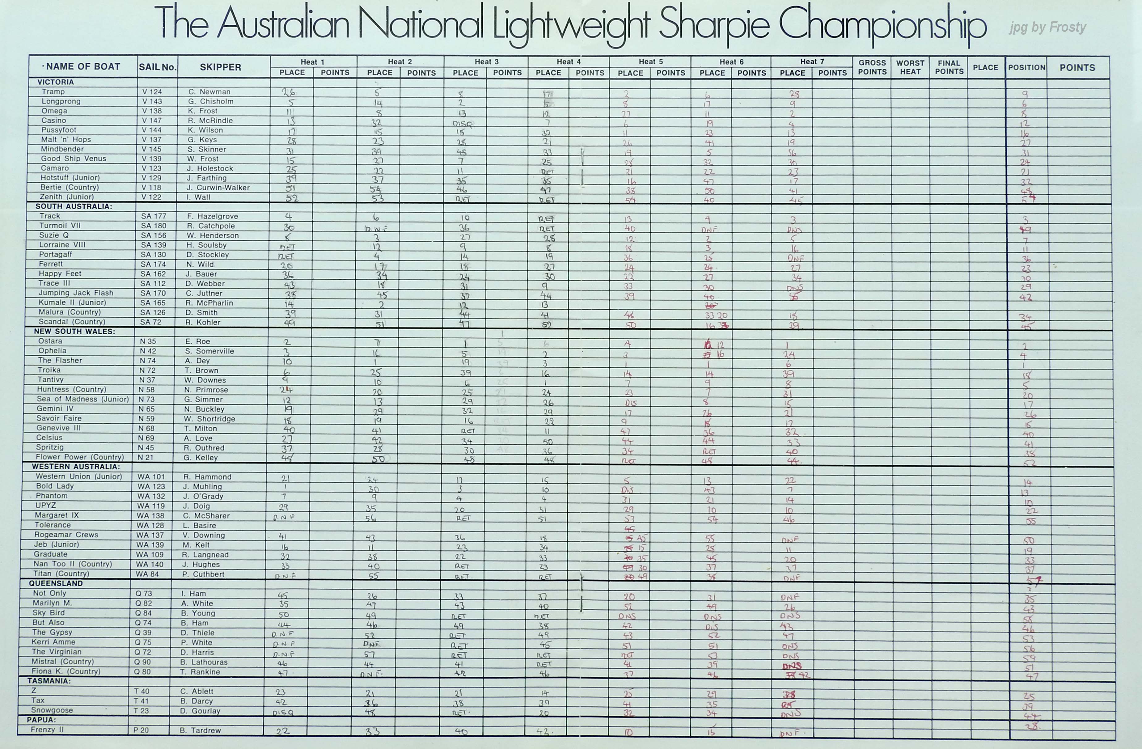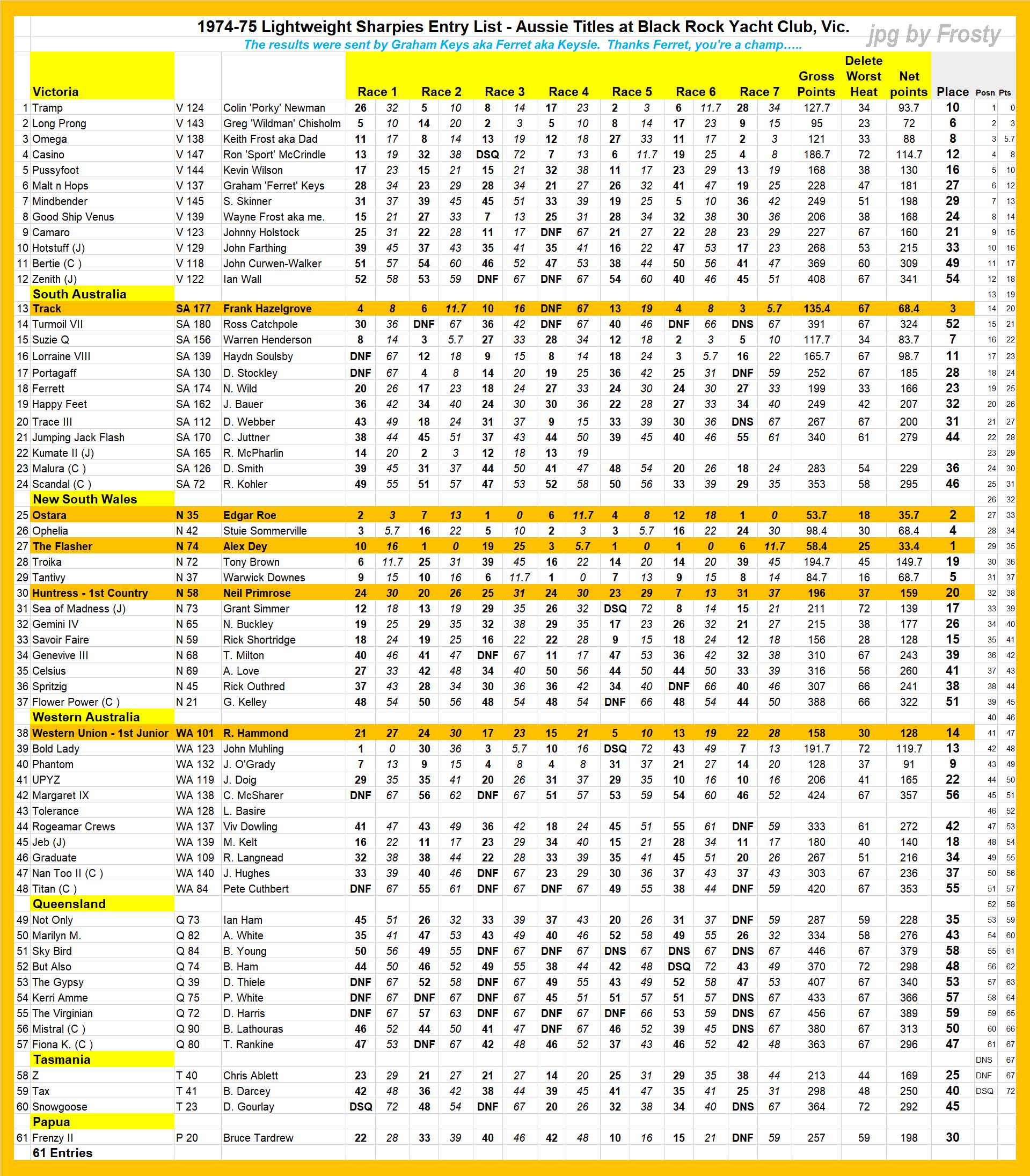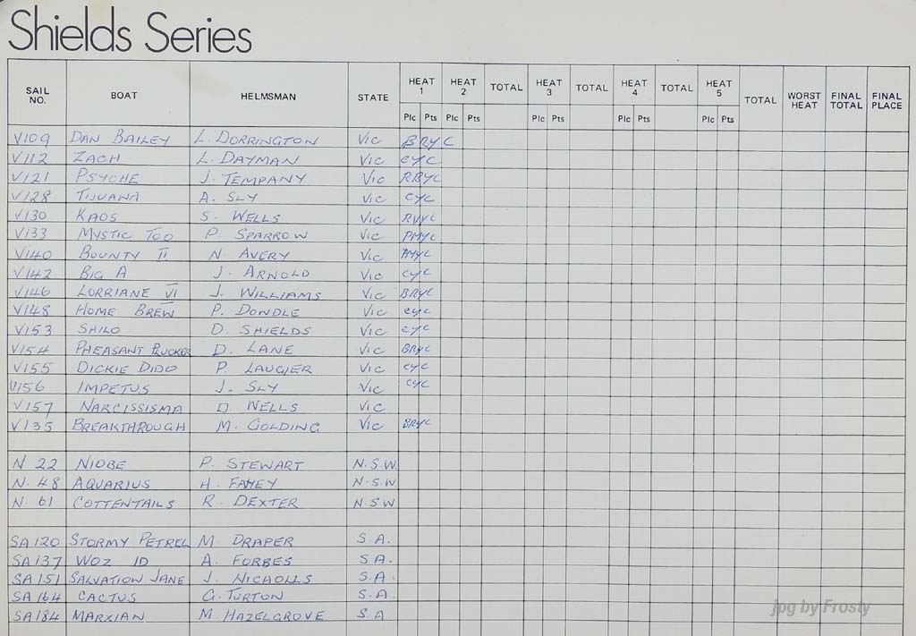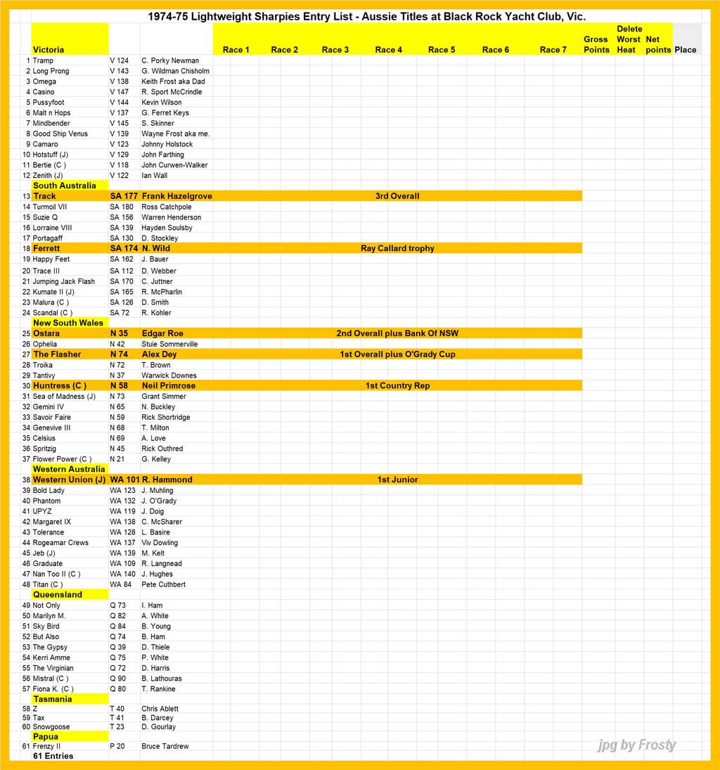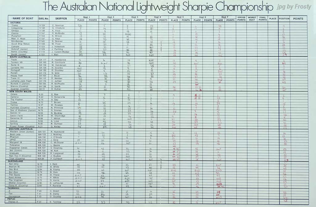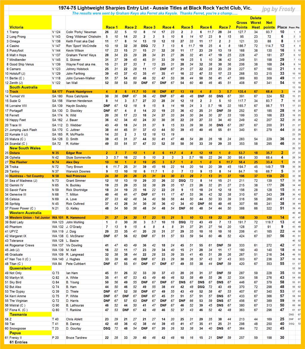 The Official Results taken from the ASSA Official Logbook.