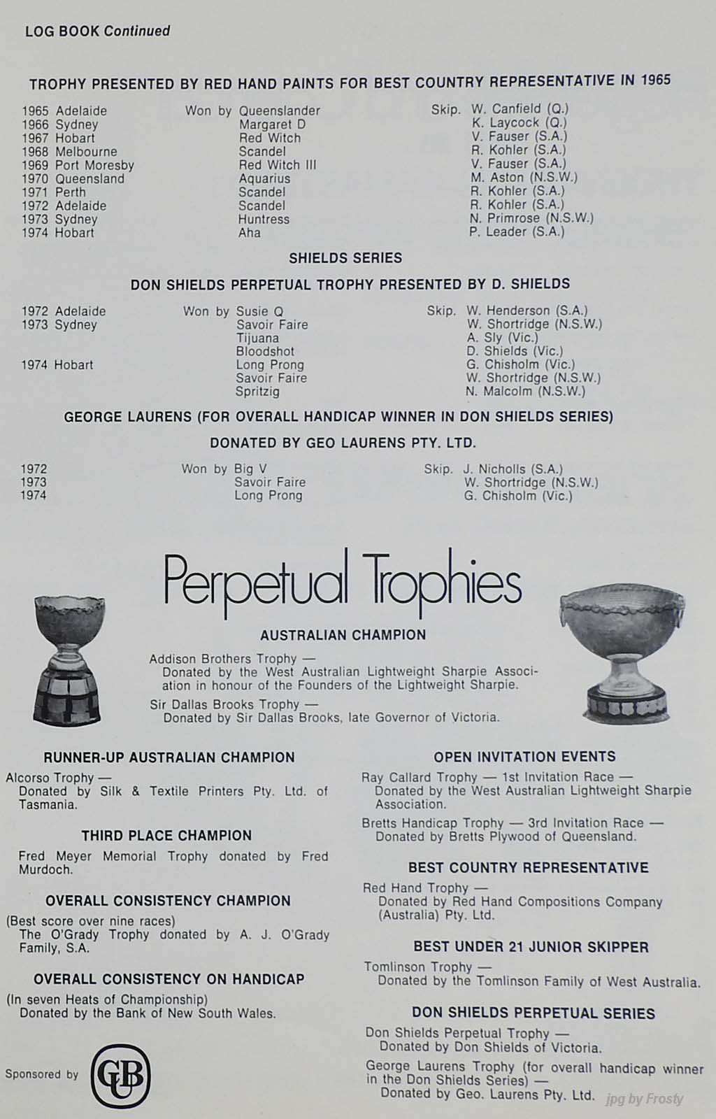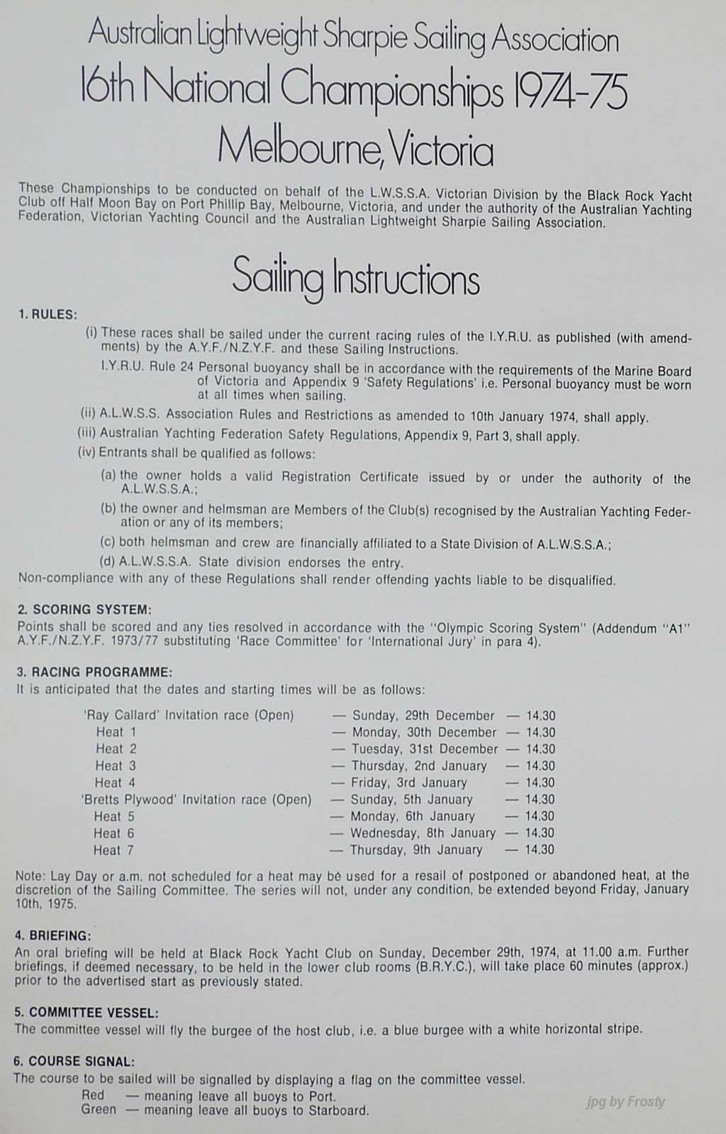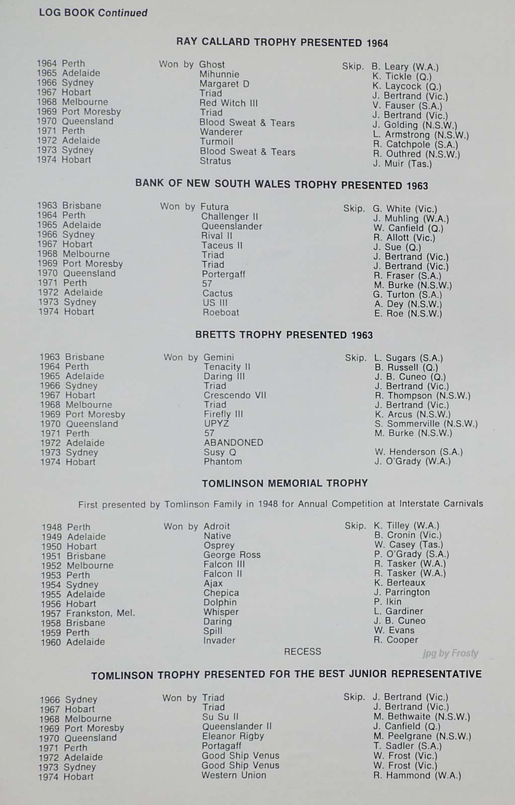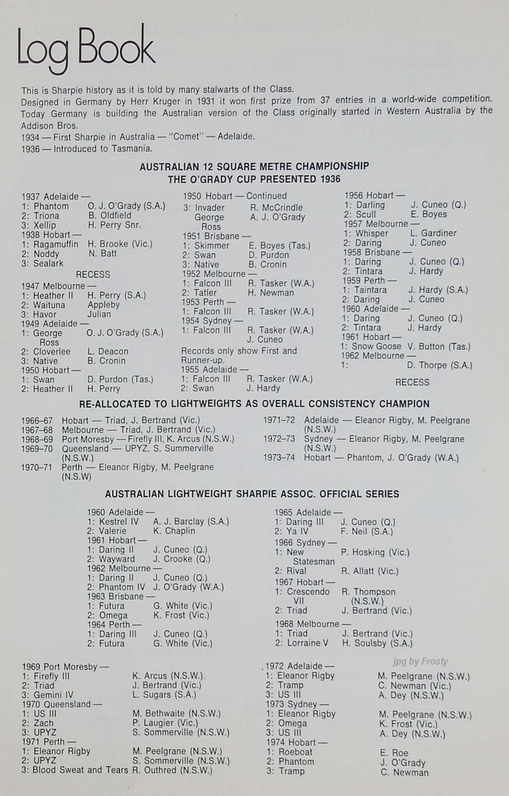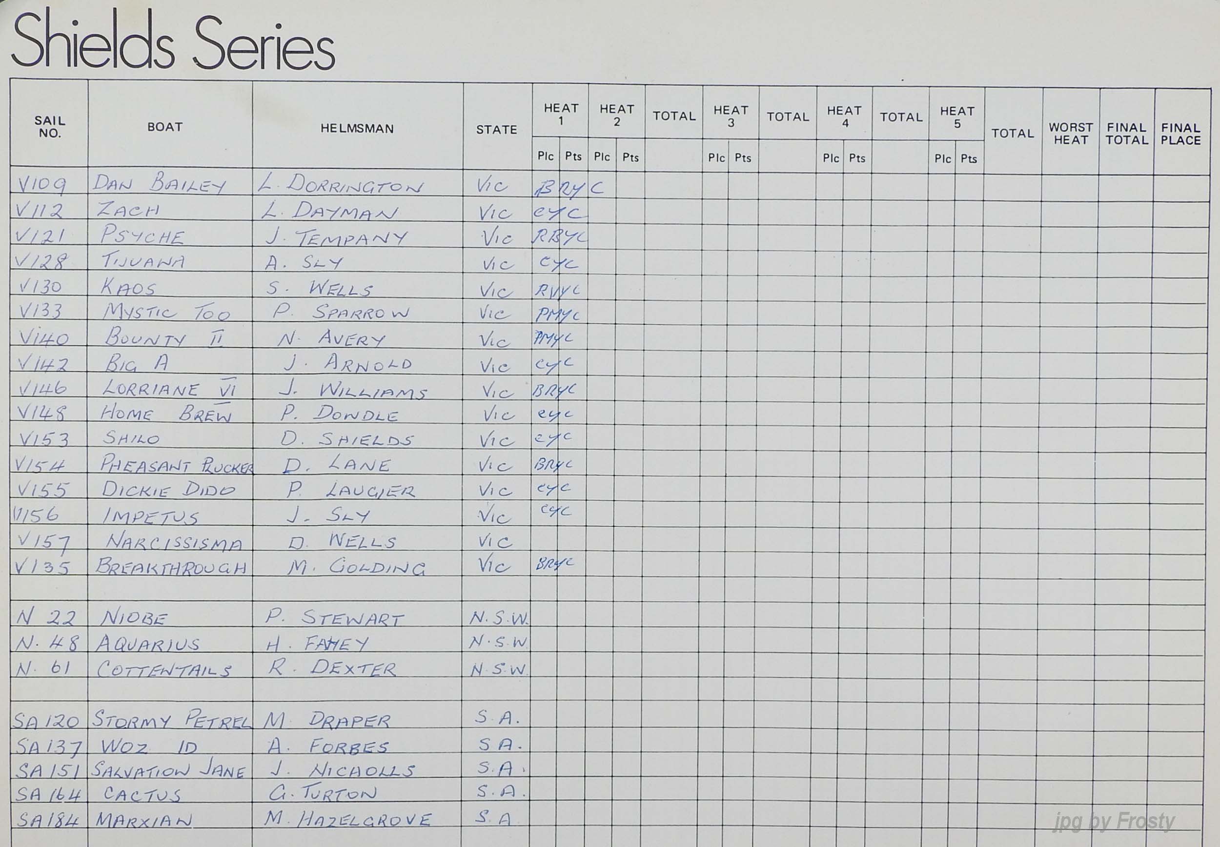 The Official Results taken from the ASSA Official Logbook.