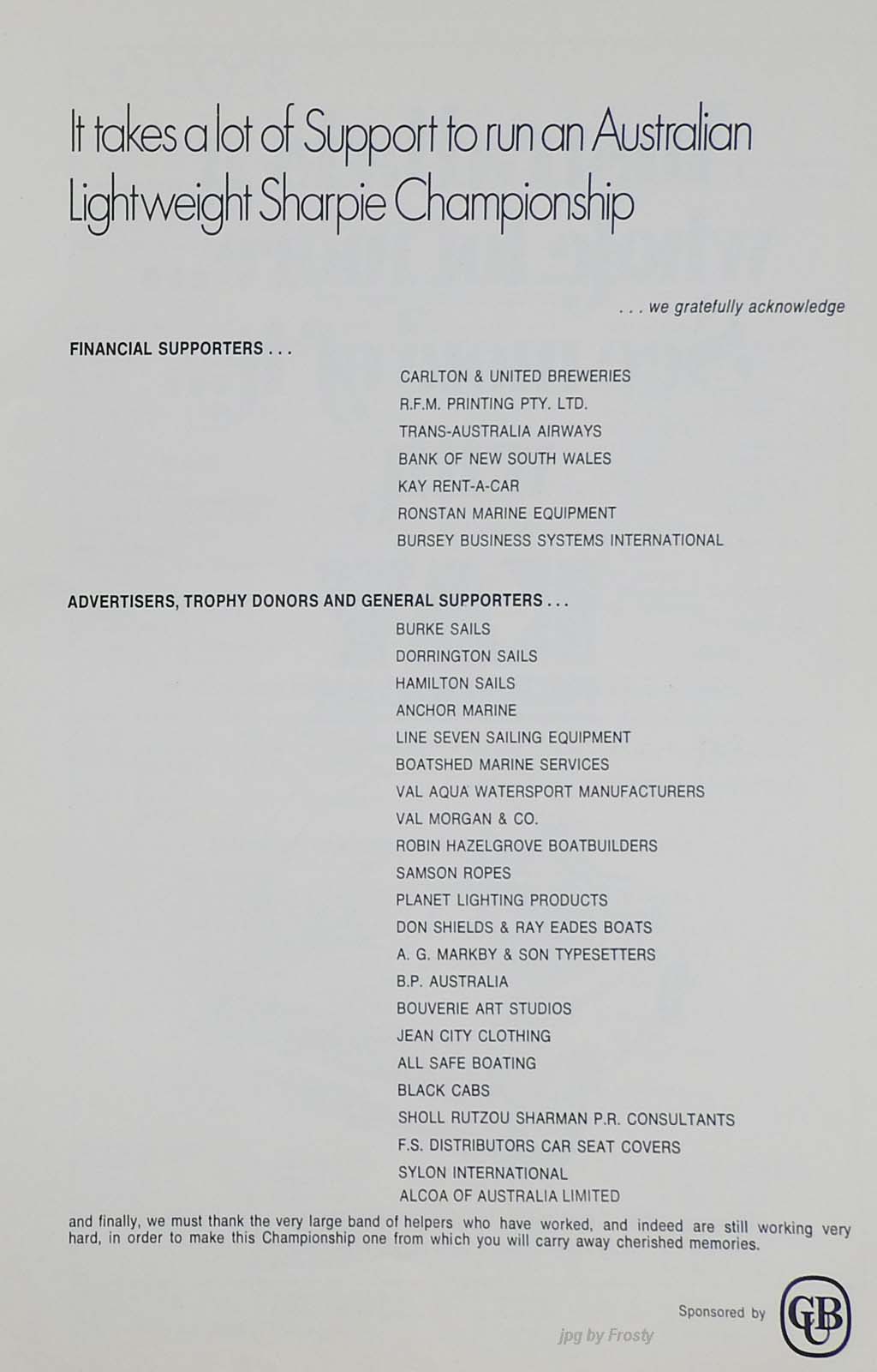 V123-Johnny Holstock, V136-Geoff Morris,