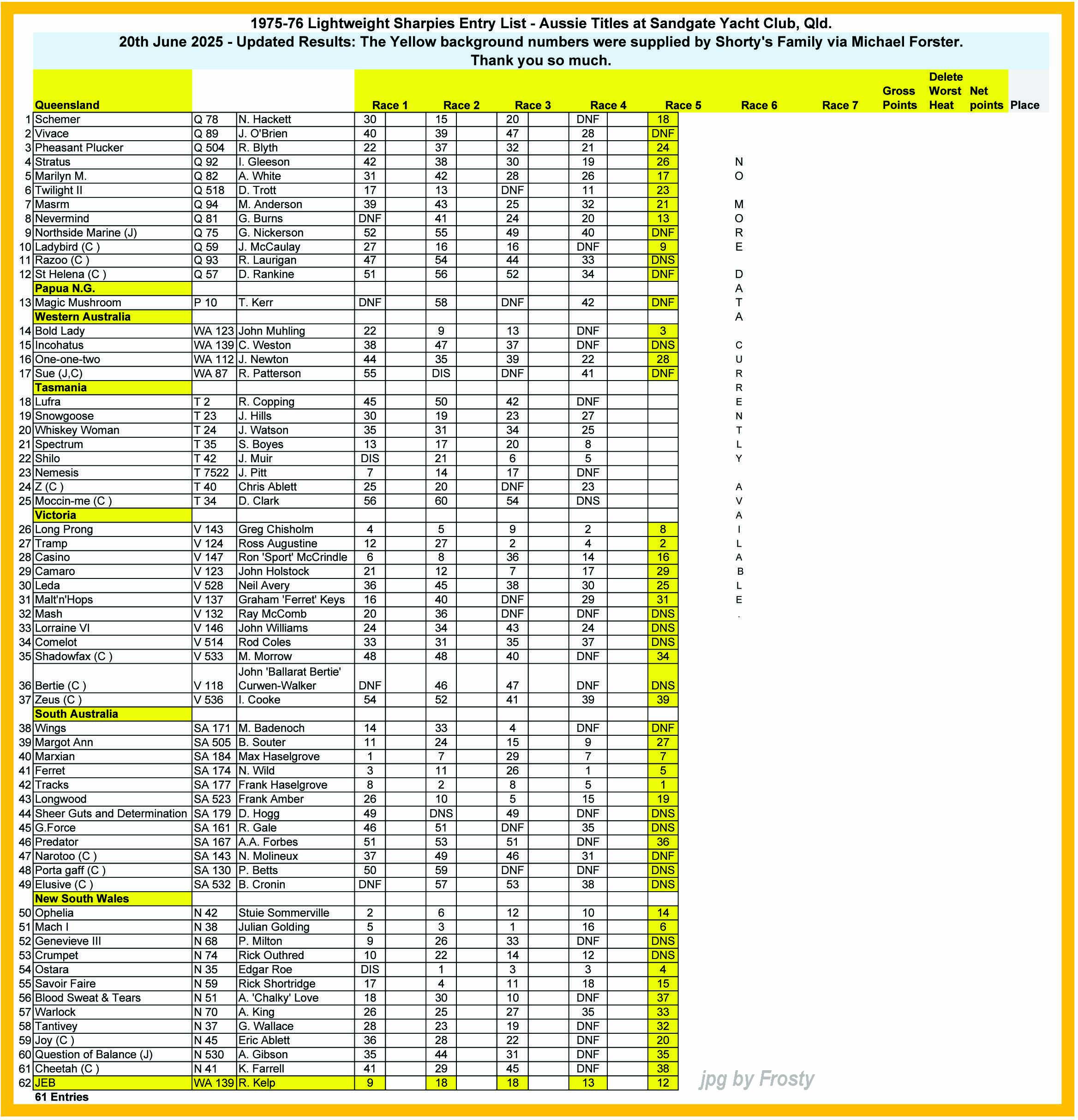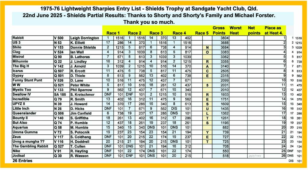 The 4th Heat plus 4 Heats of the Shields Trophy were supplied by Shorty's Family via Michael Forster.