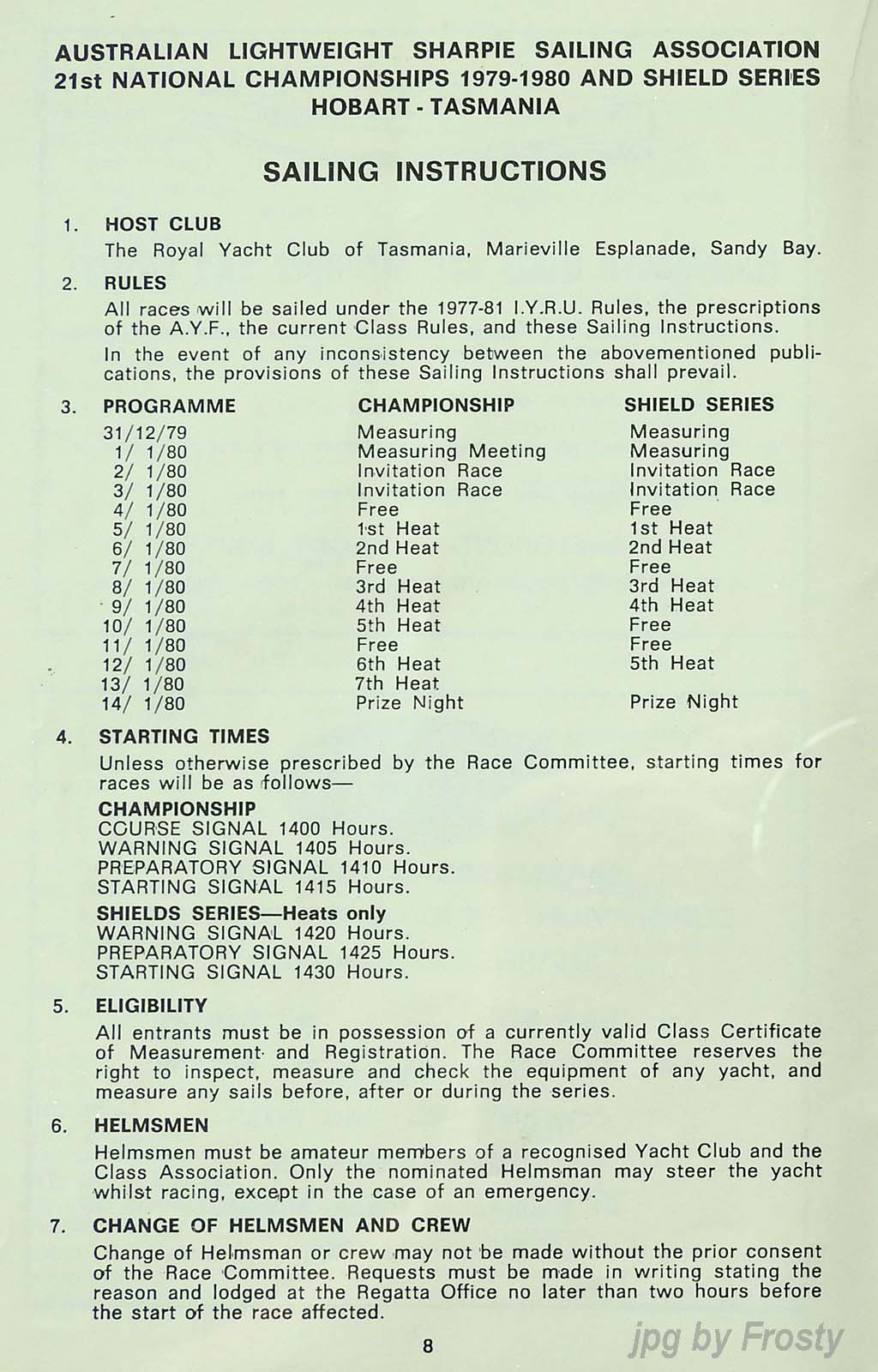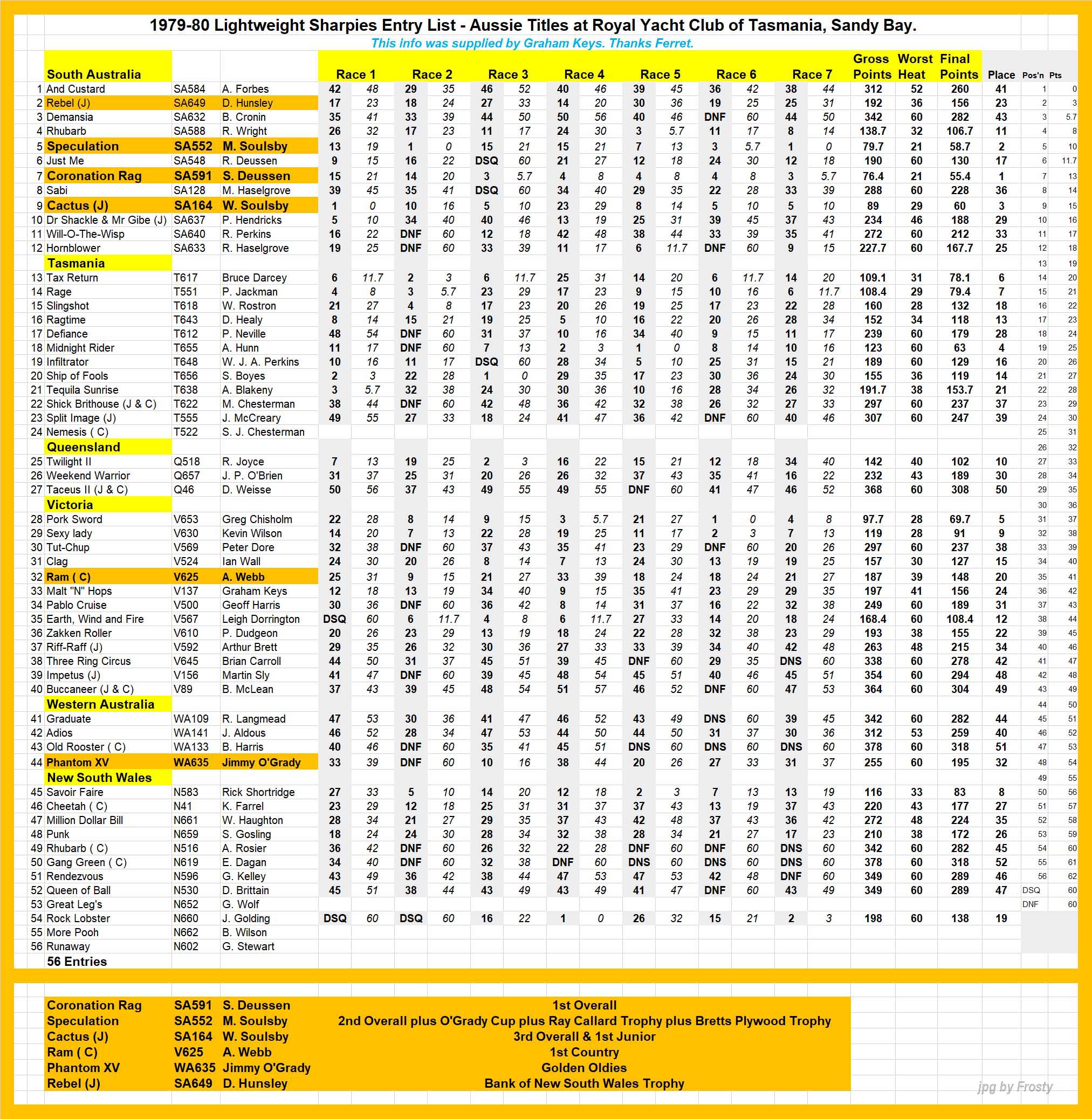 Host Club: Royal Yacht Club of Tasmania, Sandy Bay.