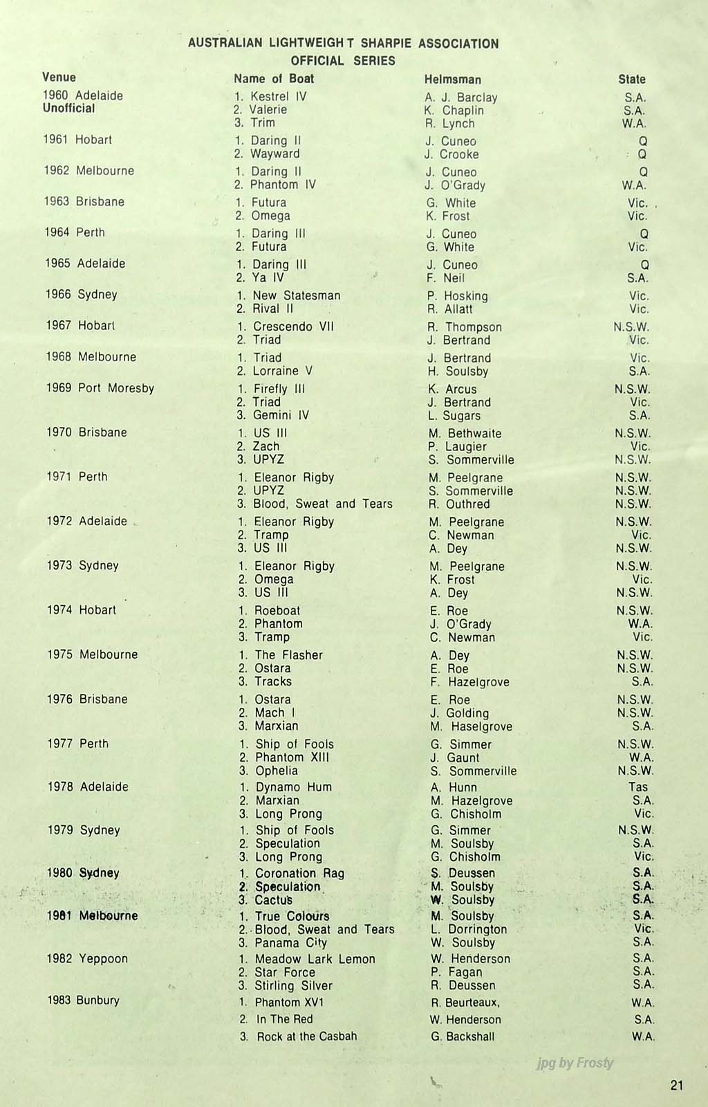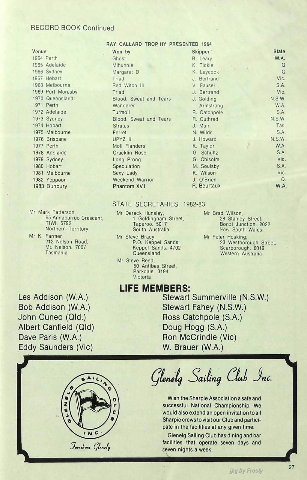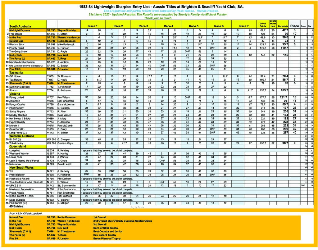 1983/84 Brighton & Seacliff Yacht Club, SA.