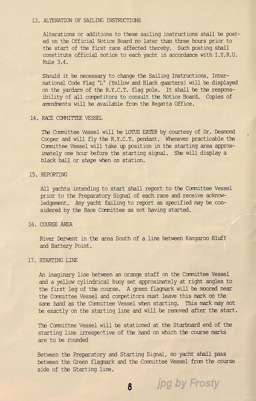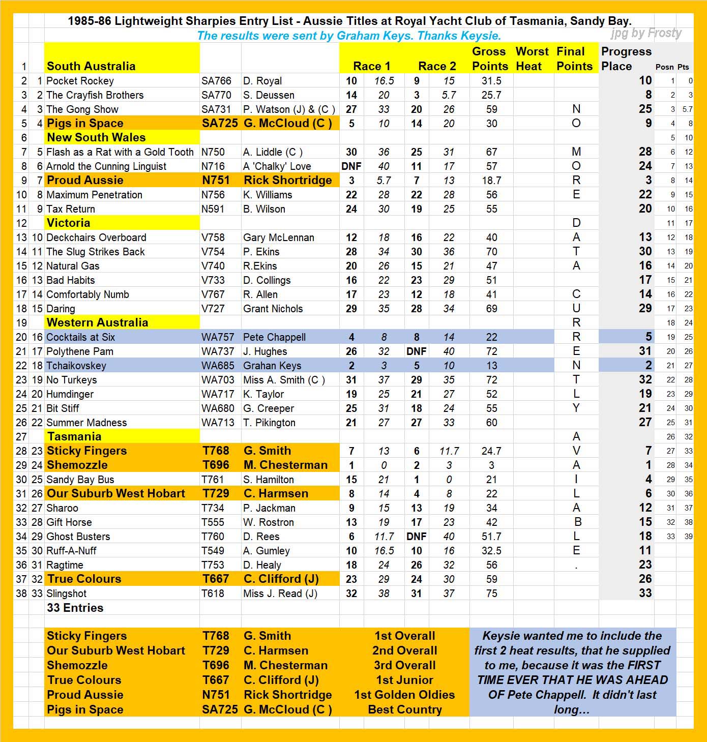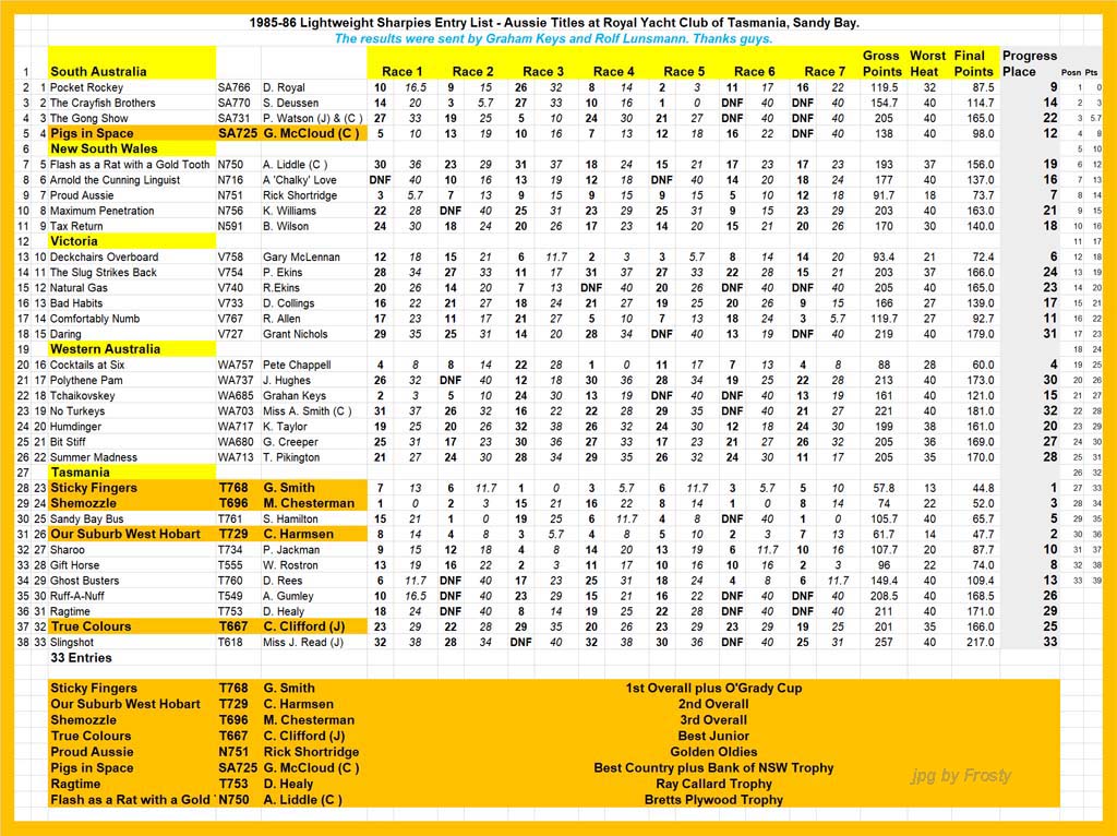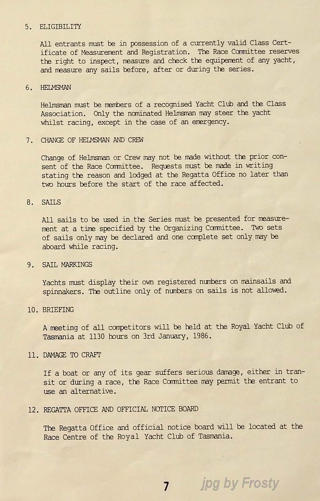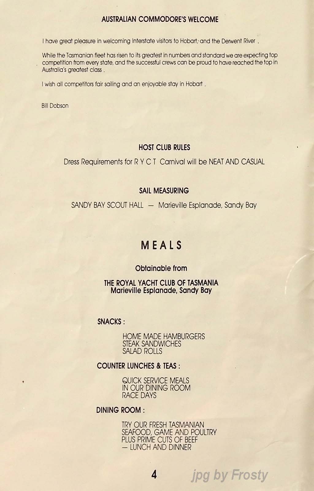 Host Club: Royal Yacht Club of Tasmania, Sandy Bay.