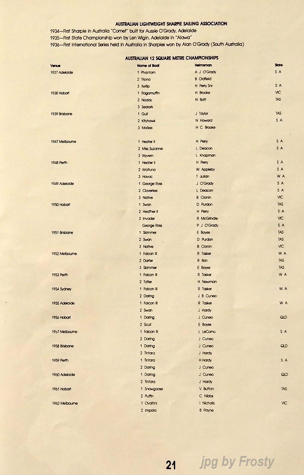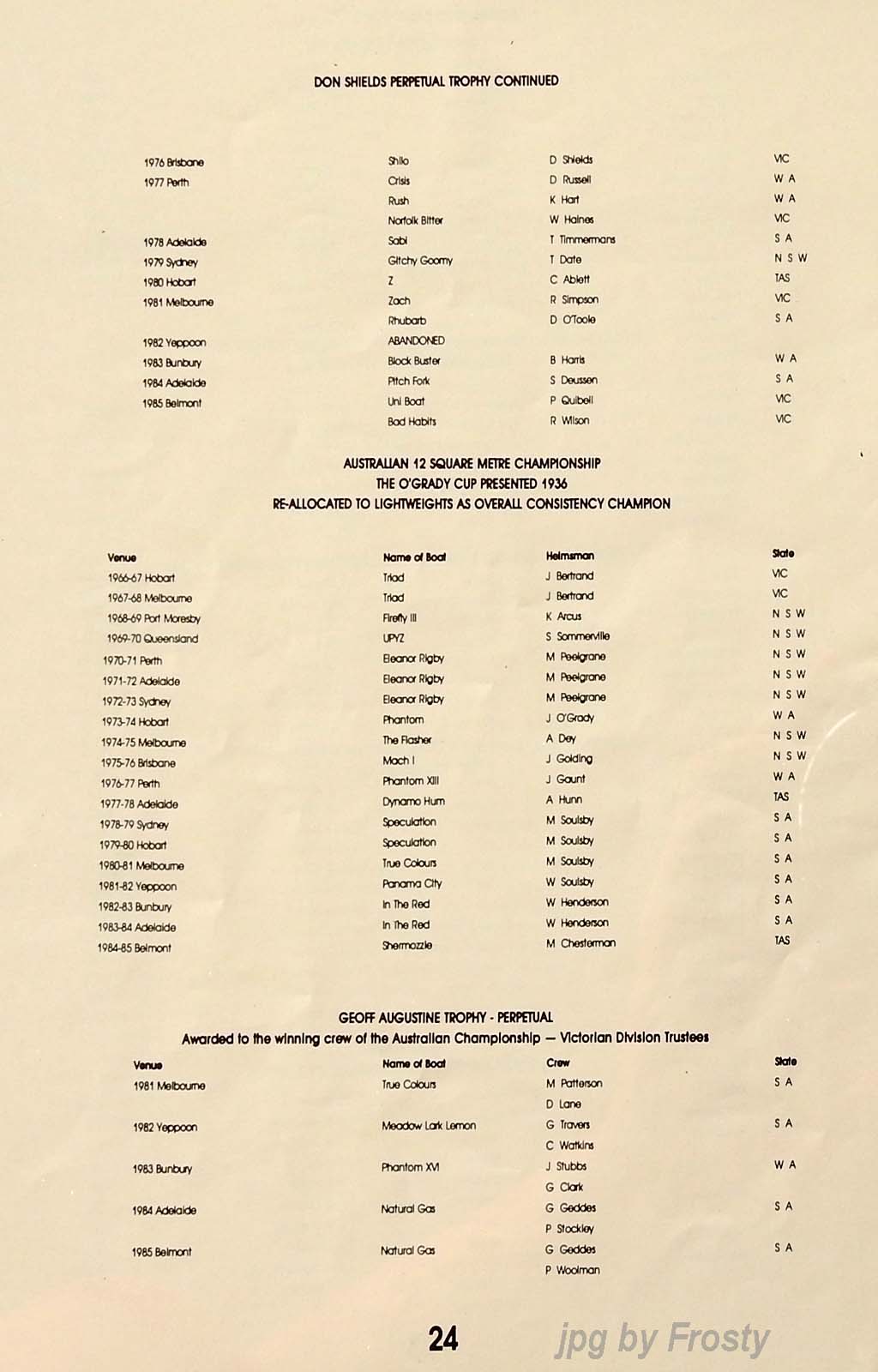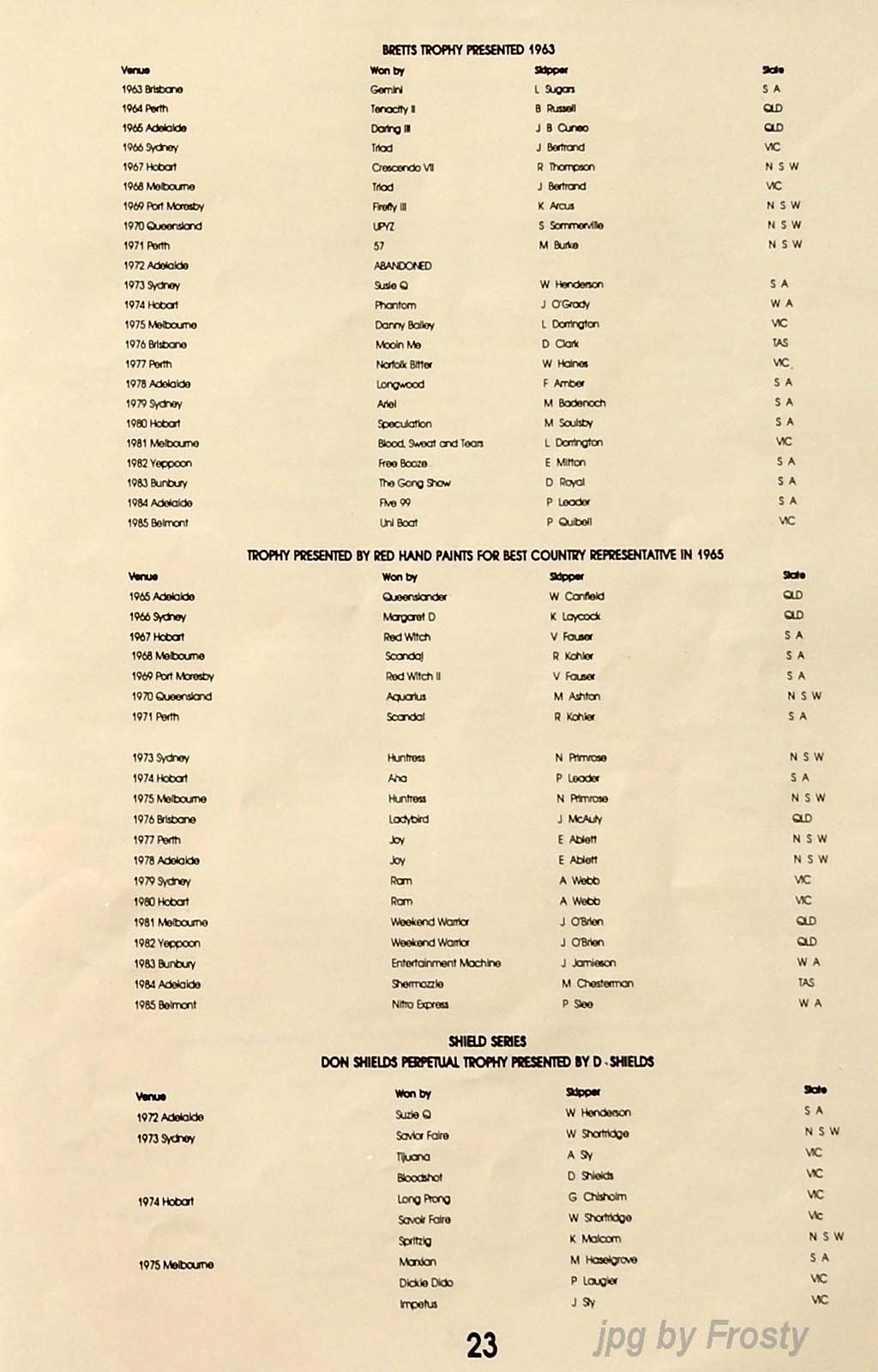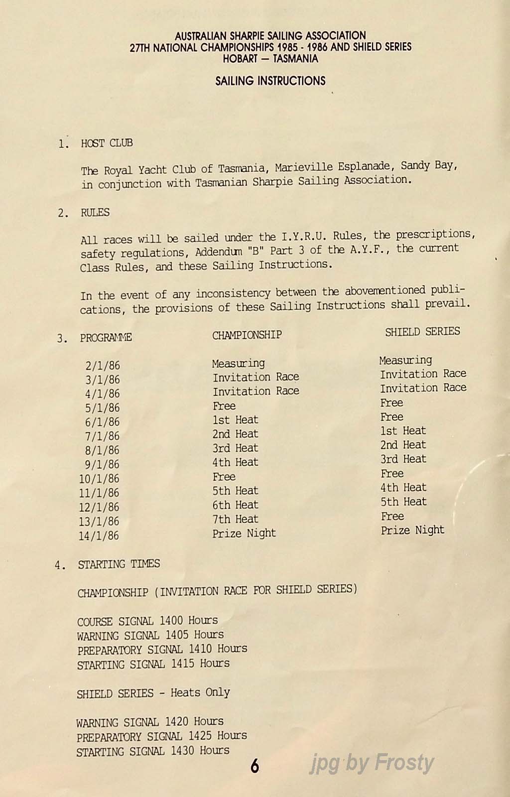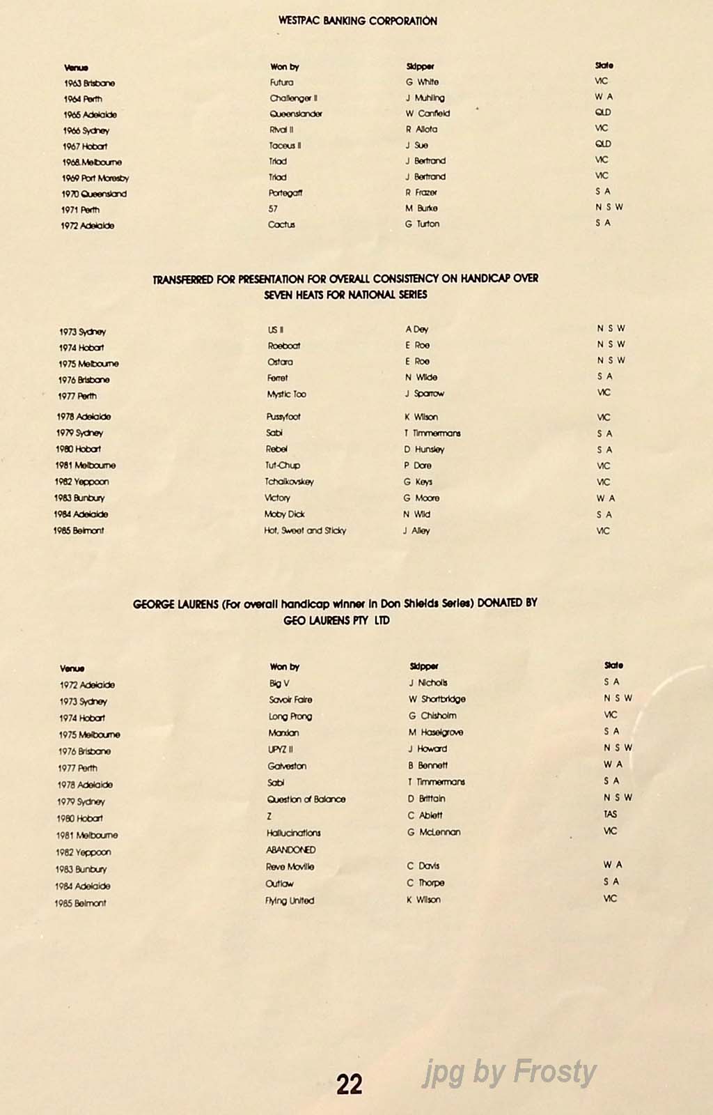 Host Club: Royal Yacht Club of Tasmania, Sandy Bay.