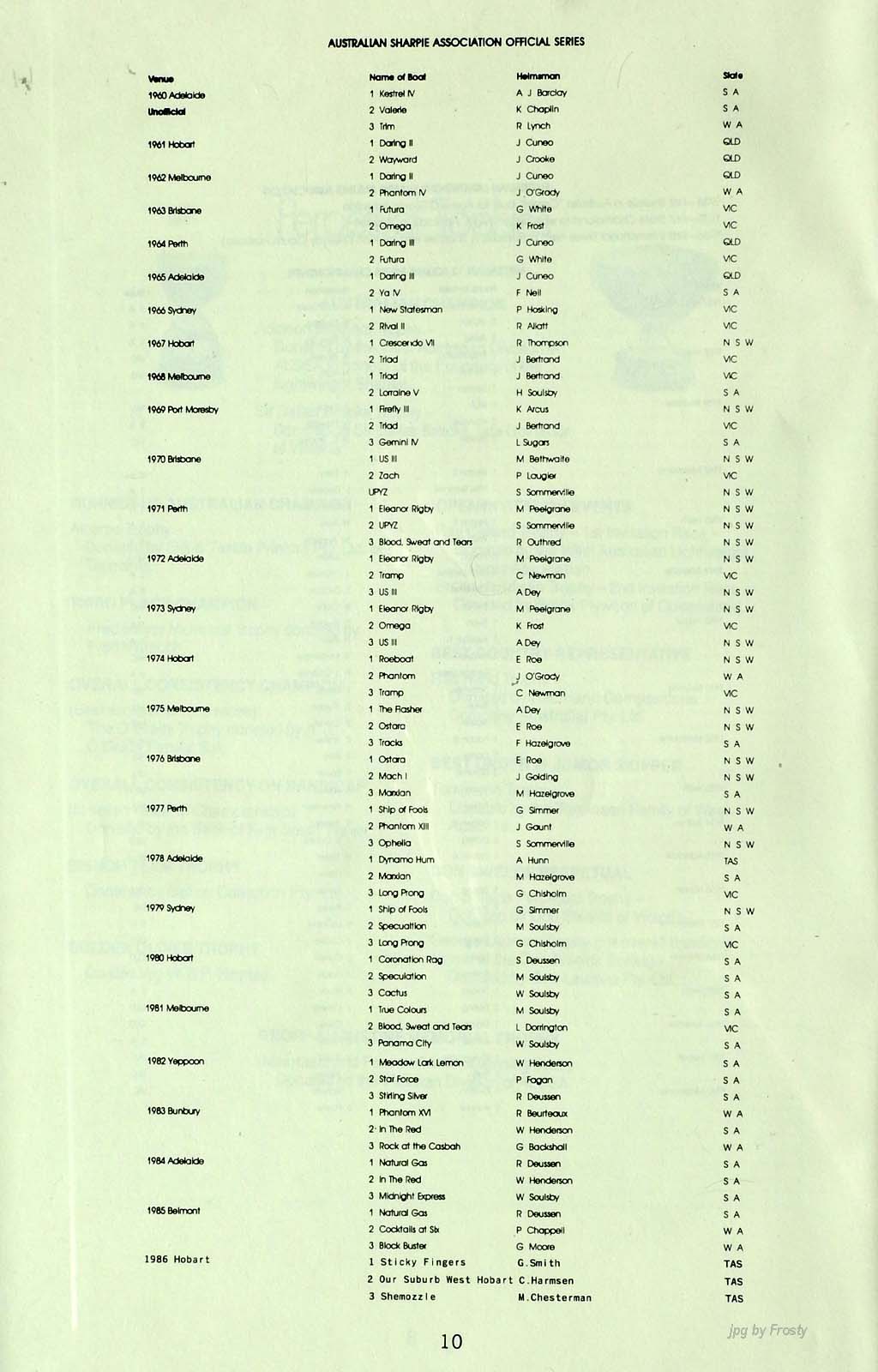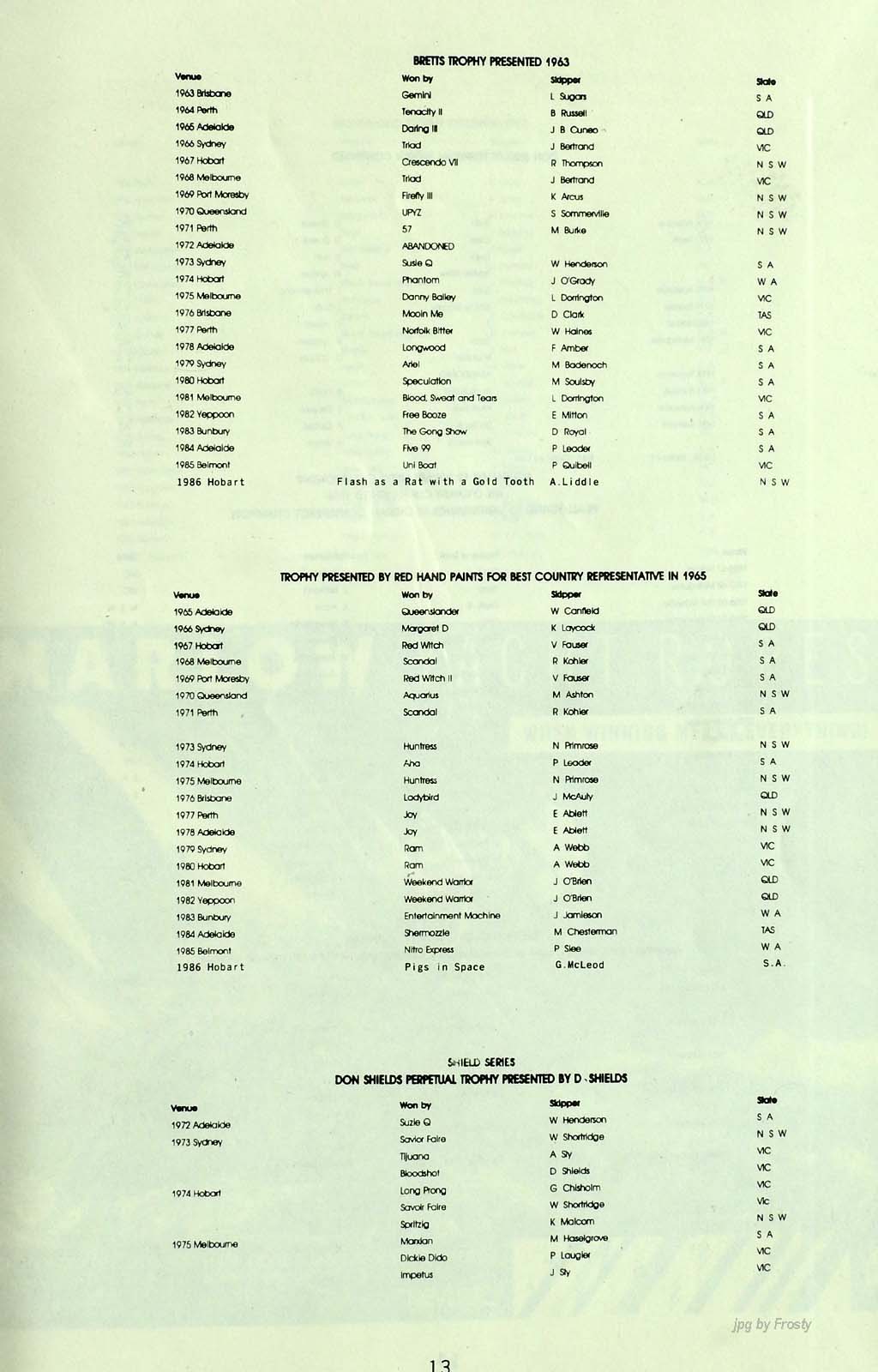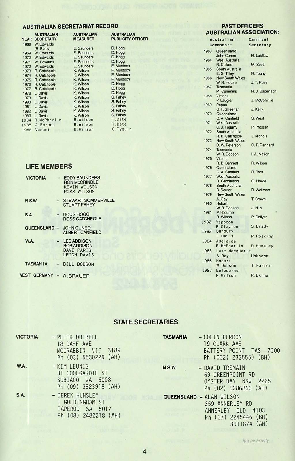 The info was supplied by Ross Wilson. Thanks Ross.