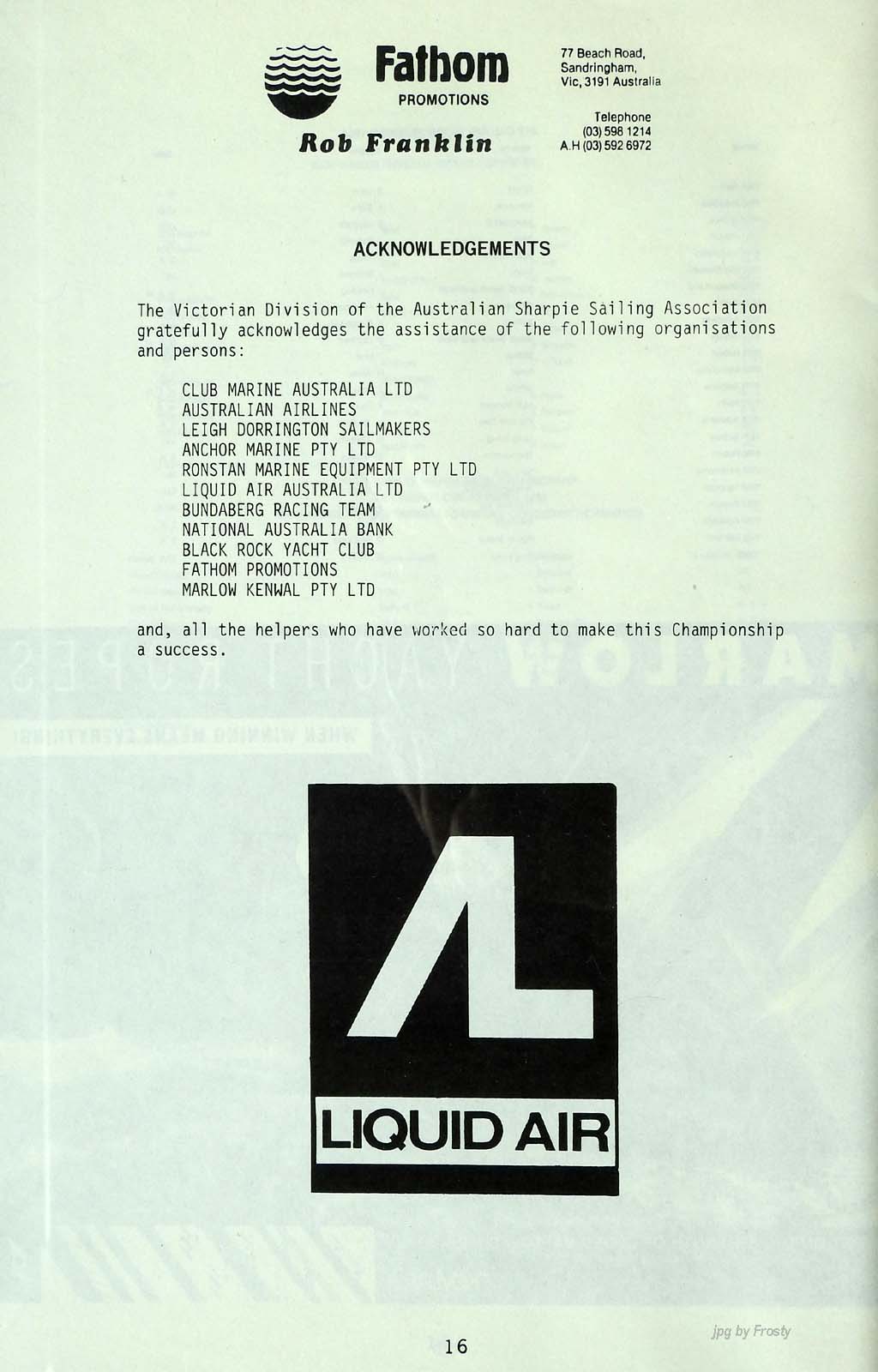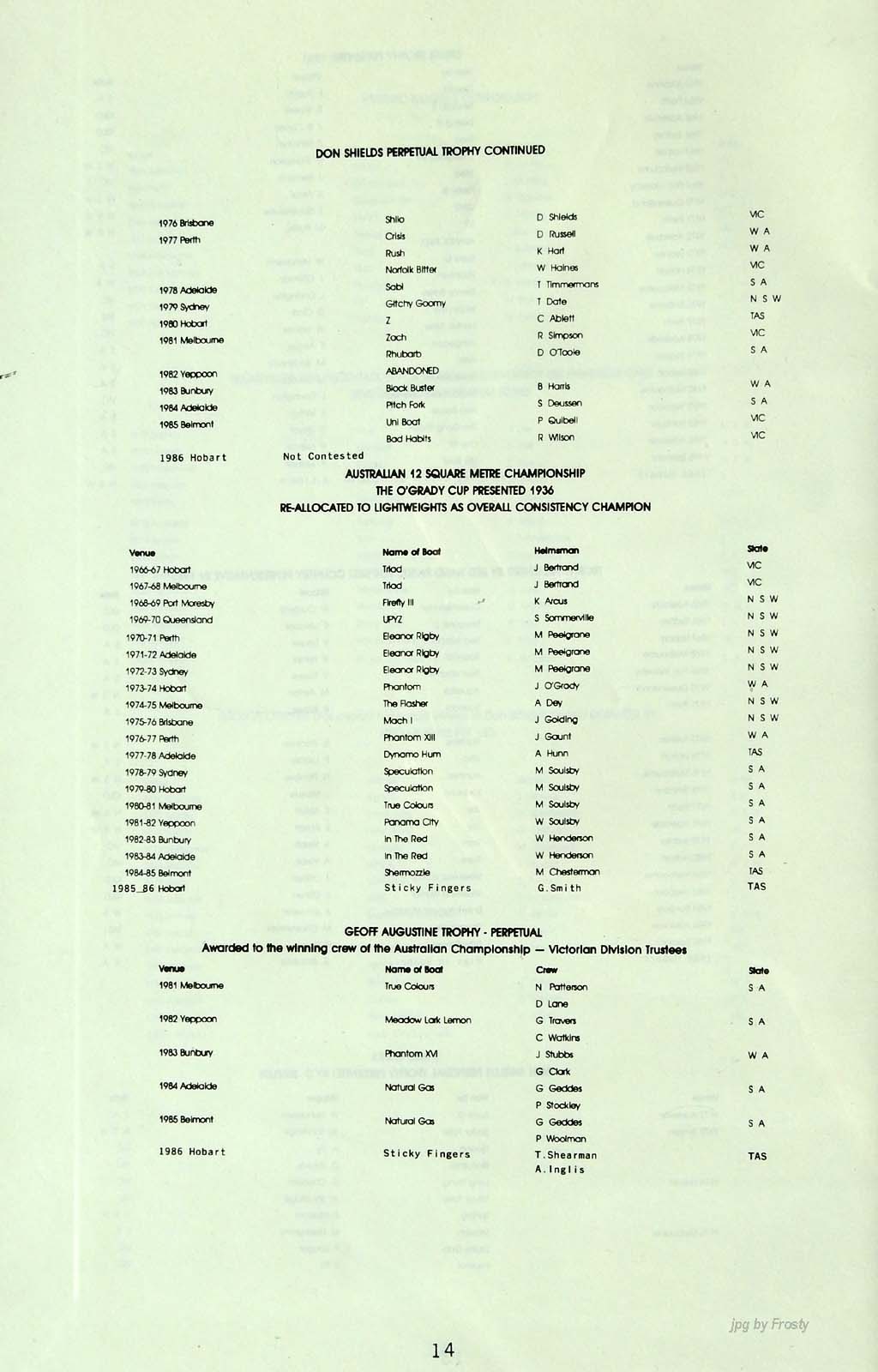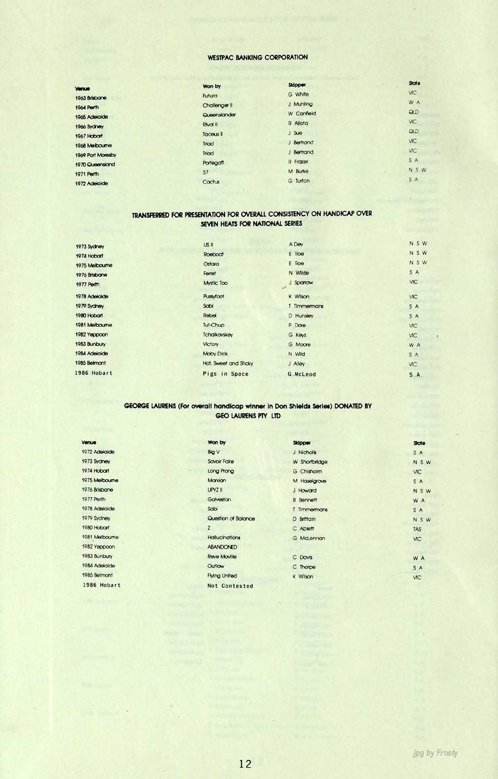 The info was supplied by Ross Wilson. Thanks Ross.