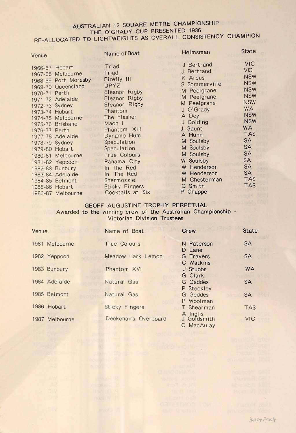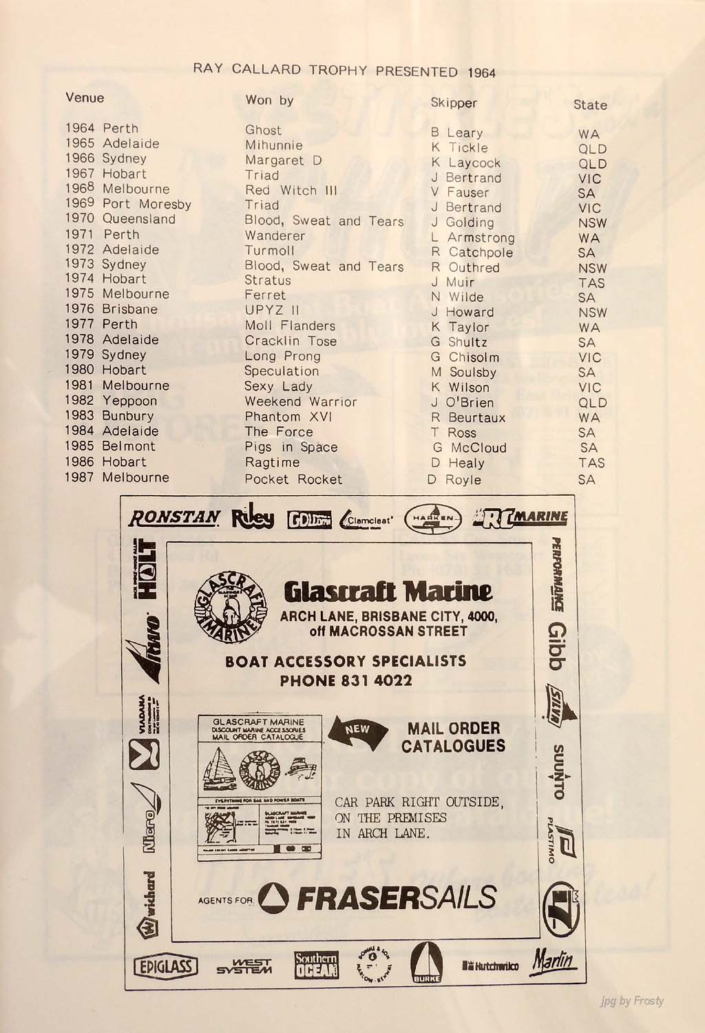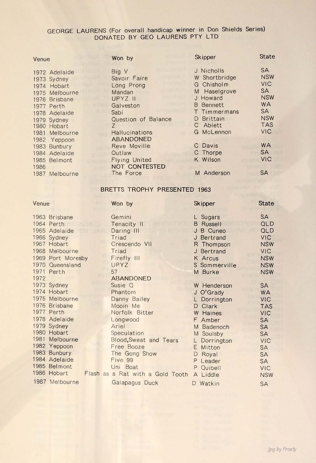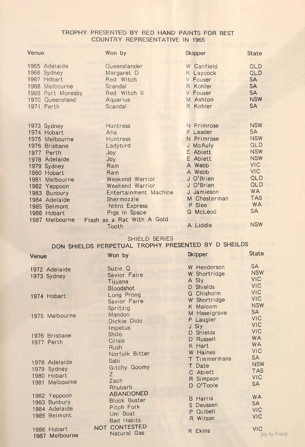 The info was supplied by Ross Wilson (Programme) and Nev Wild (Results).