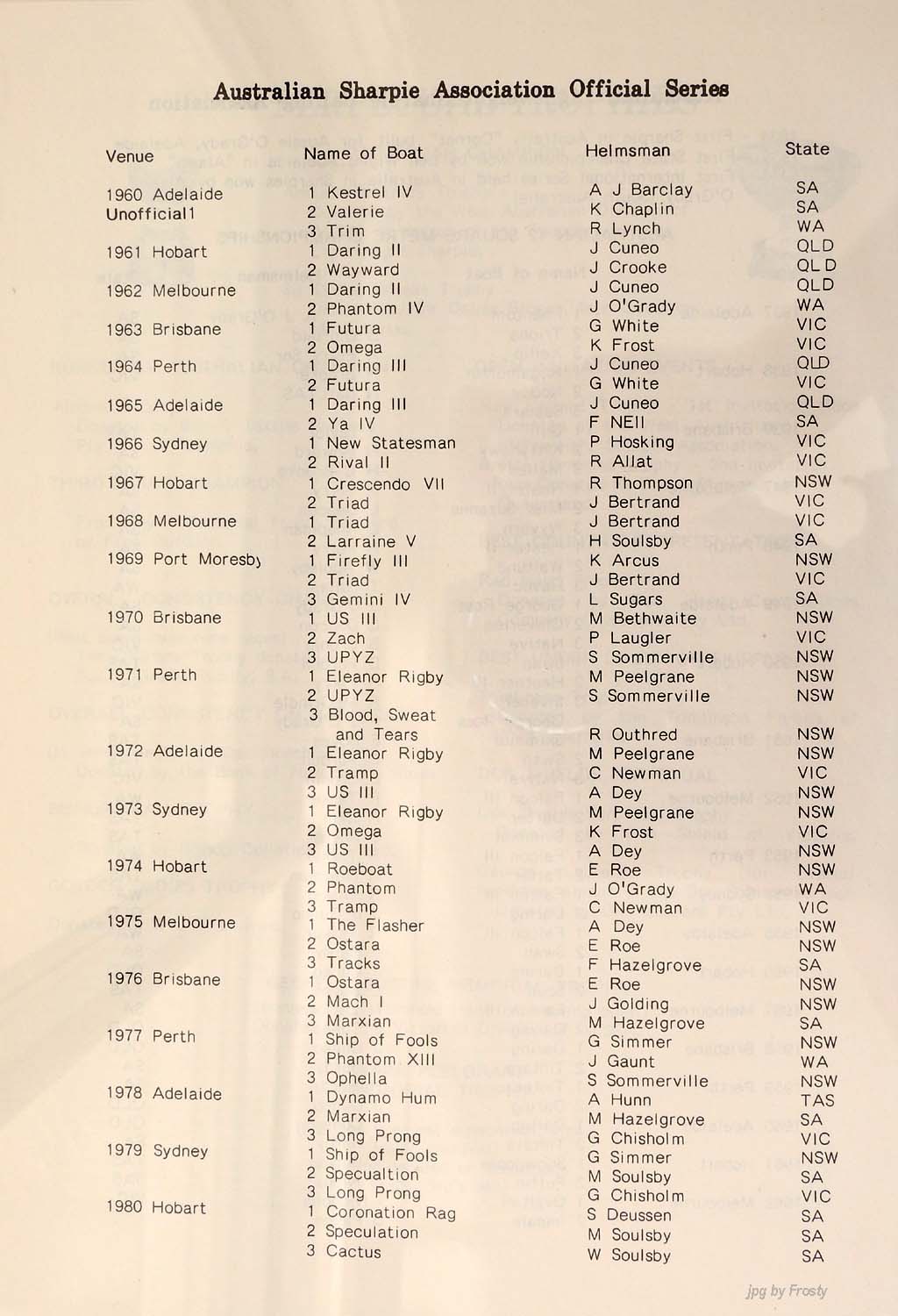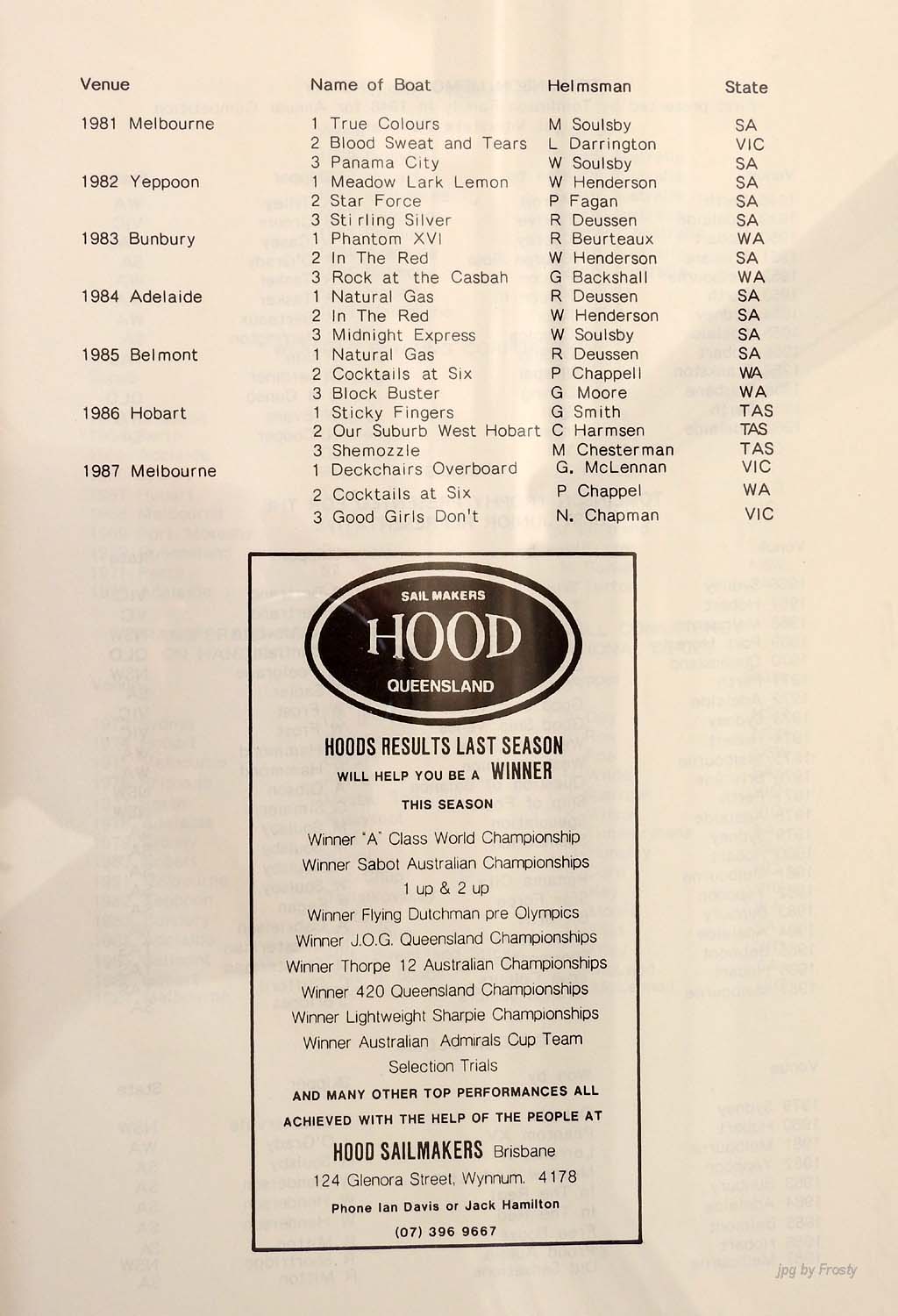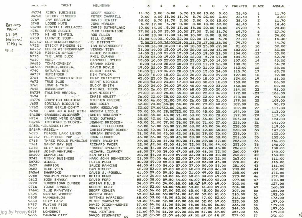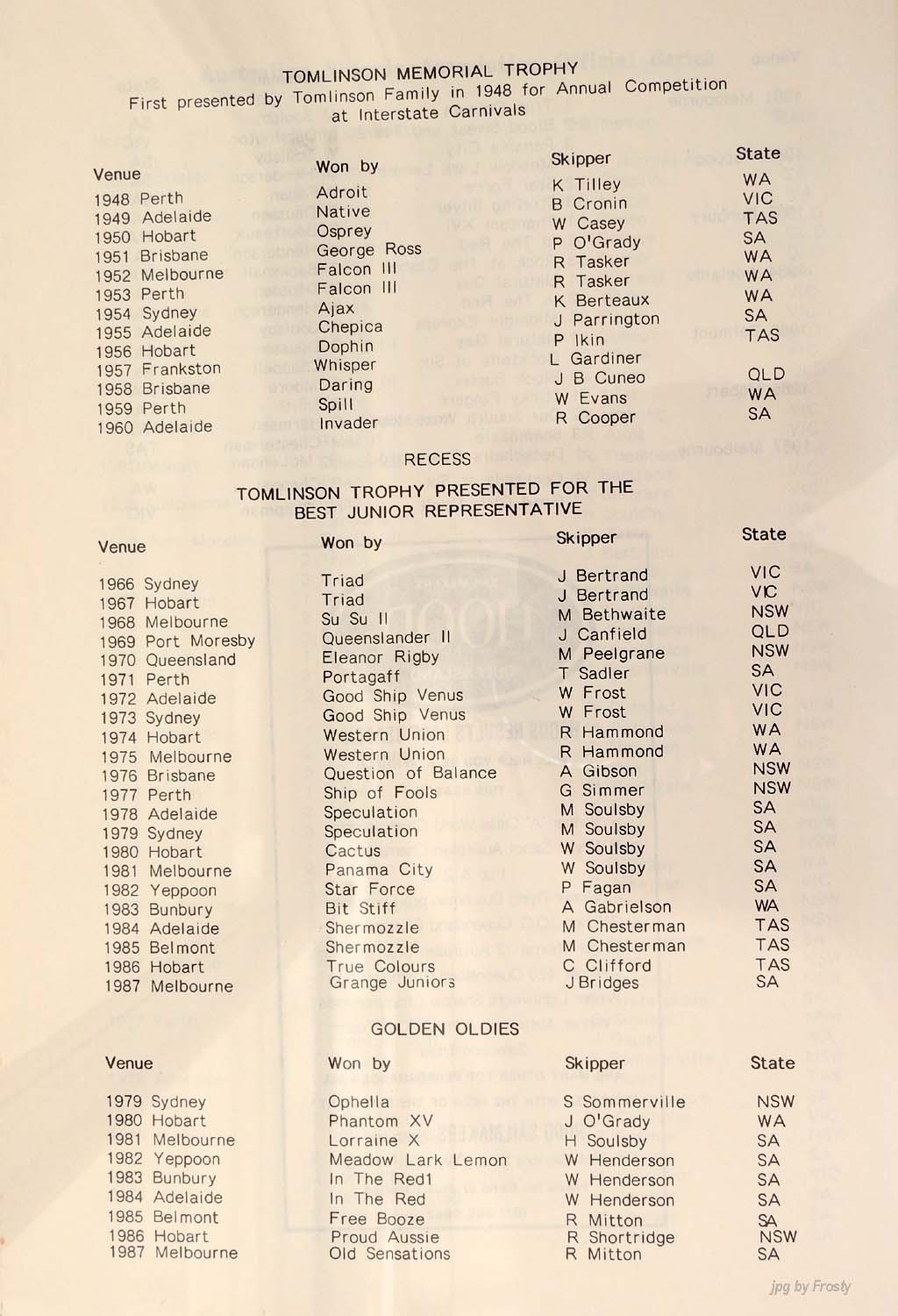 The info was supplied by Ross Wilson (Programme) and Nev Wild (Results).