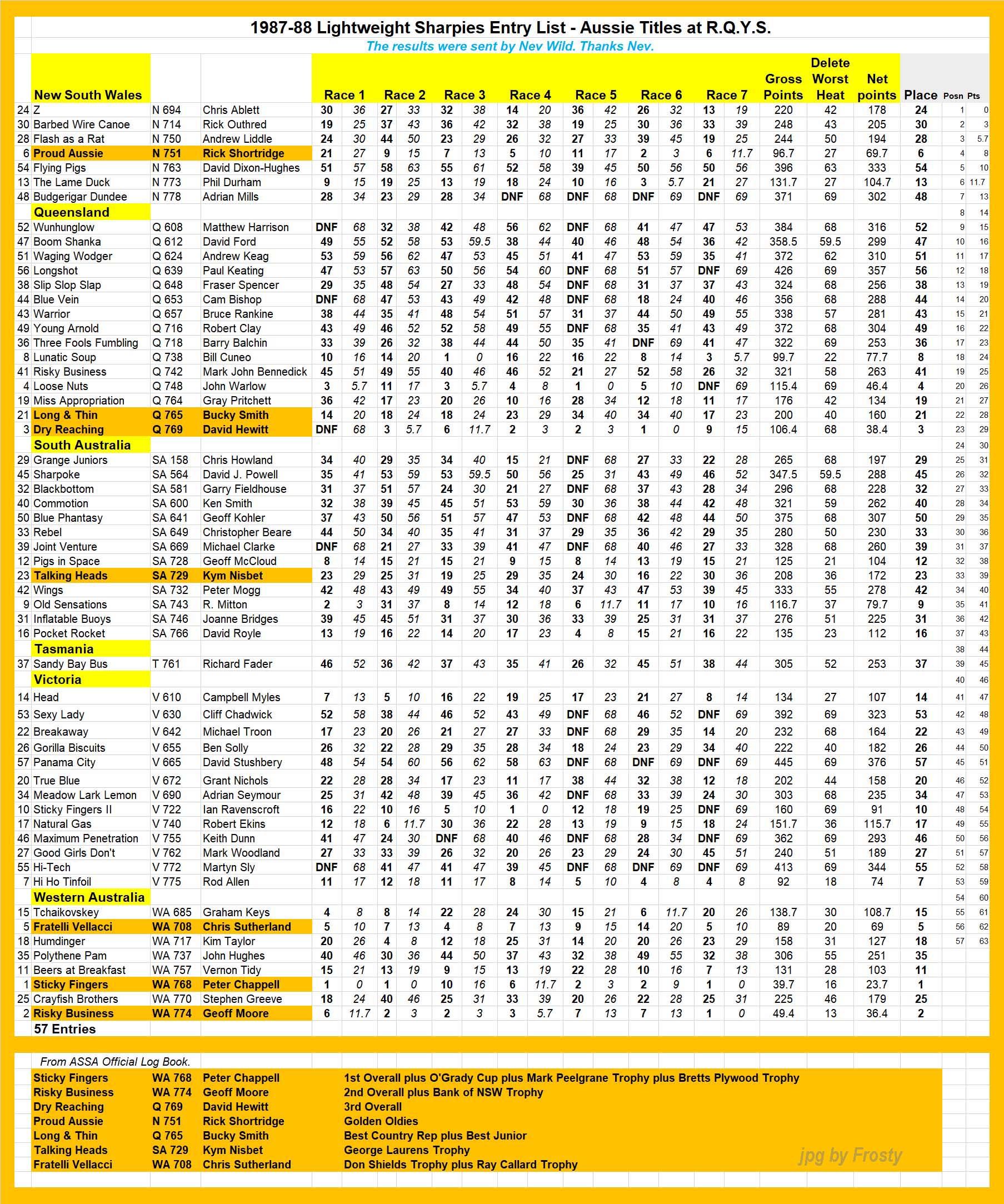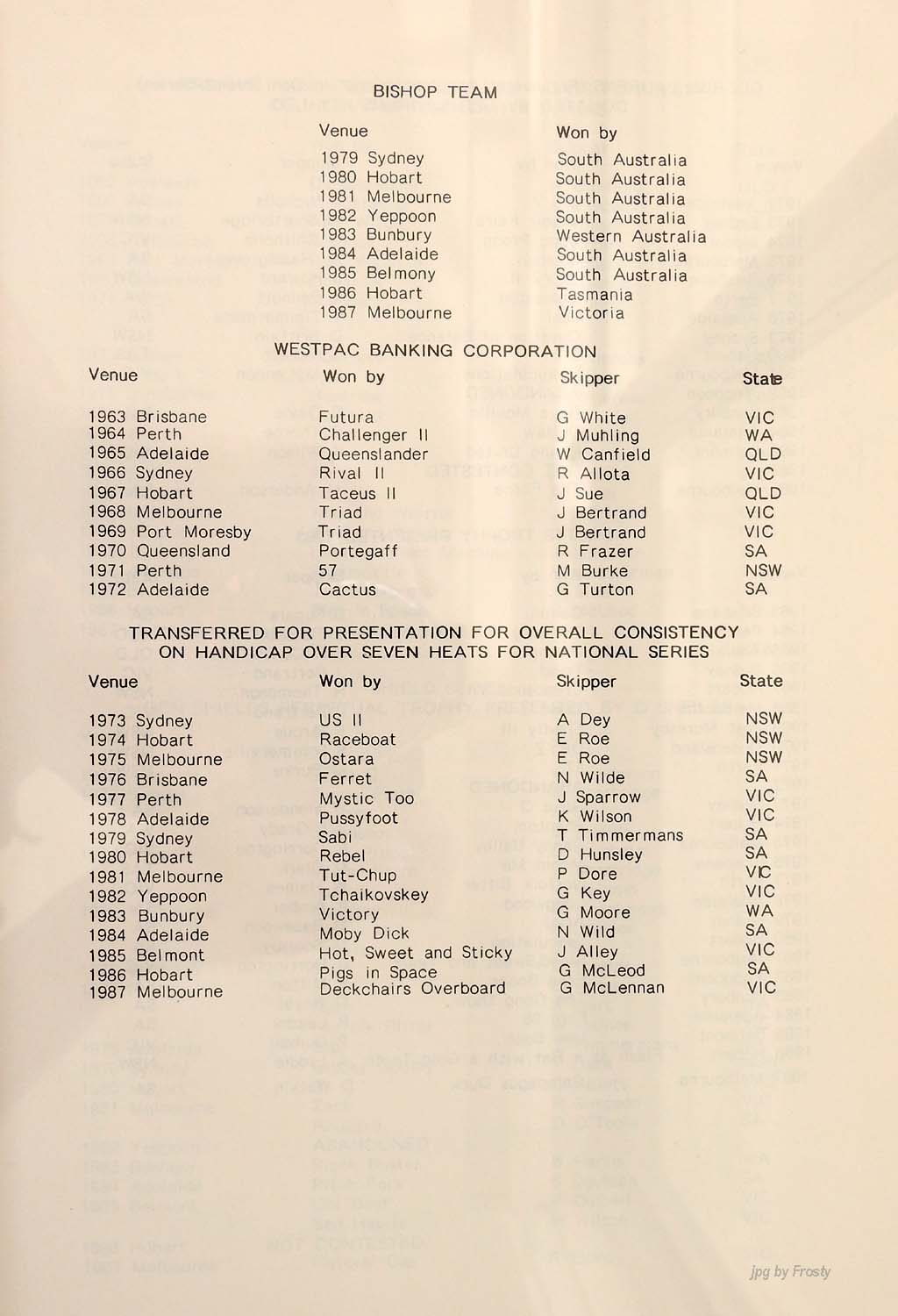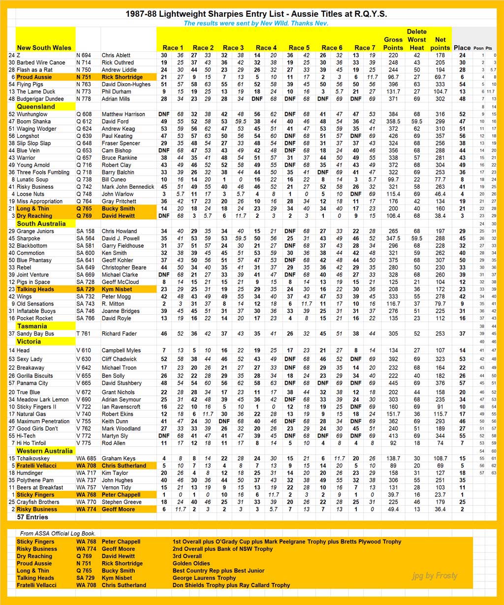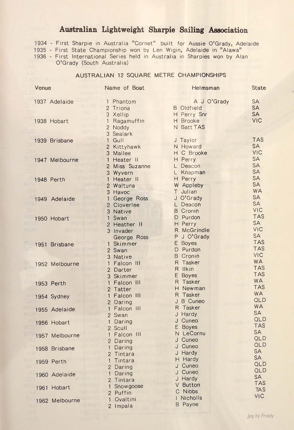 The info was supplied by Ross Wilson (Programme) and Nev Wild (Results).