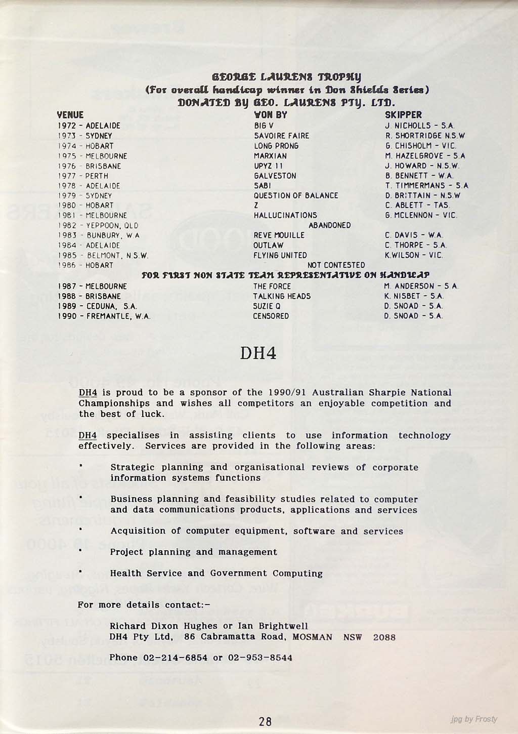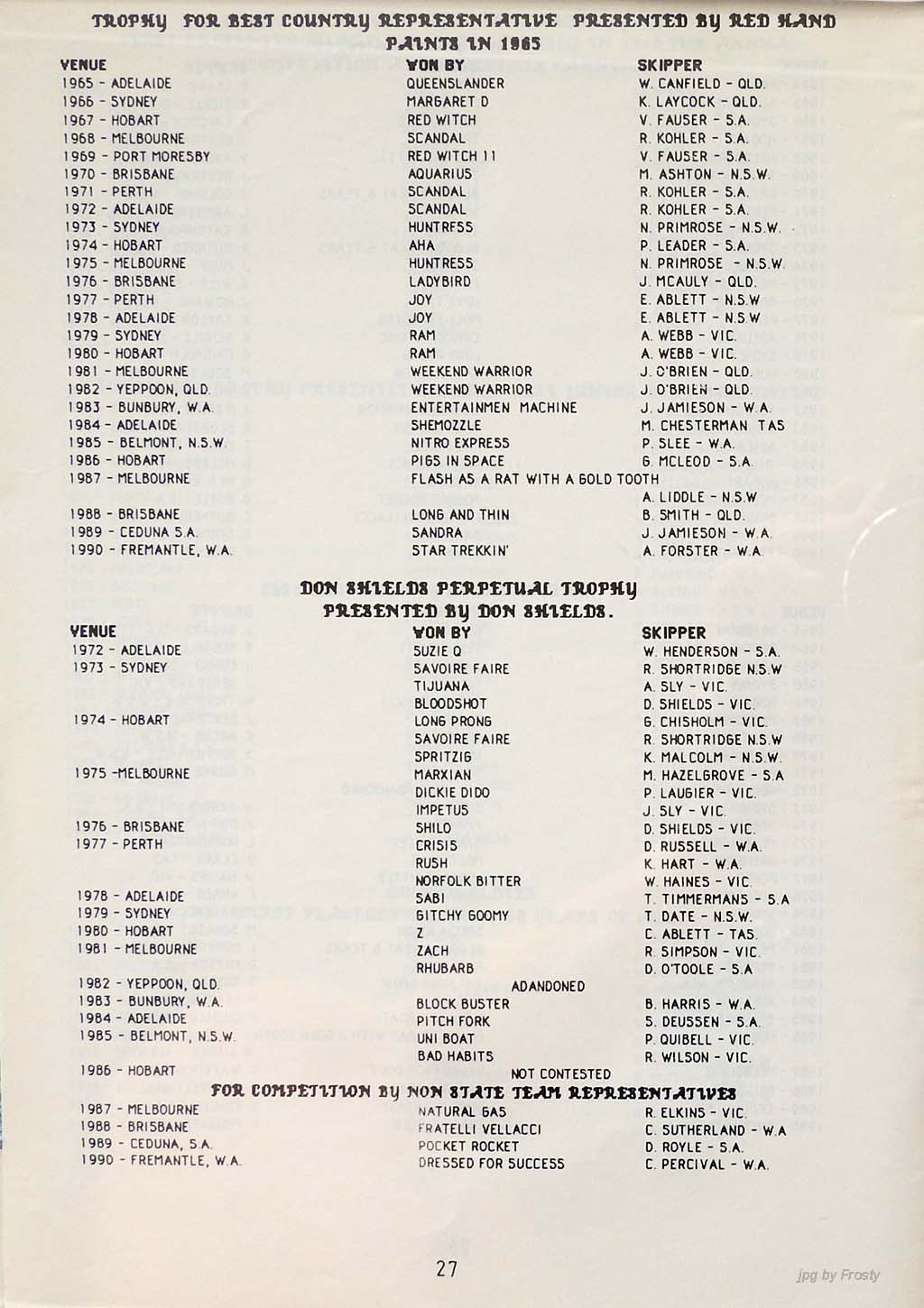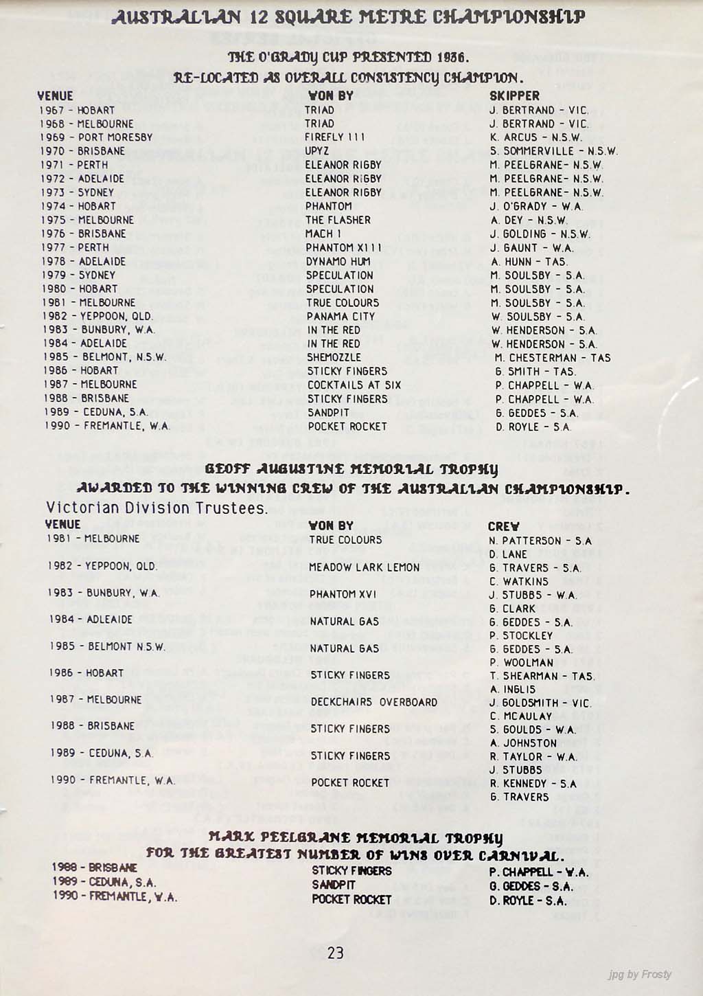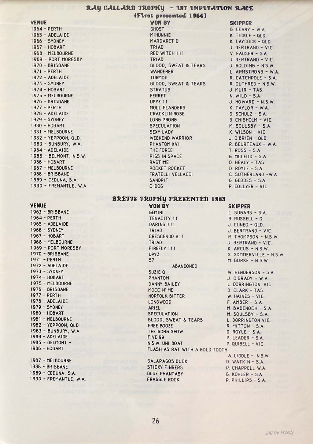 The info was supplied by Ross Wilson (Programme) and Nev Wild (Results).
