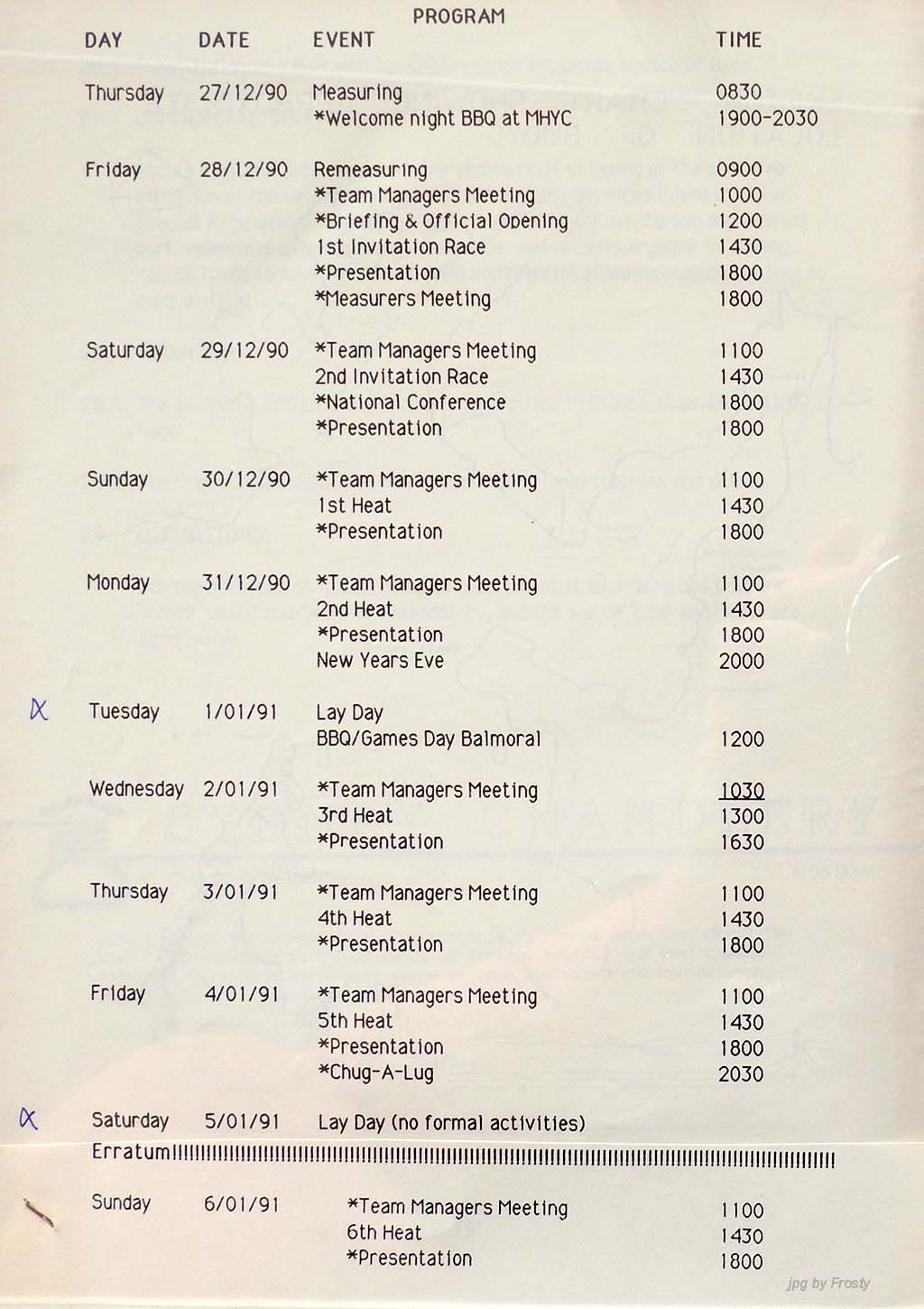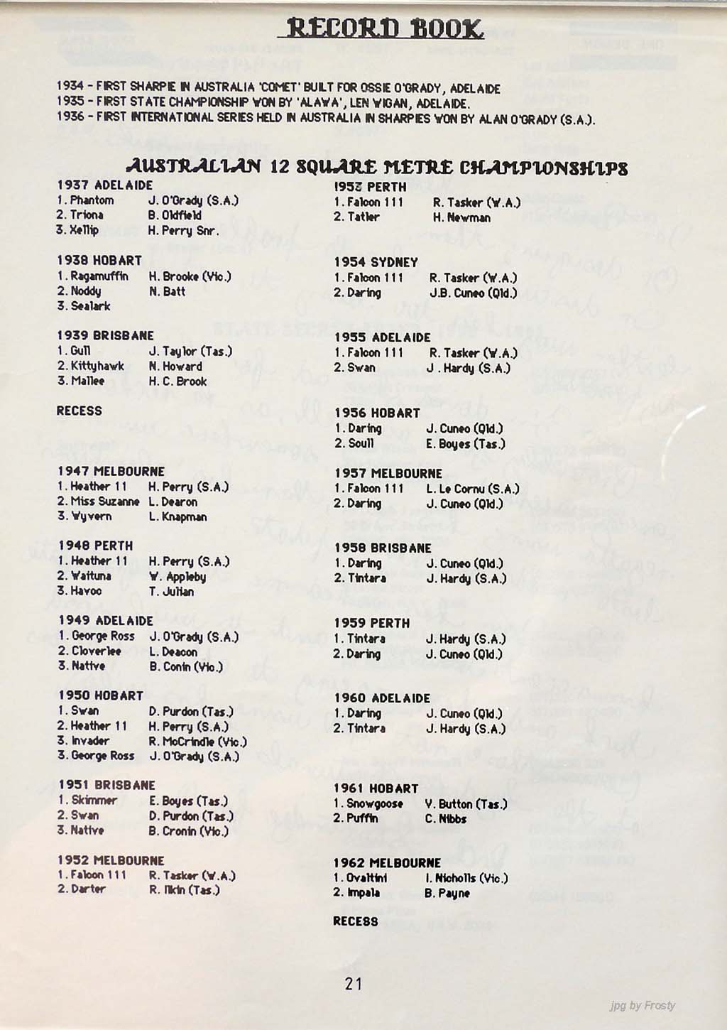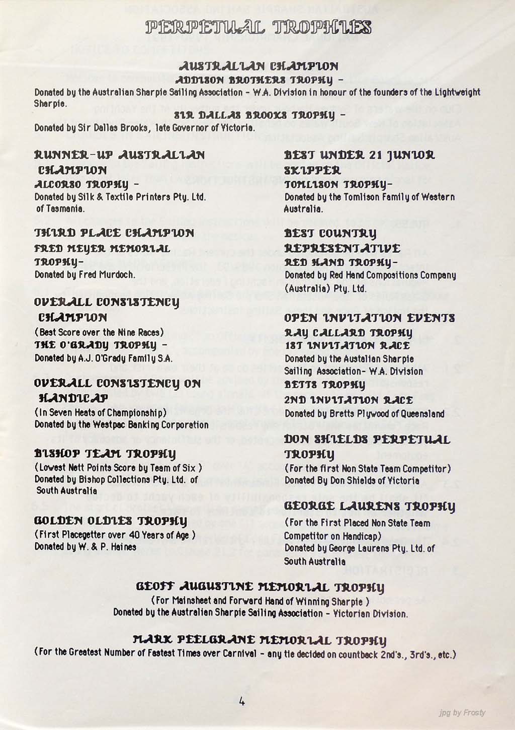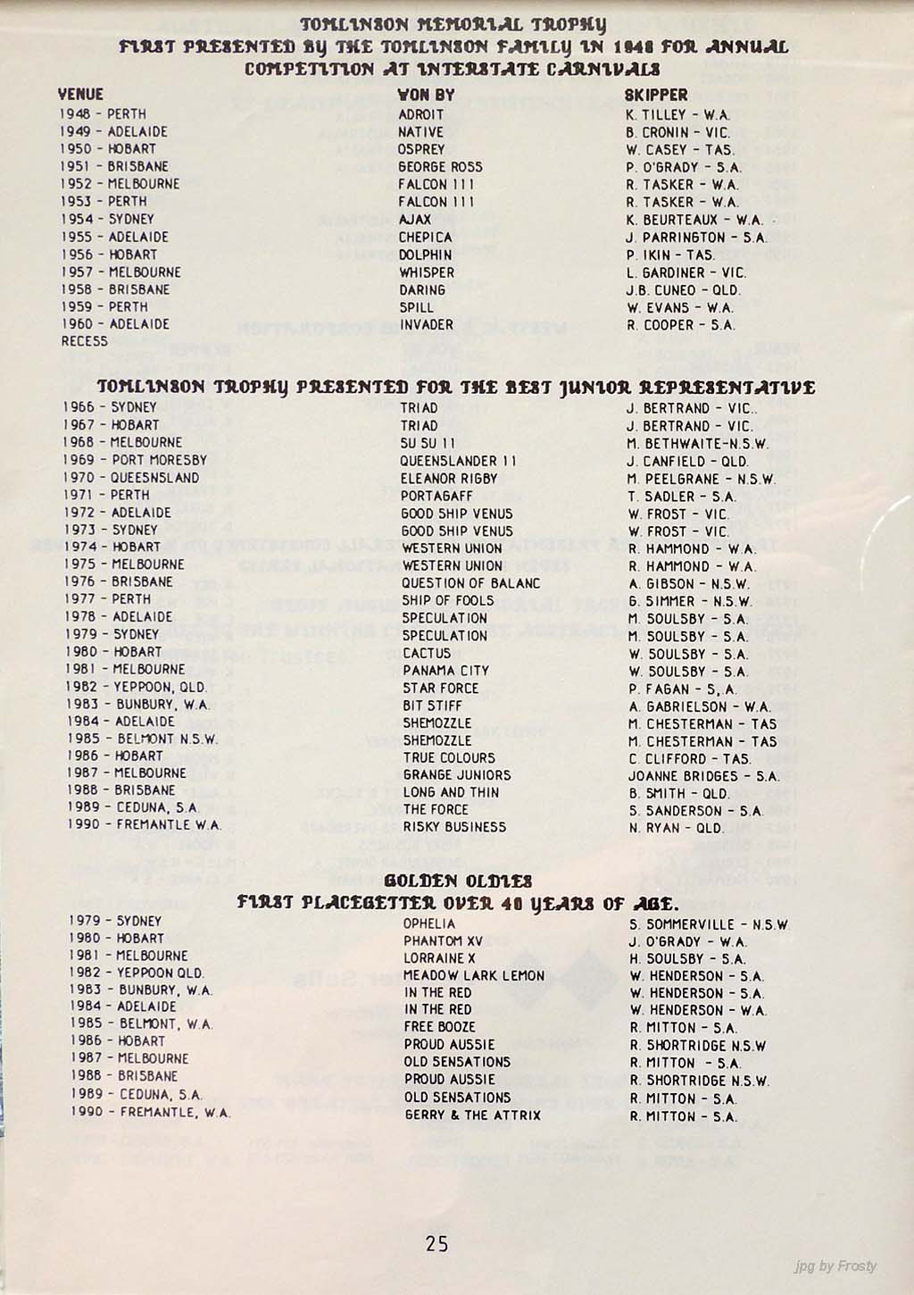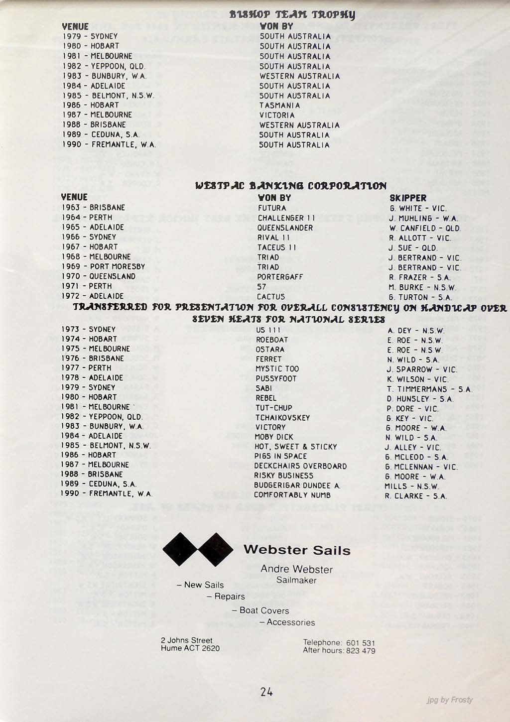 The info was supplied by Ross Wilson (Programme) and Nev Wild (Results).