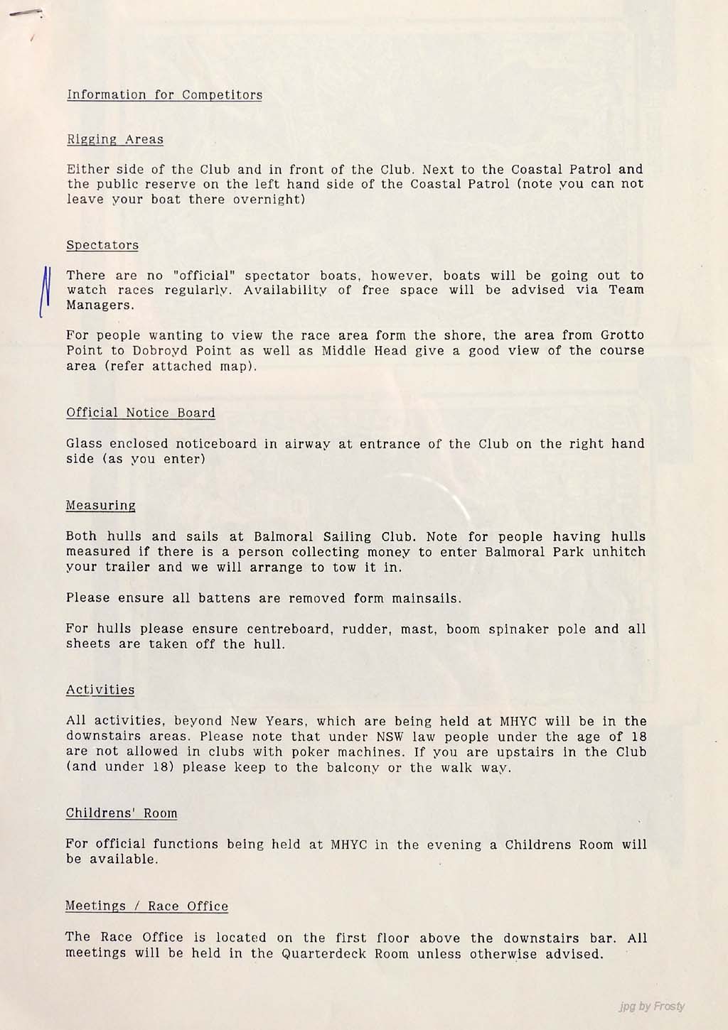 Info for competitors.