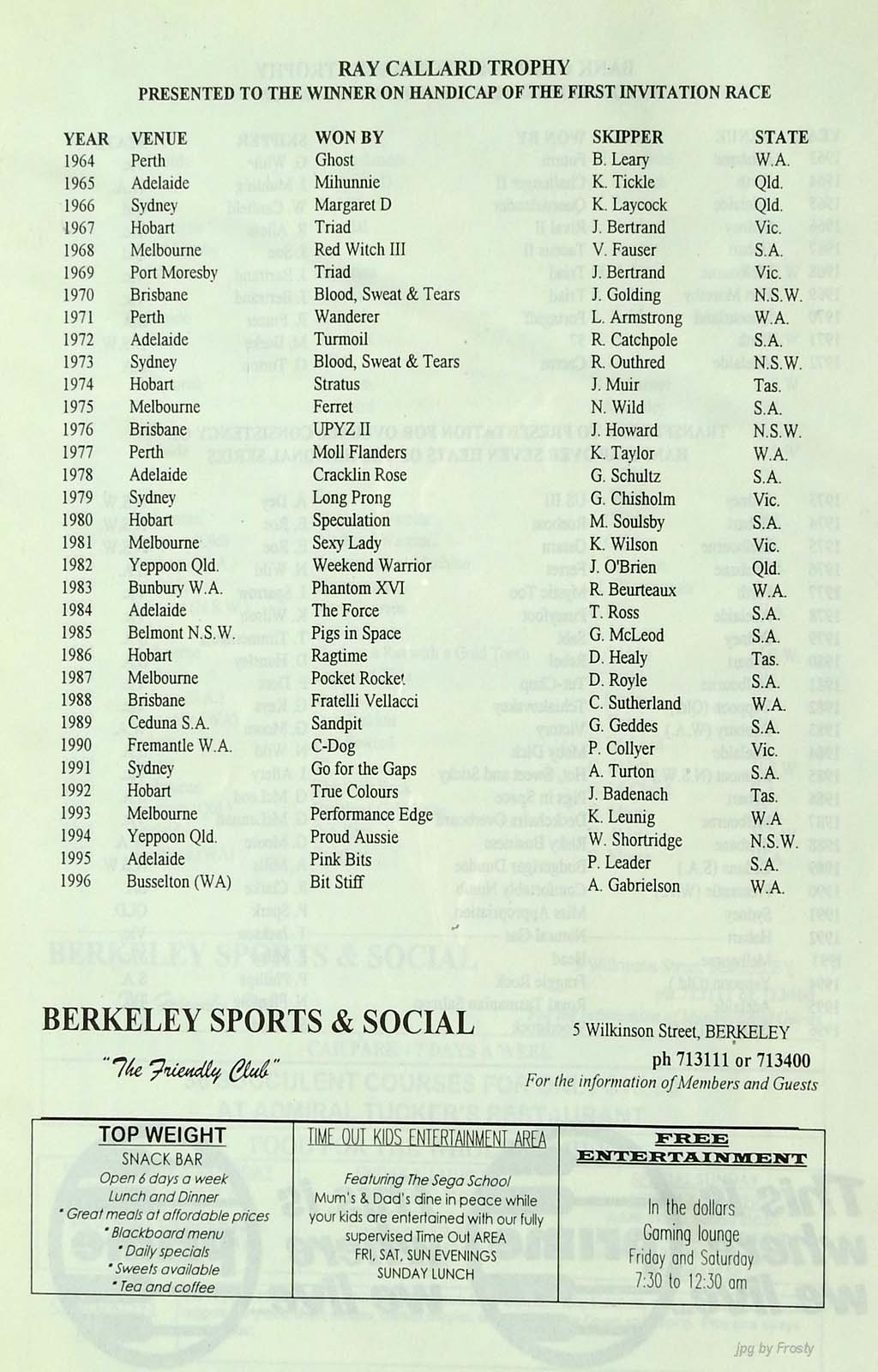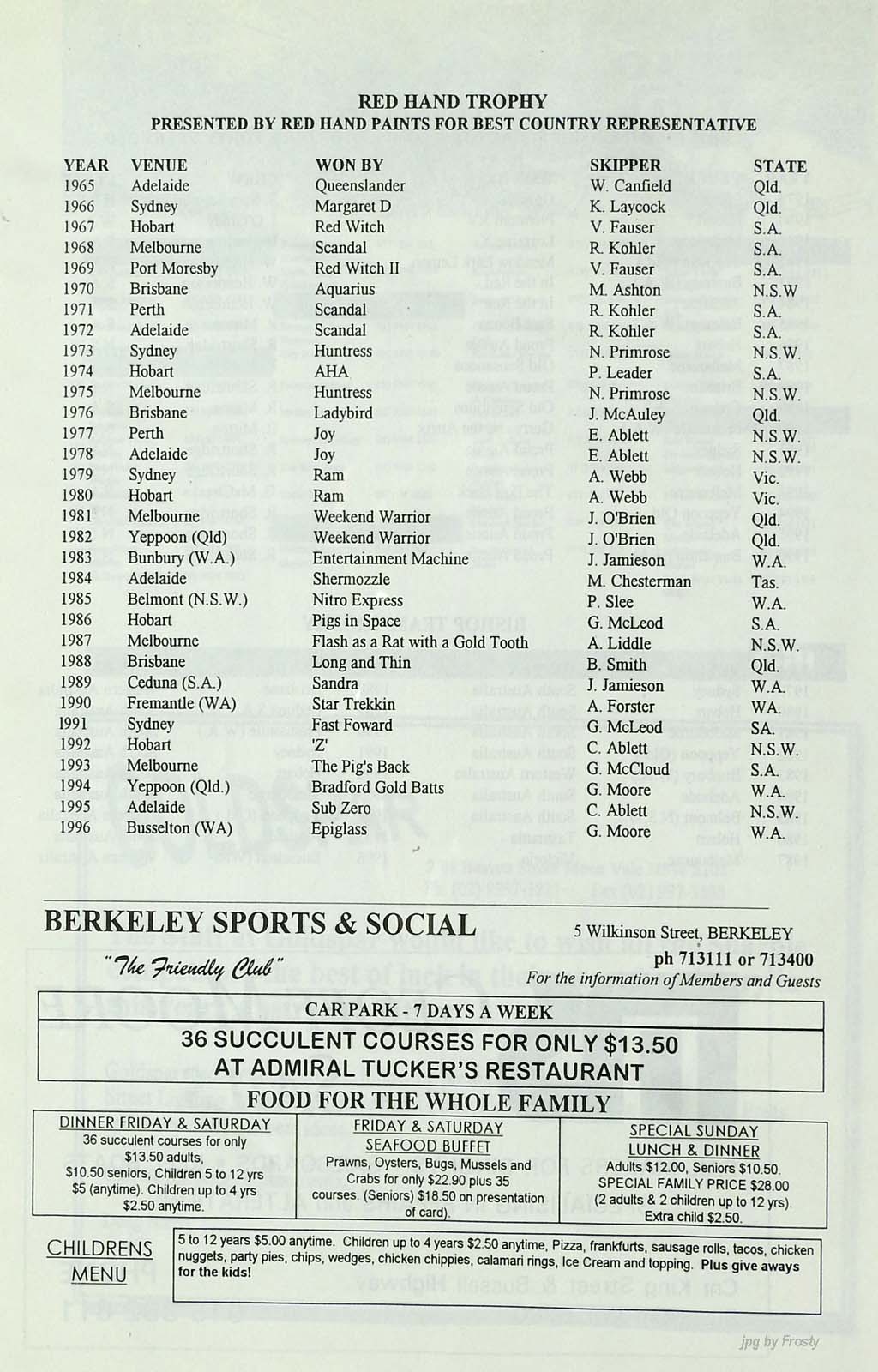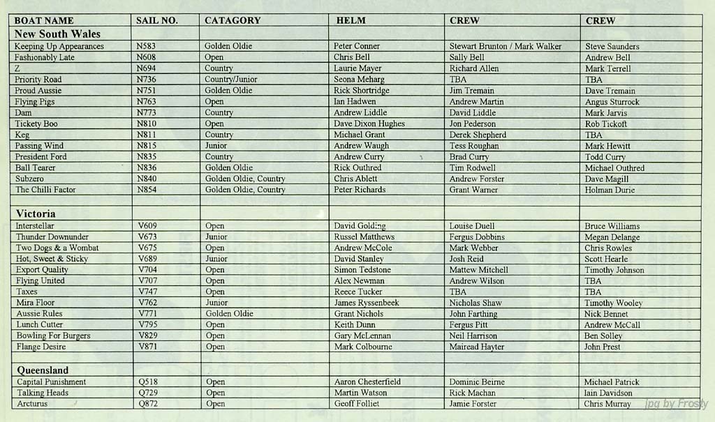 Host Club: Port Kembla Sailing Club.