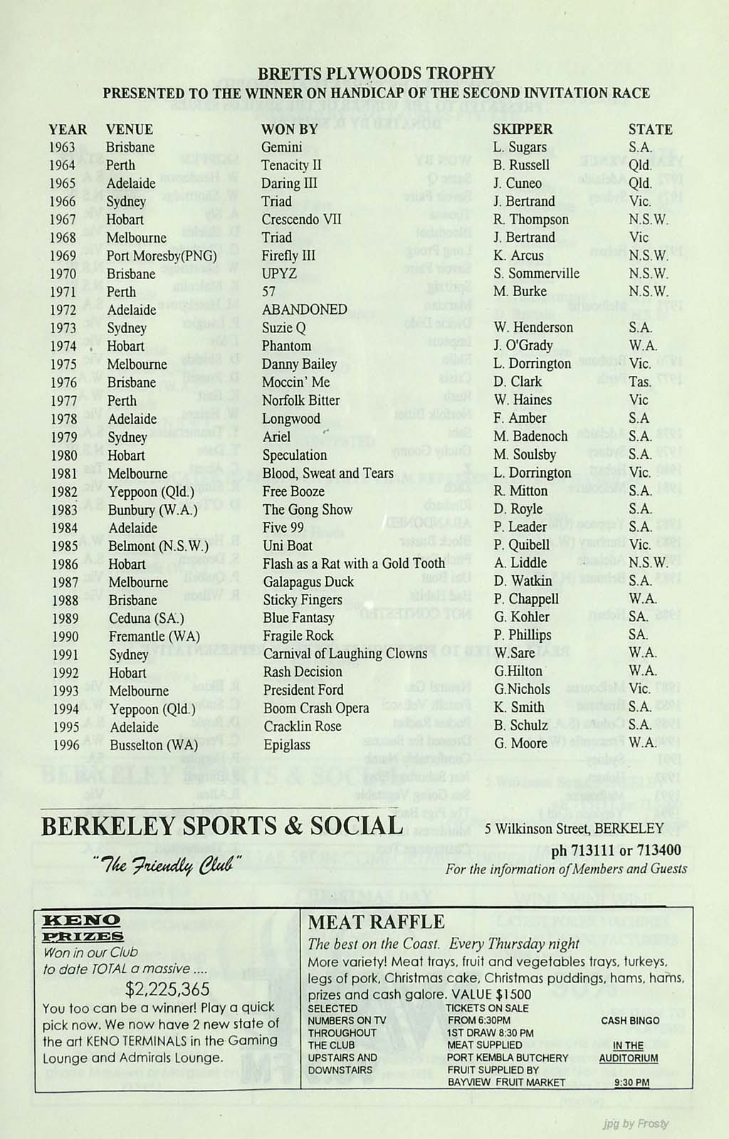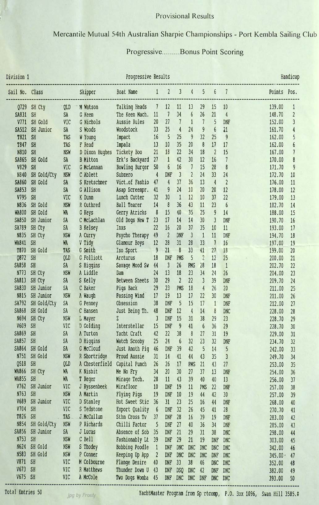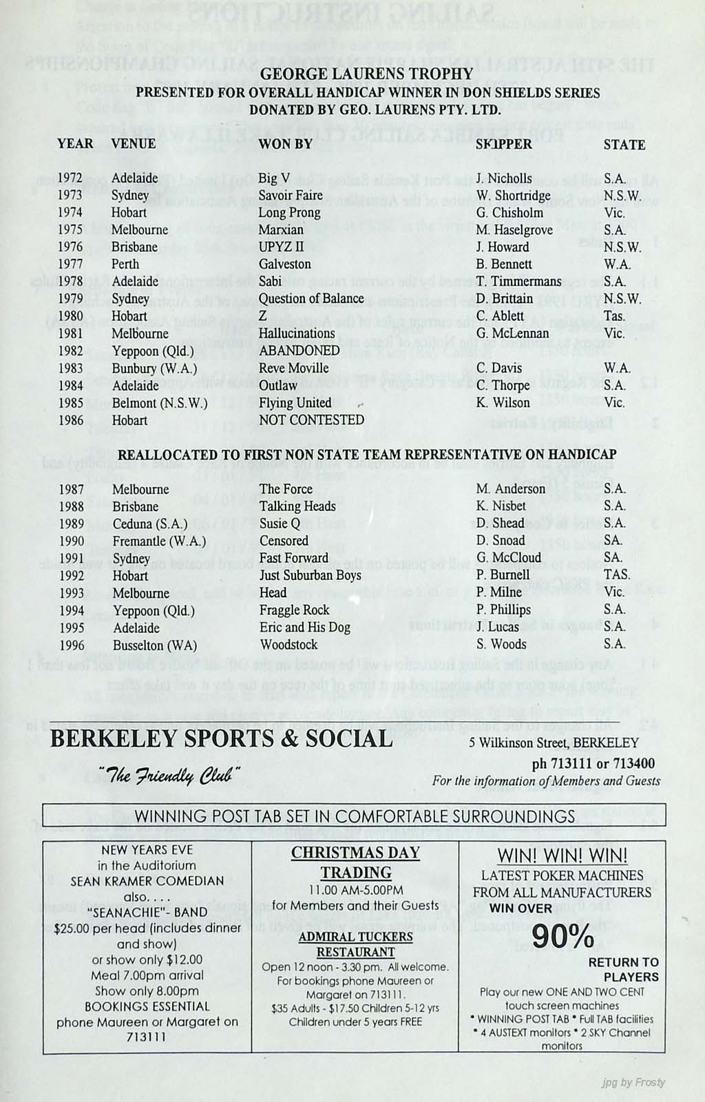 Host Club: Port Kembla Sailing Club.