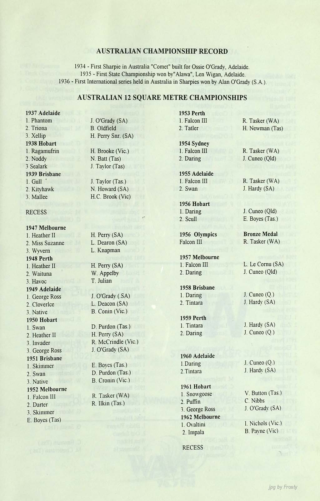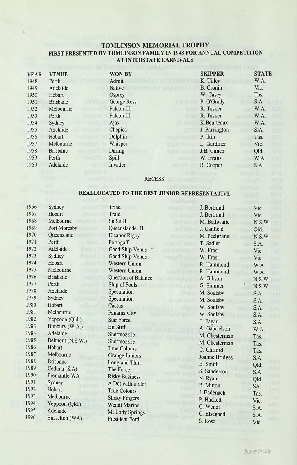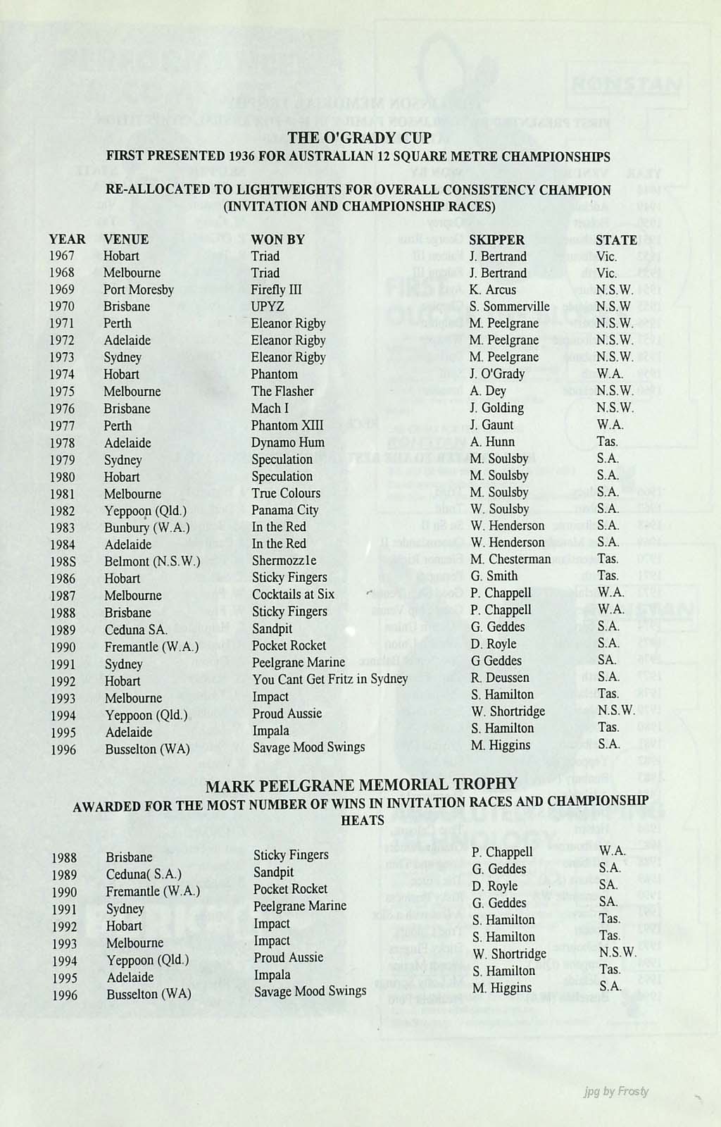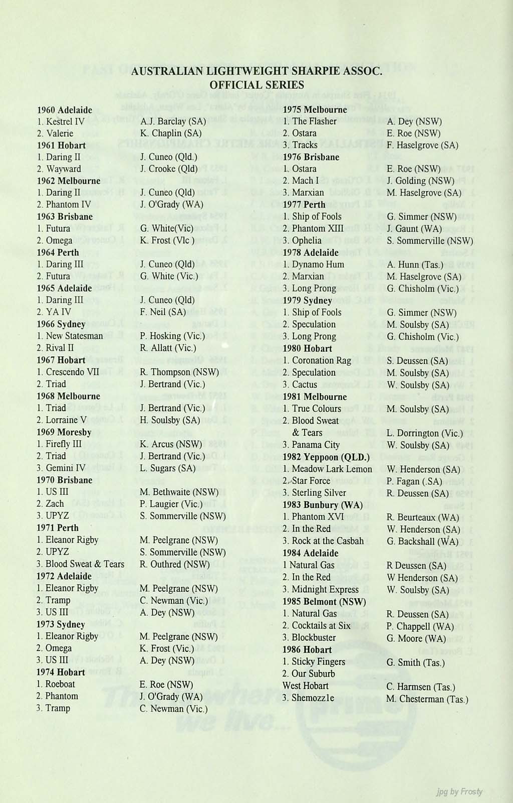 The info was supplied by Graham Keys and Ross Wilson. Thanks guys.
