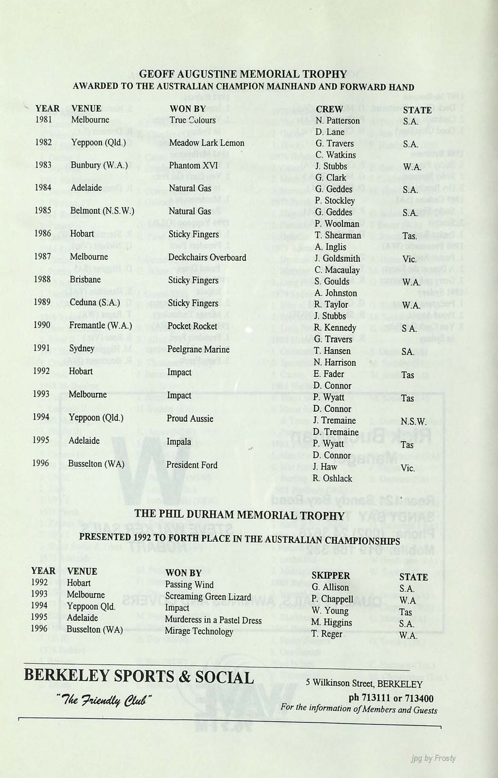 1996/97 Port Kembla, Lake Illawarra, NSW.