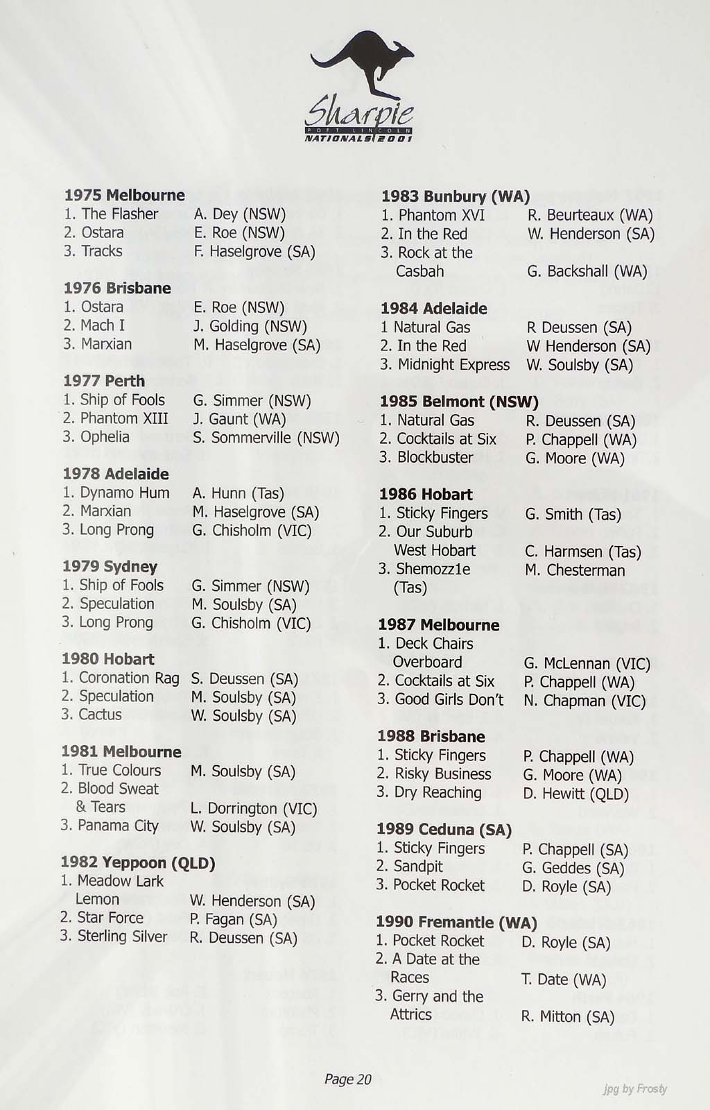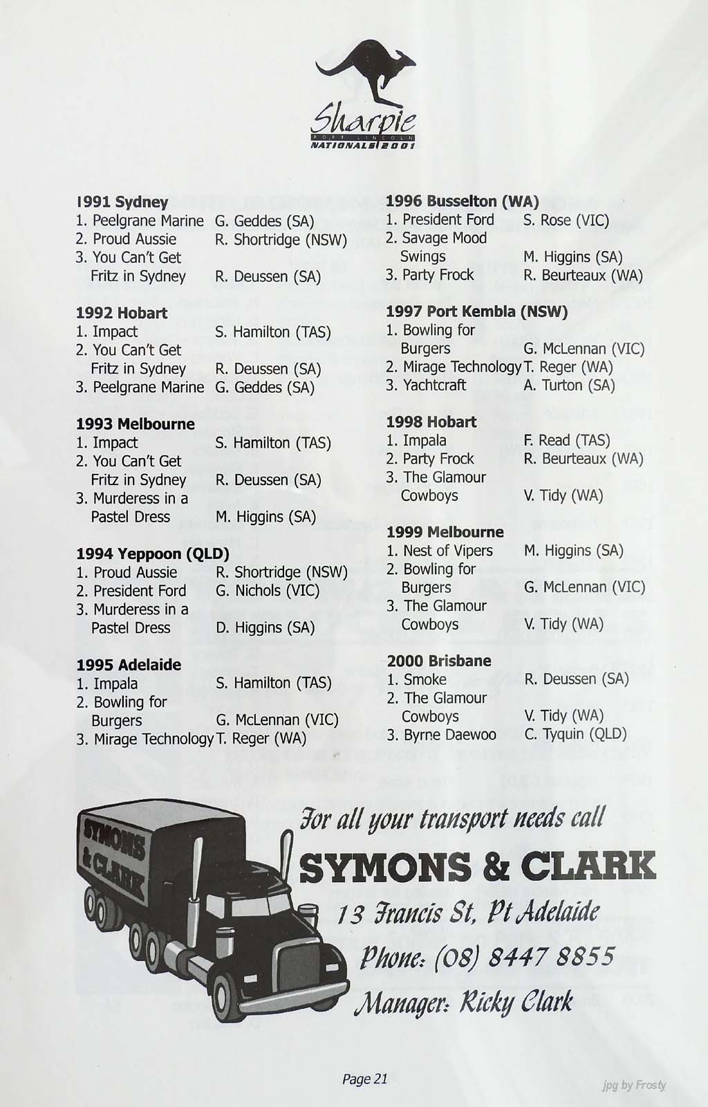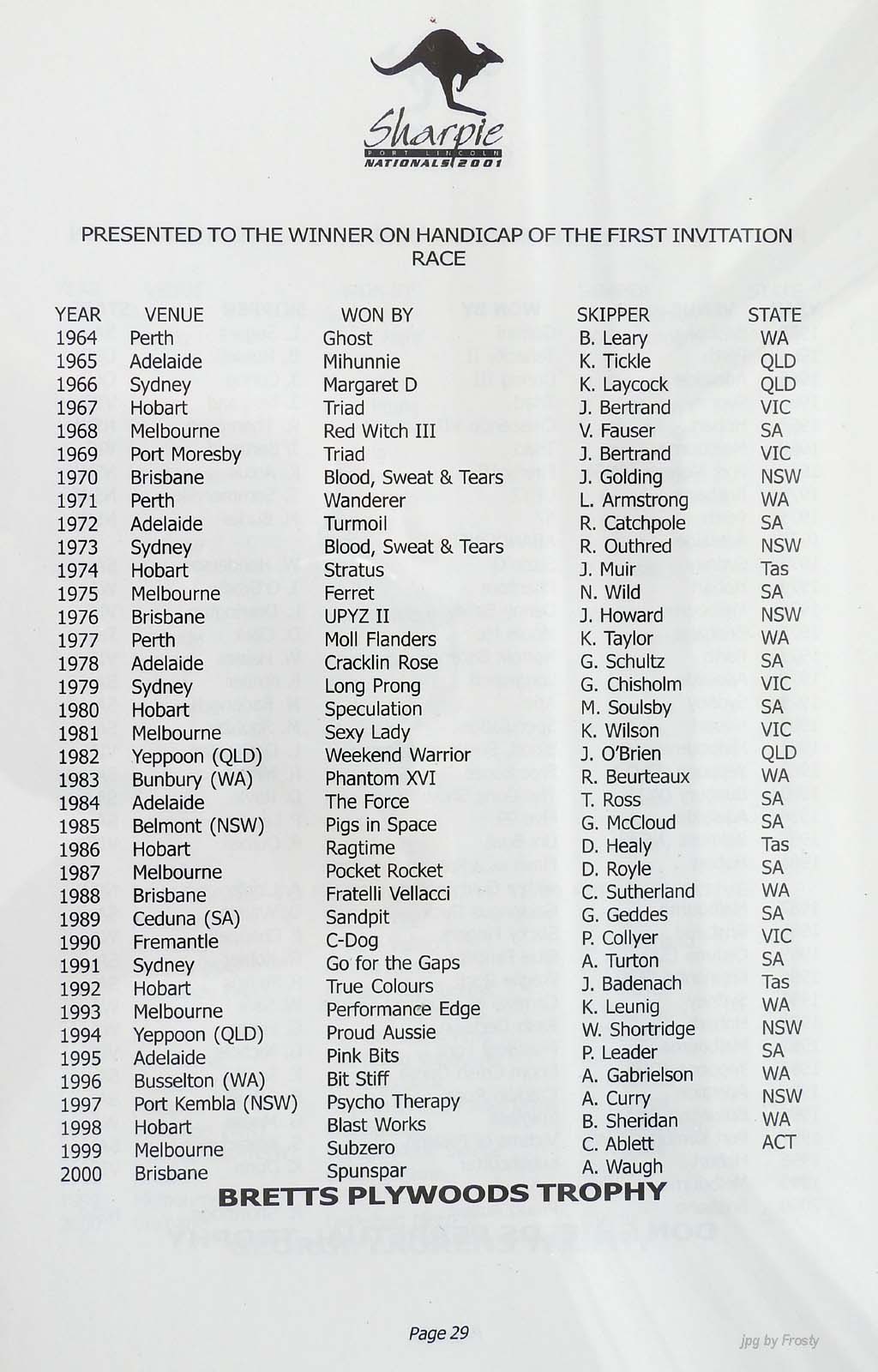 The info was supplied by Graham Keys and Ross Wilson. Thanks guys.