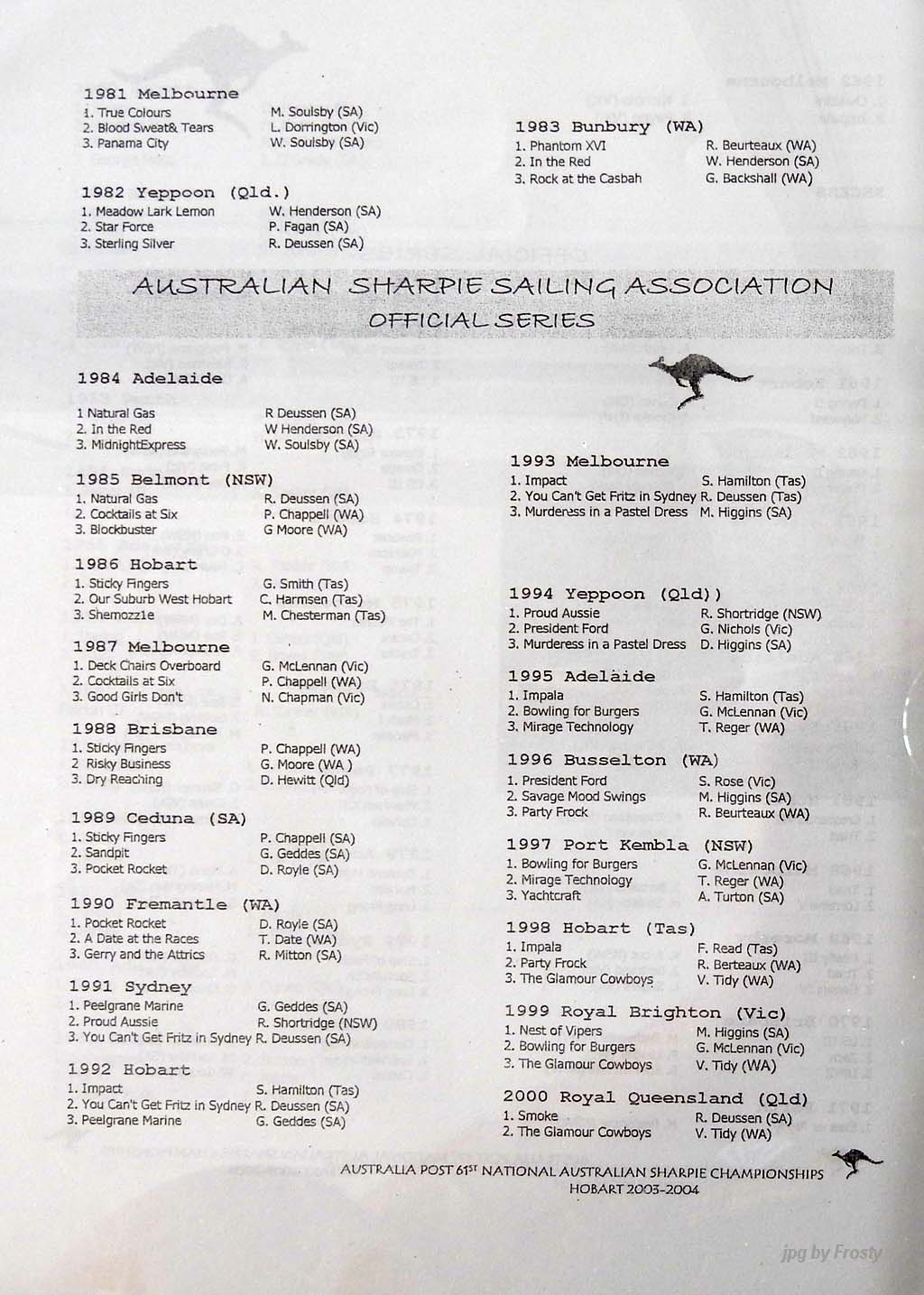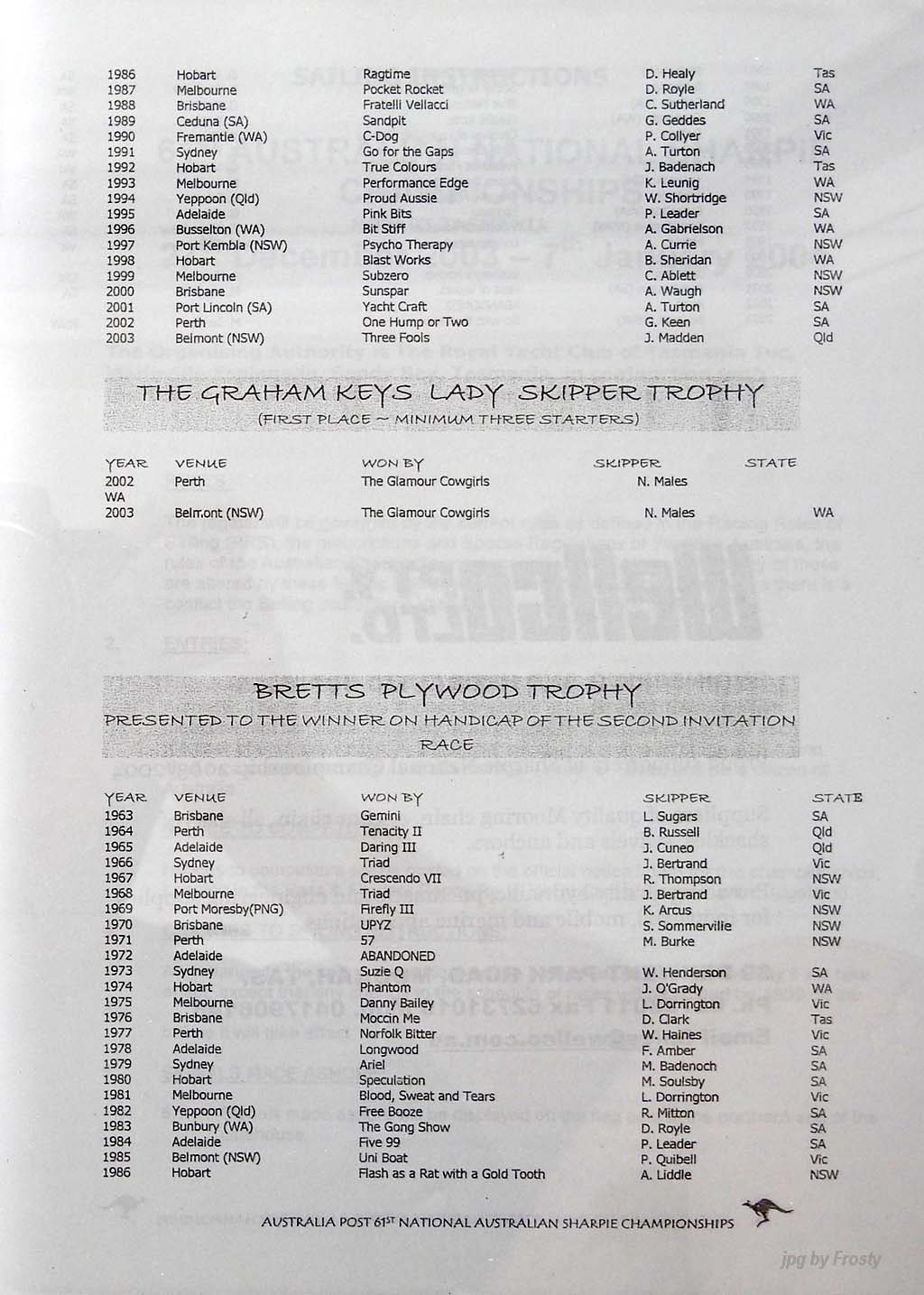 The Programme was supplied by Chris Ablett and Ross Wilson. Thanks guys.