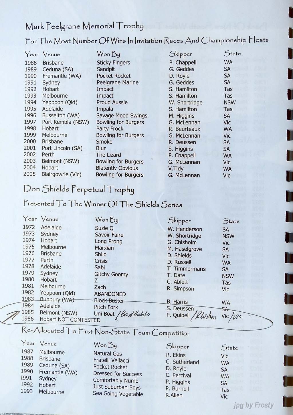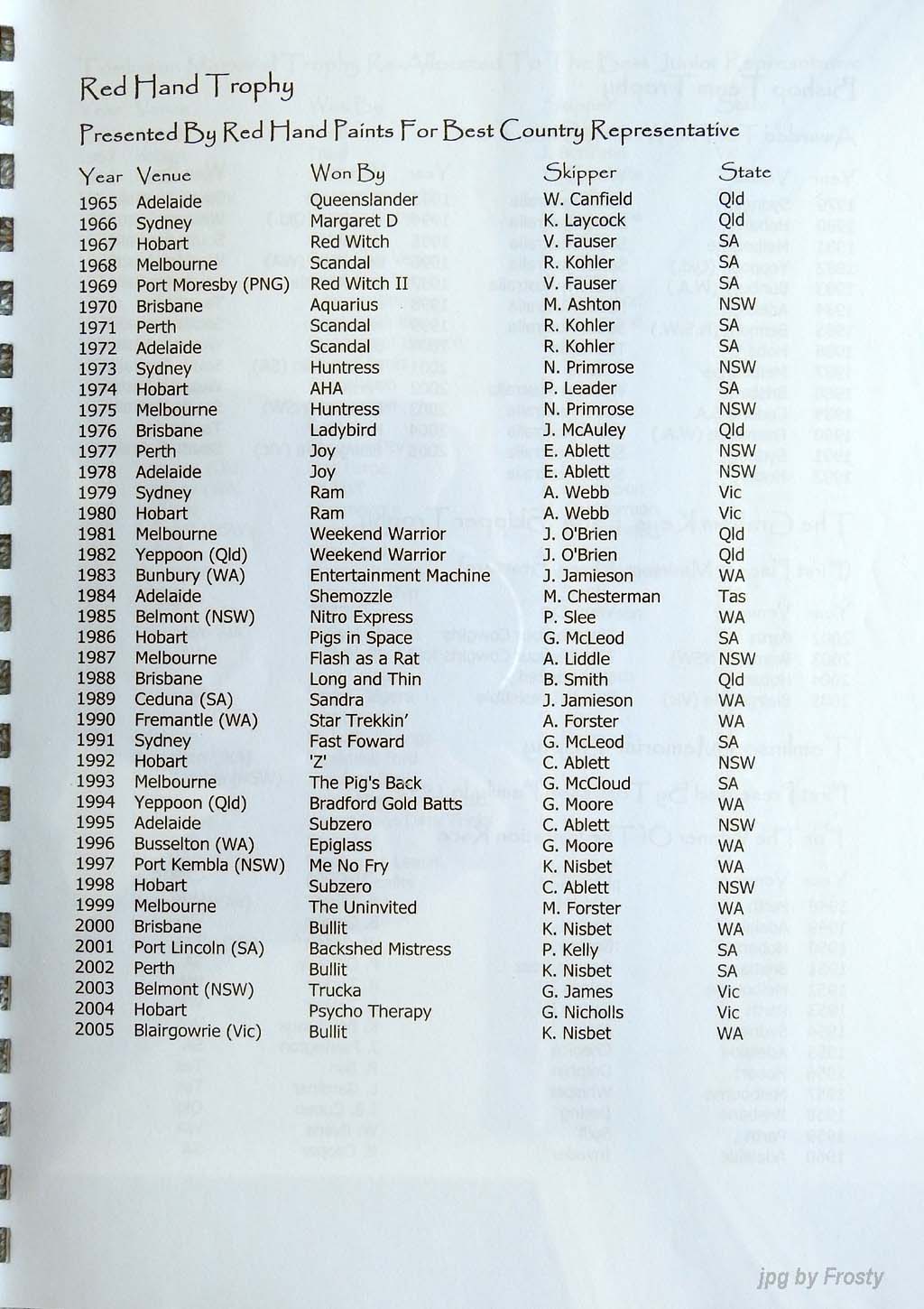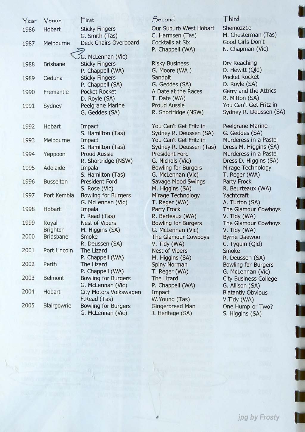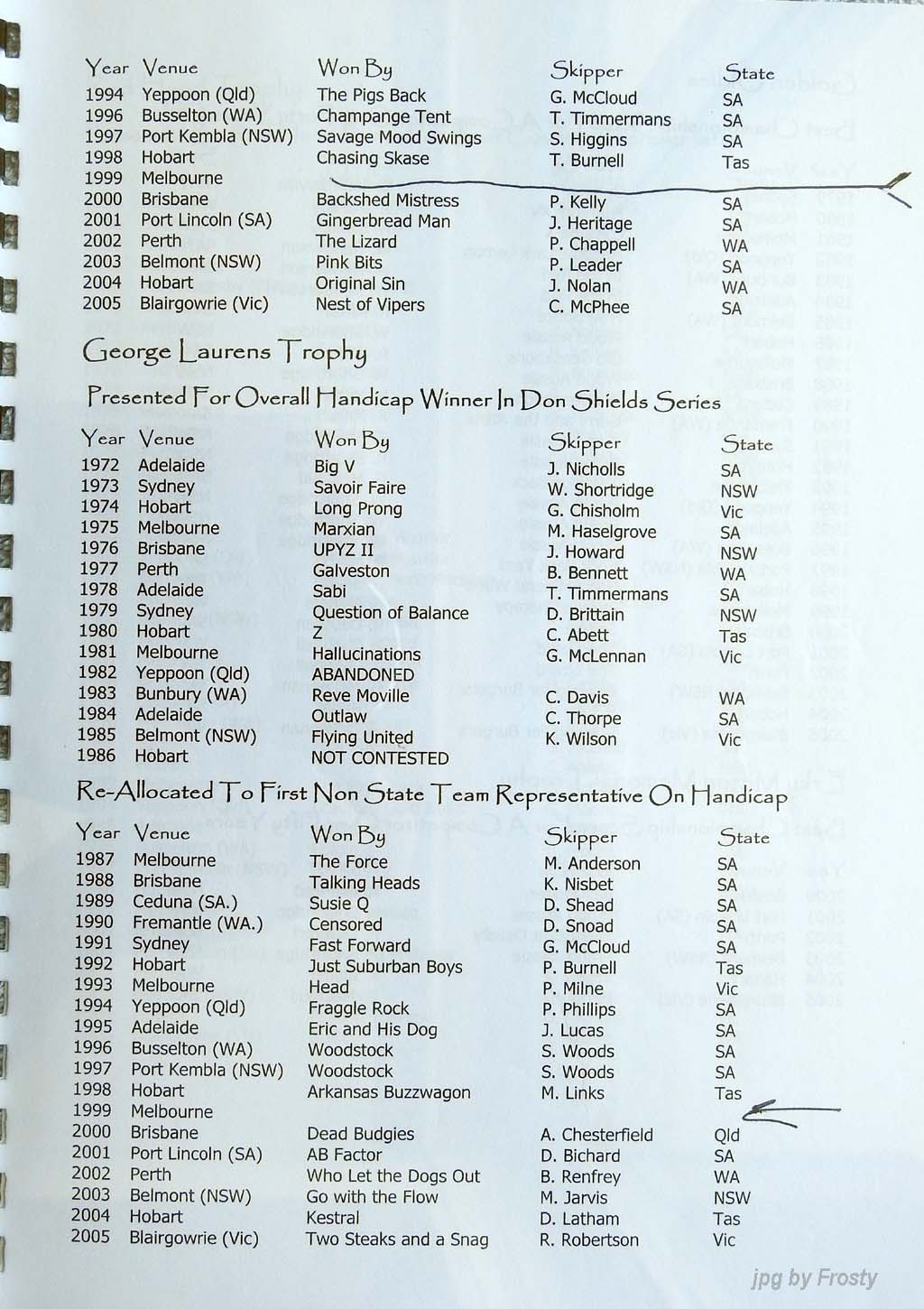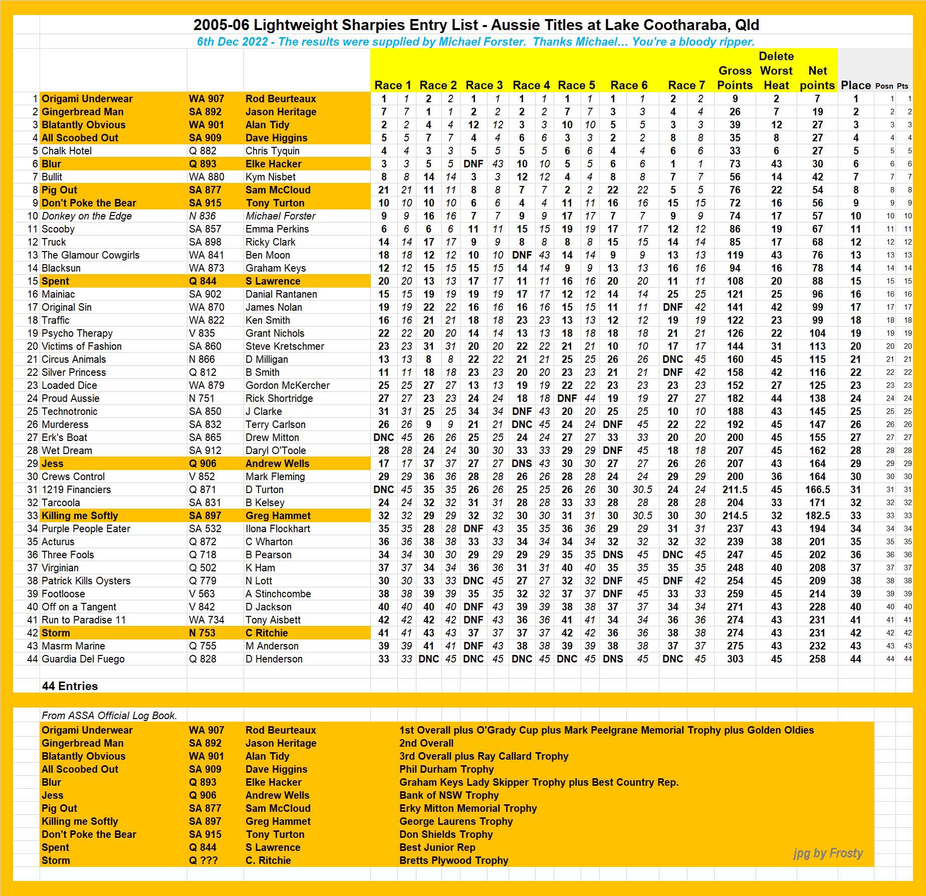 Results supplied by Michael Forster.