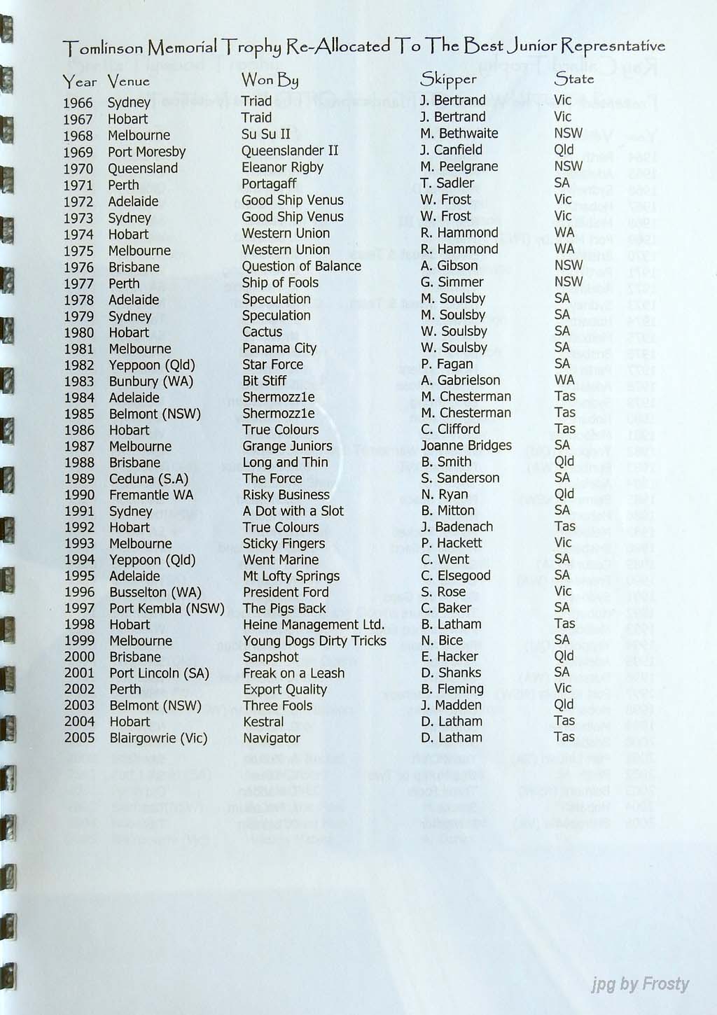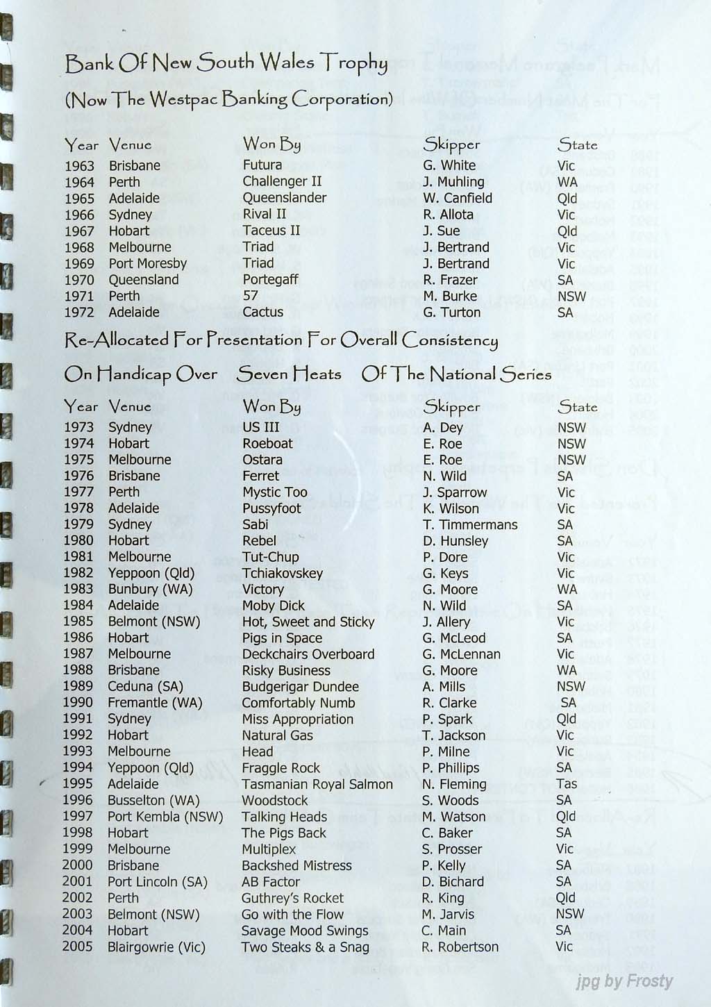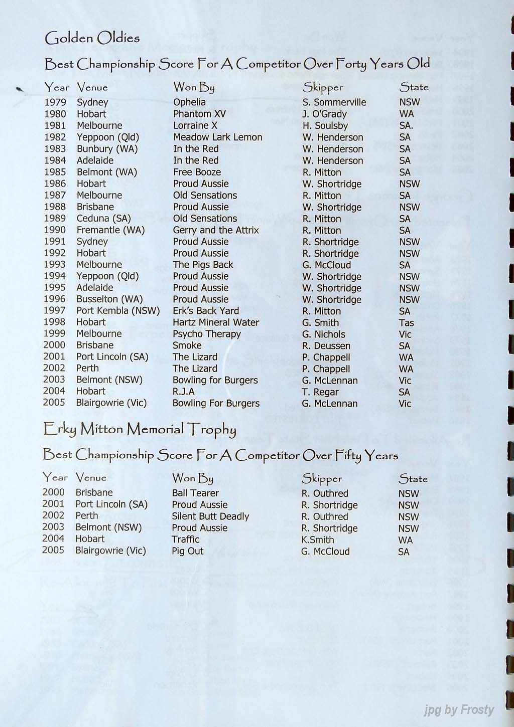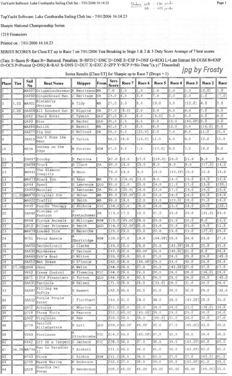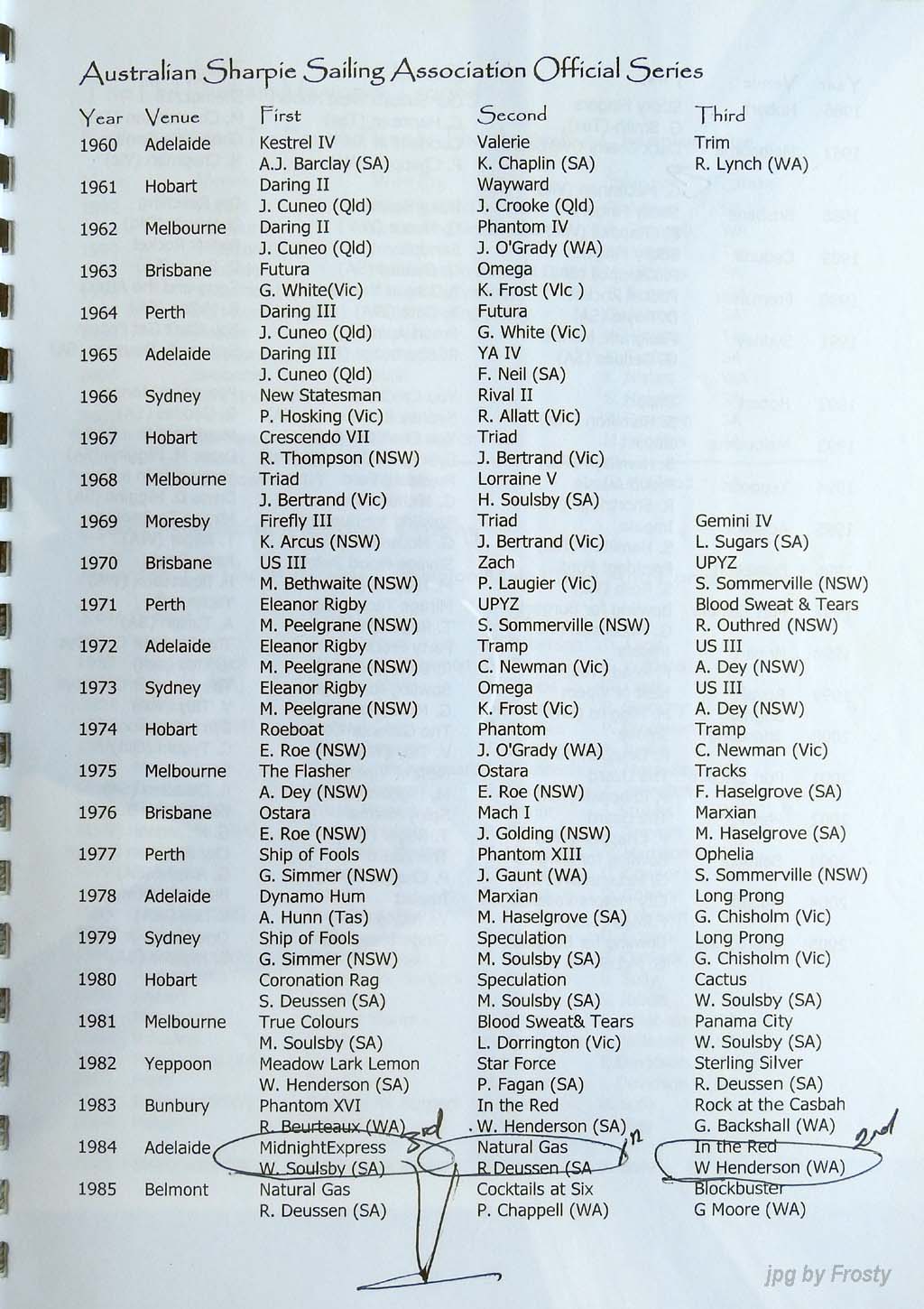 Results supplied by Michael Forster.
