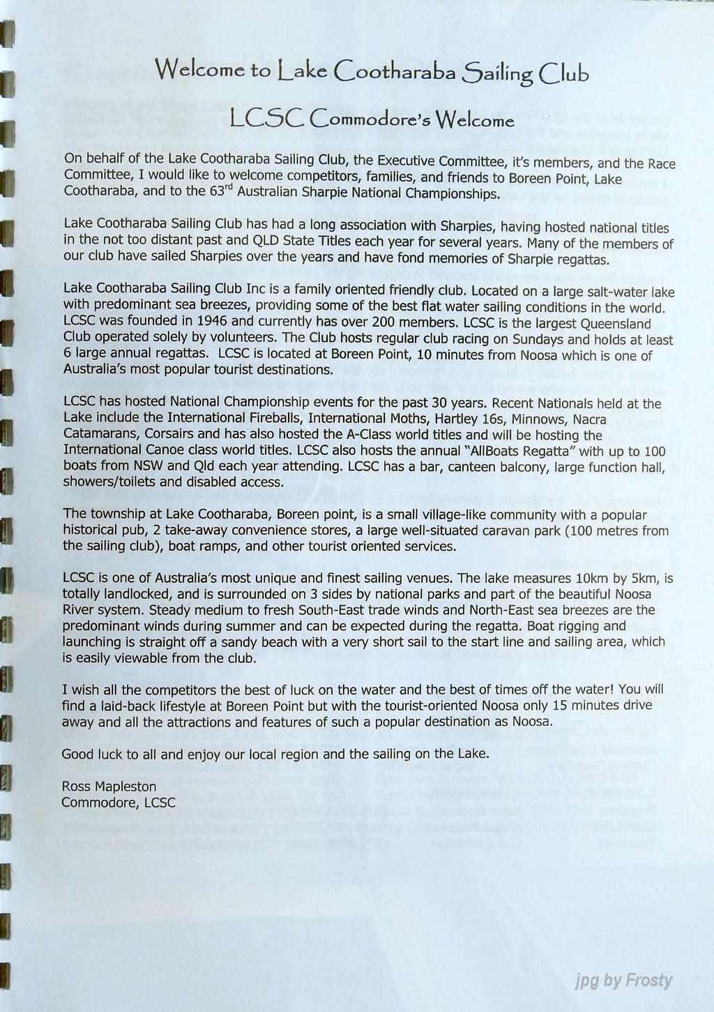 Host Club: Lake Cootharaba Sailing Club.