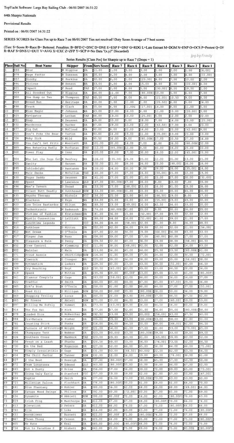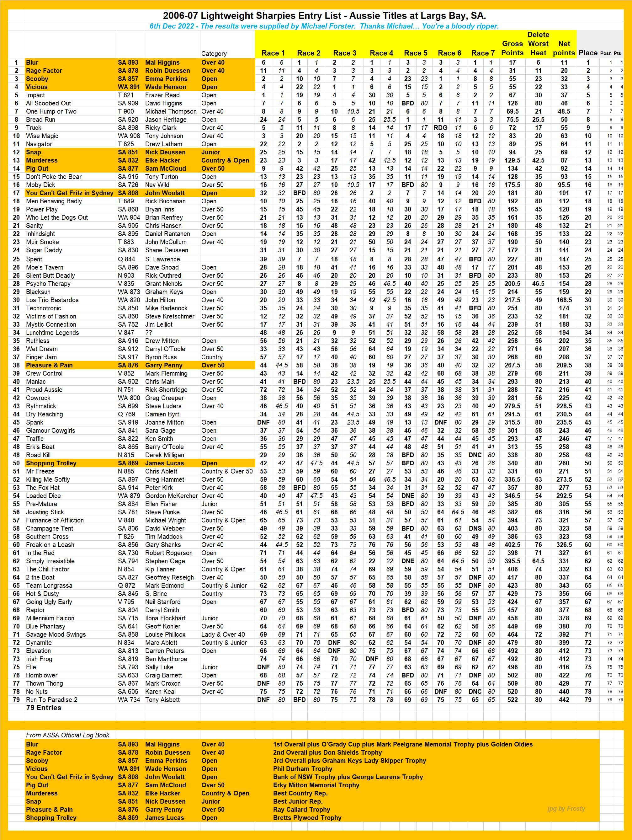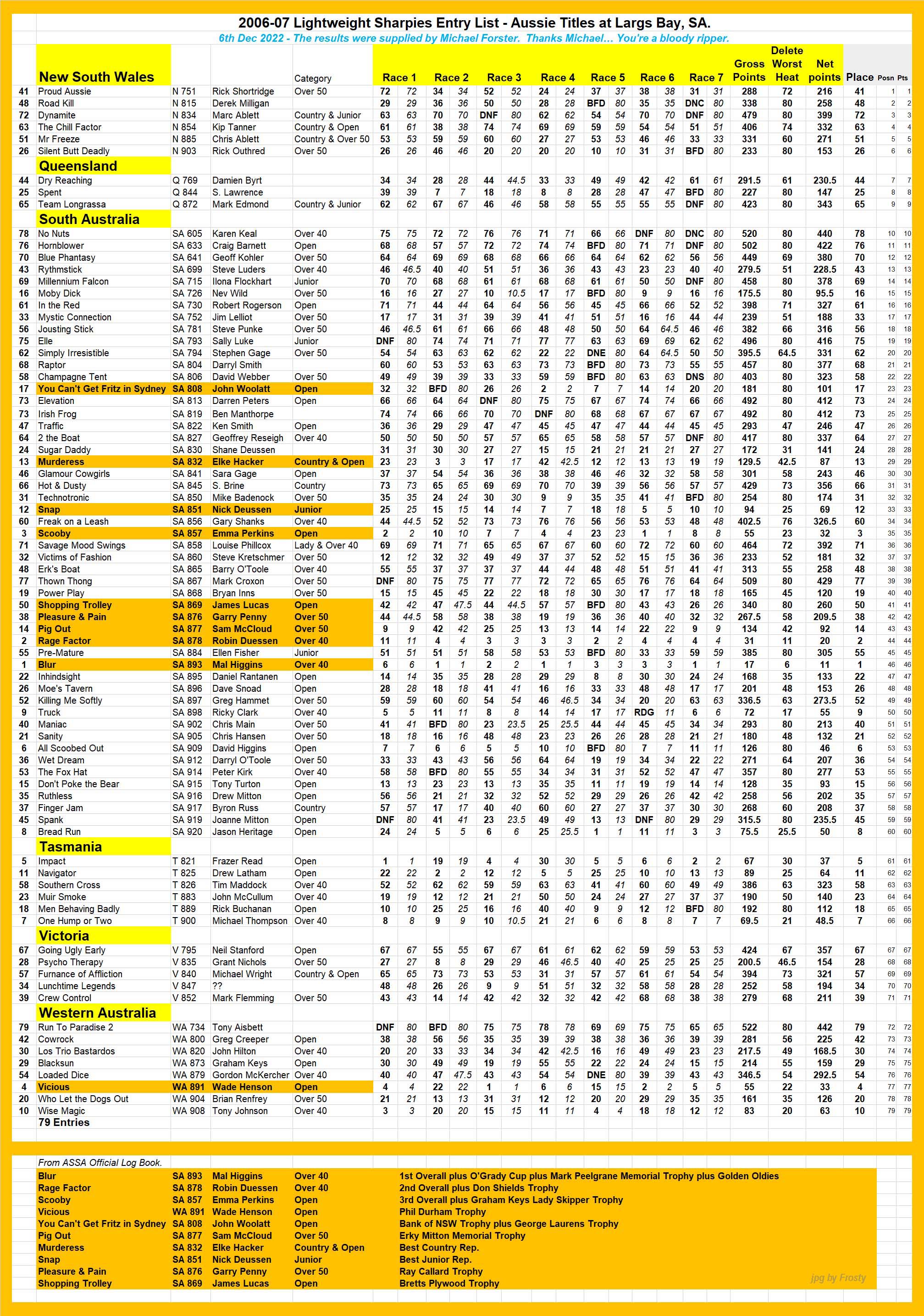 Results supplied by Michael Forster.