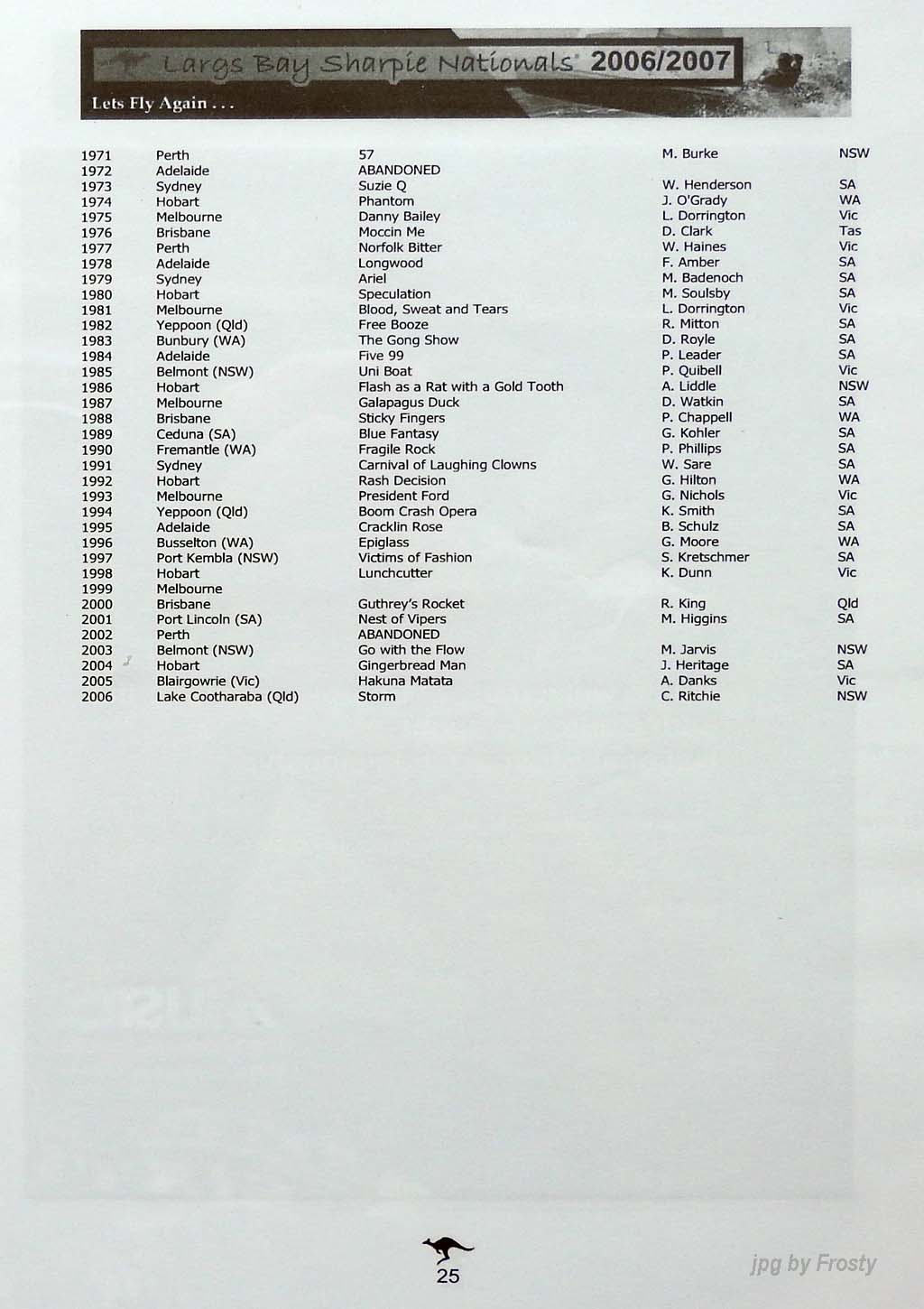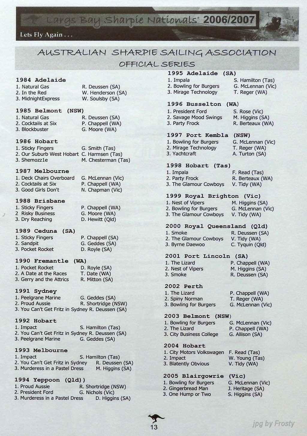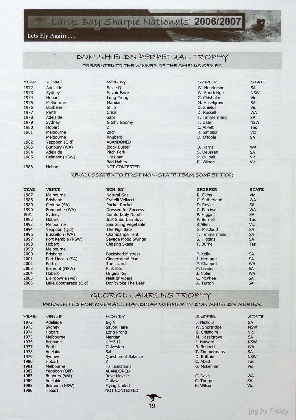 The Programme was supplied by Don Shields and Ross Wilson. Thanks guys.