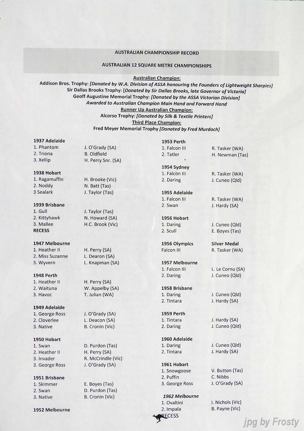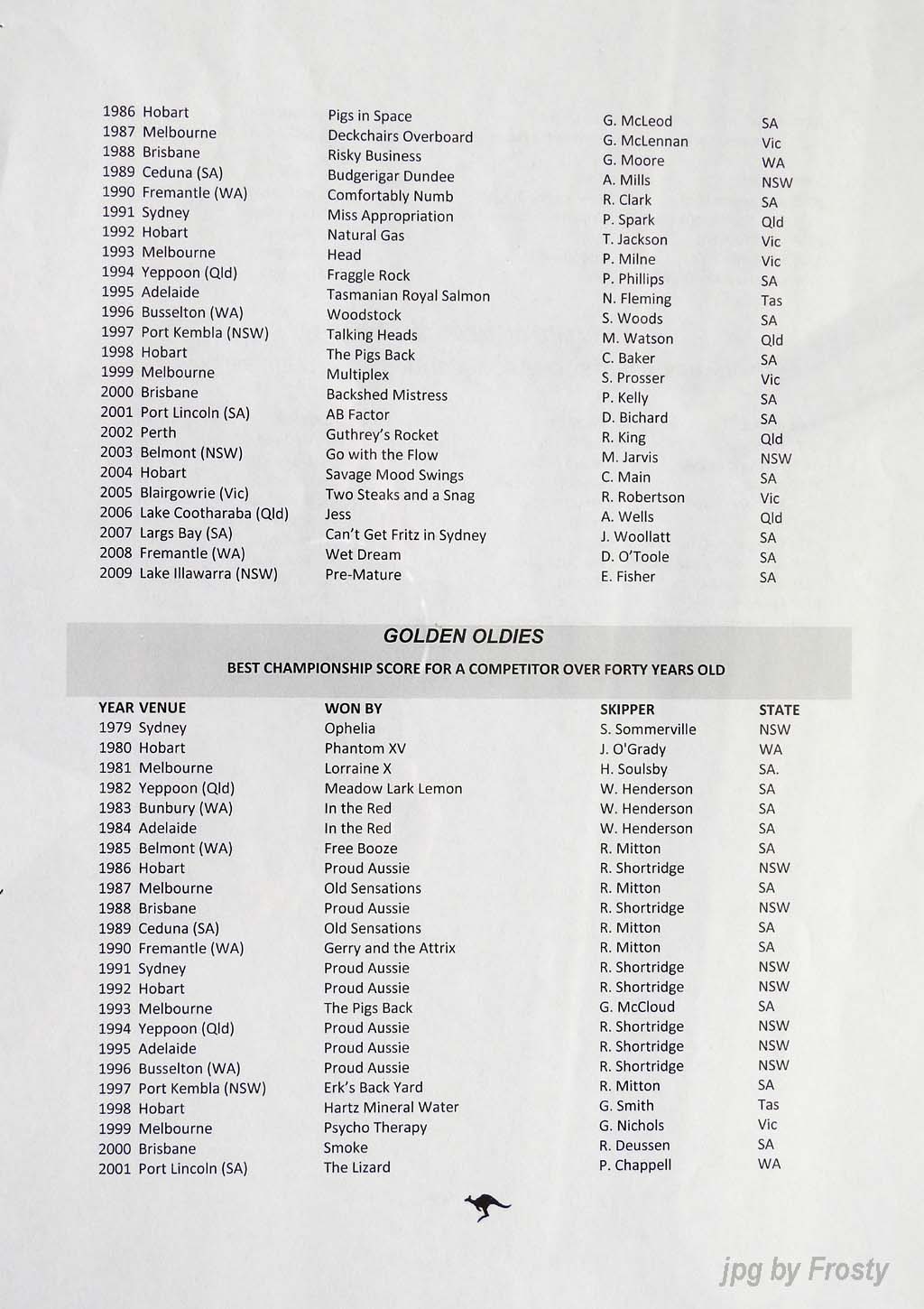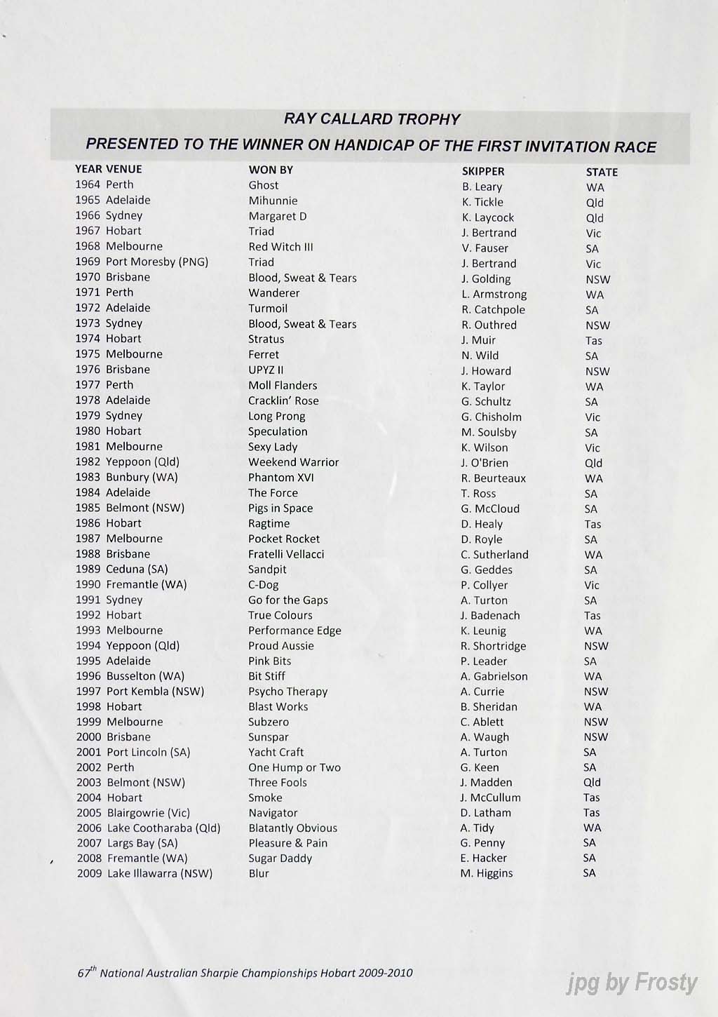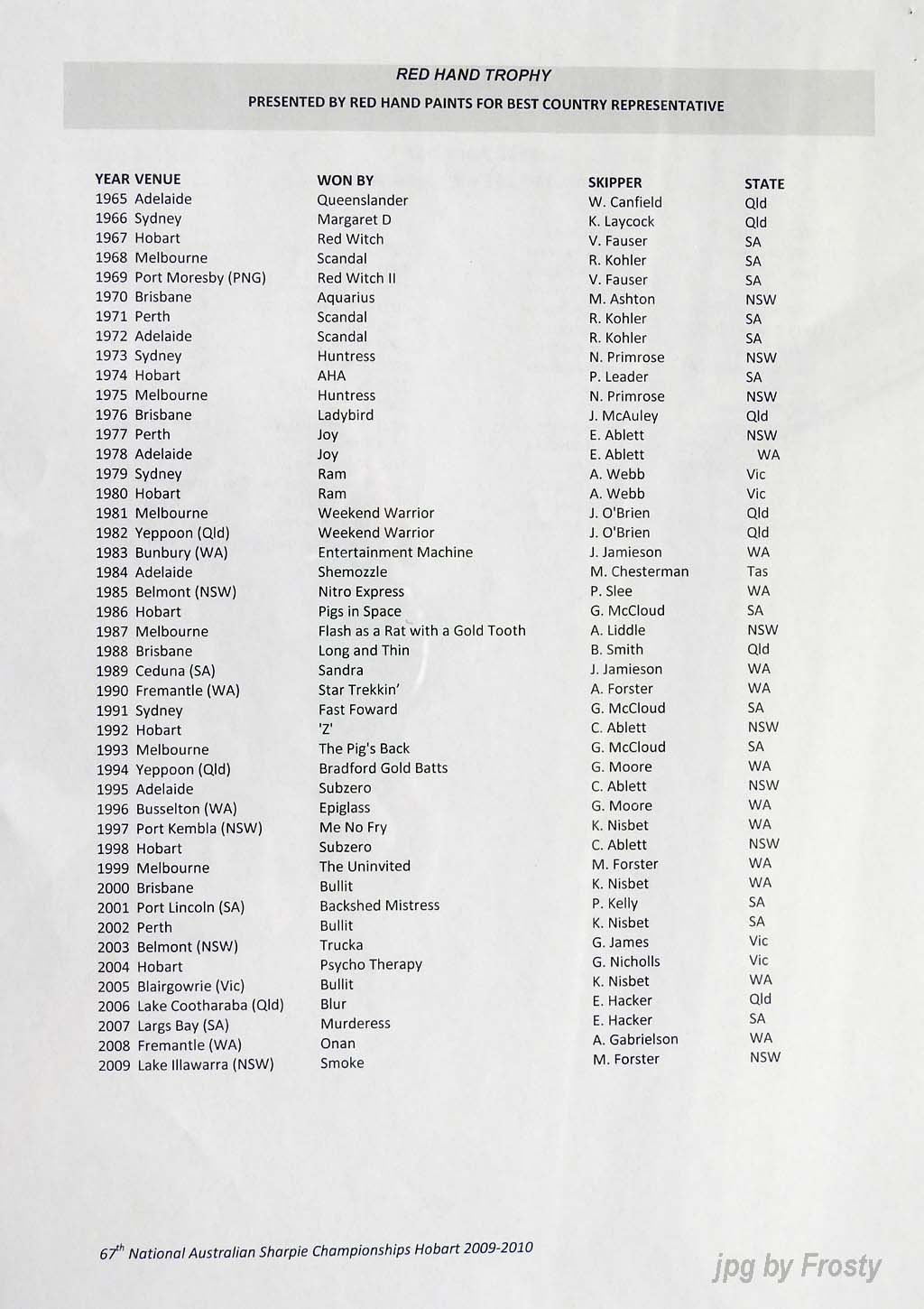 The Results were supplied by Michael Forster. Thanks Michael.