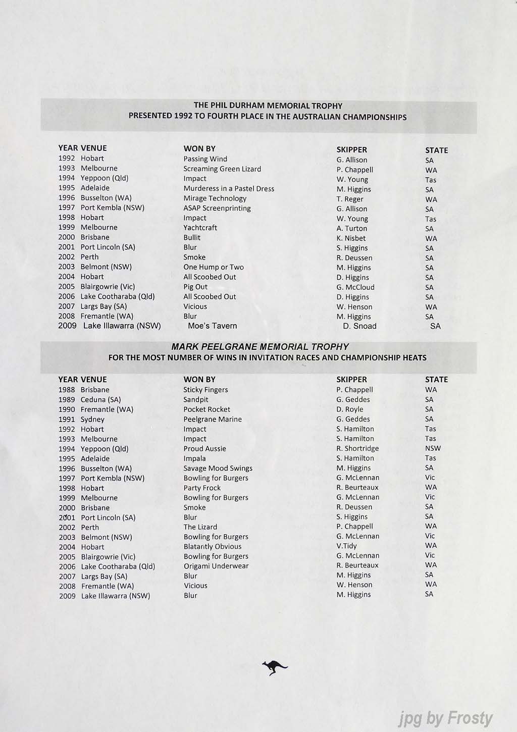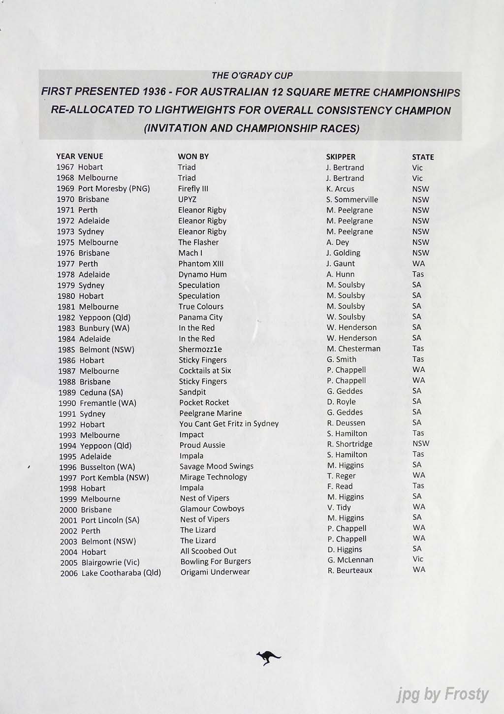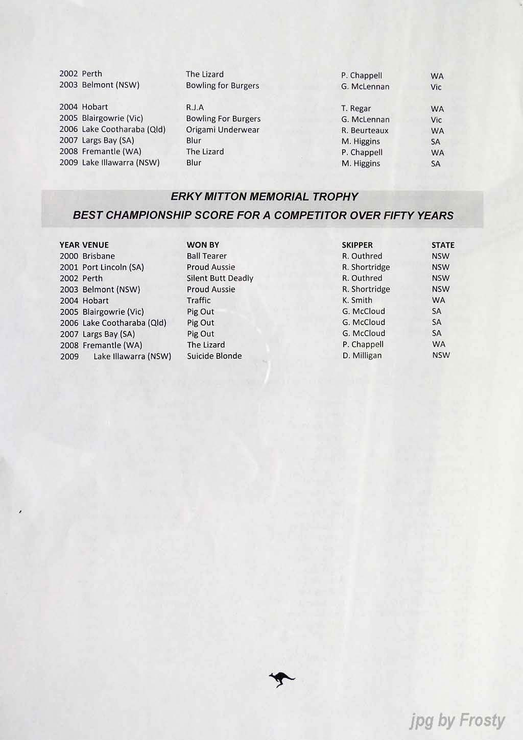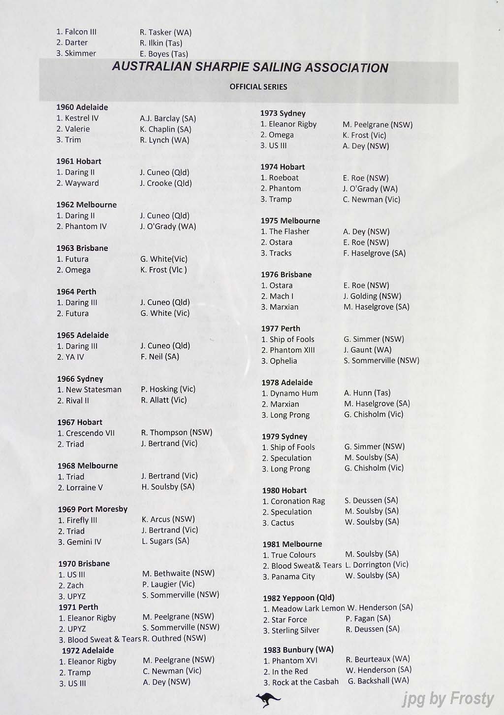 The Results were supplied by Michael Forster. Thanks Michael.