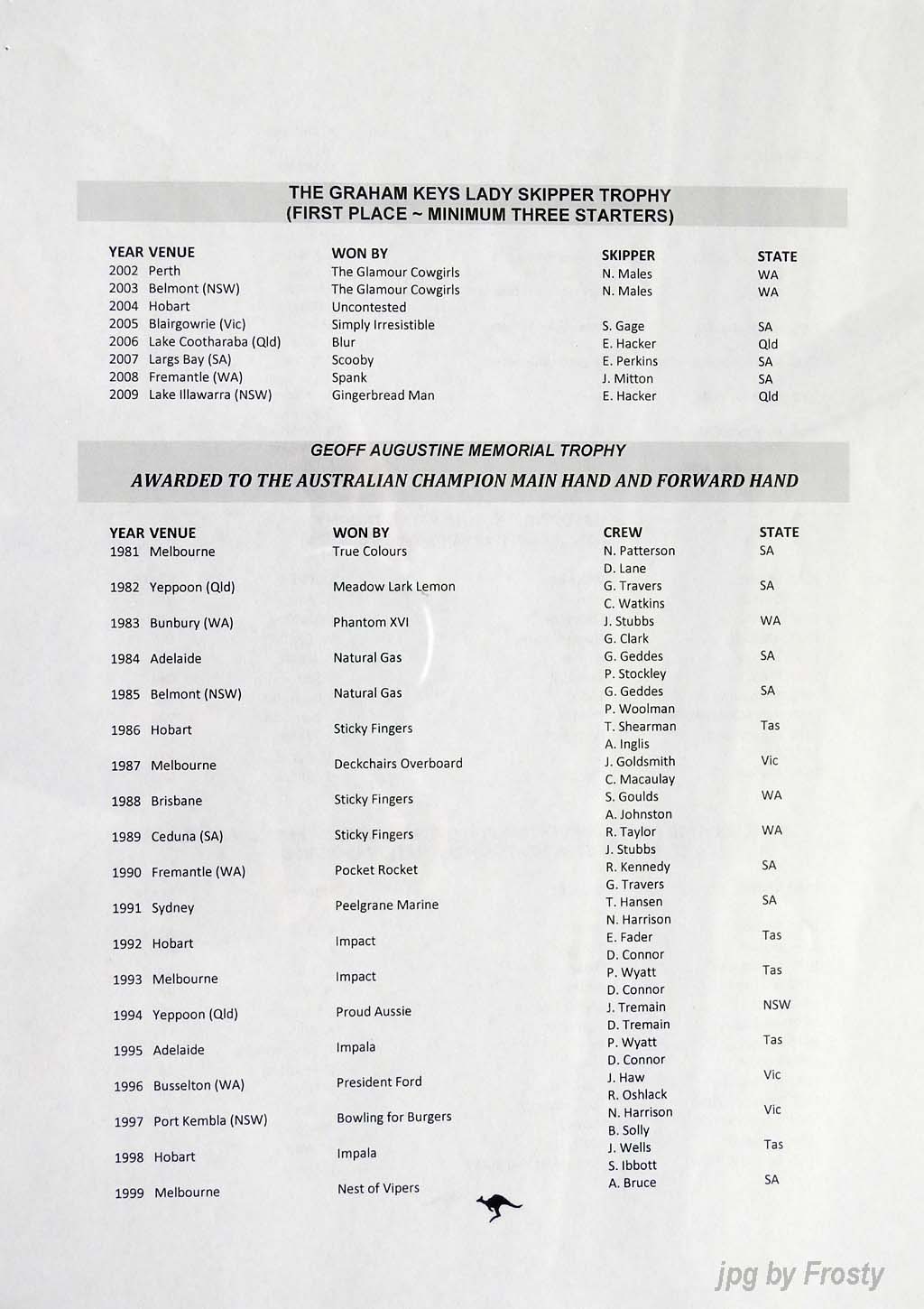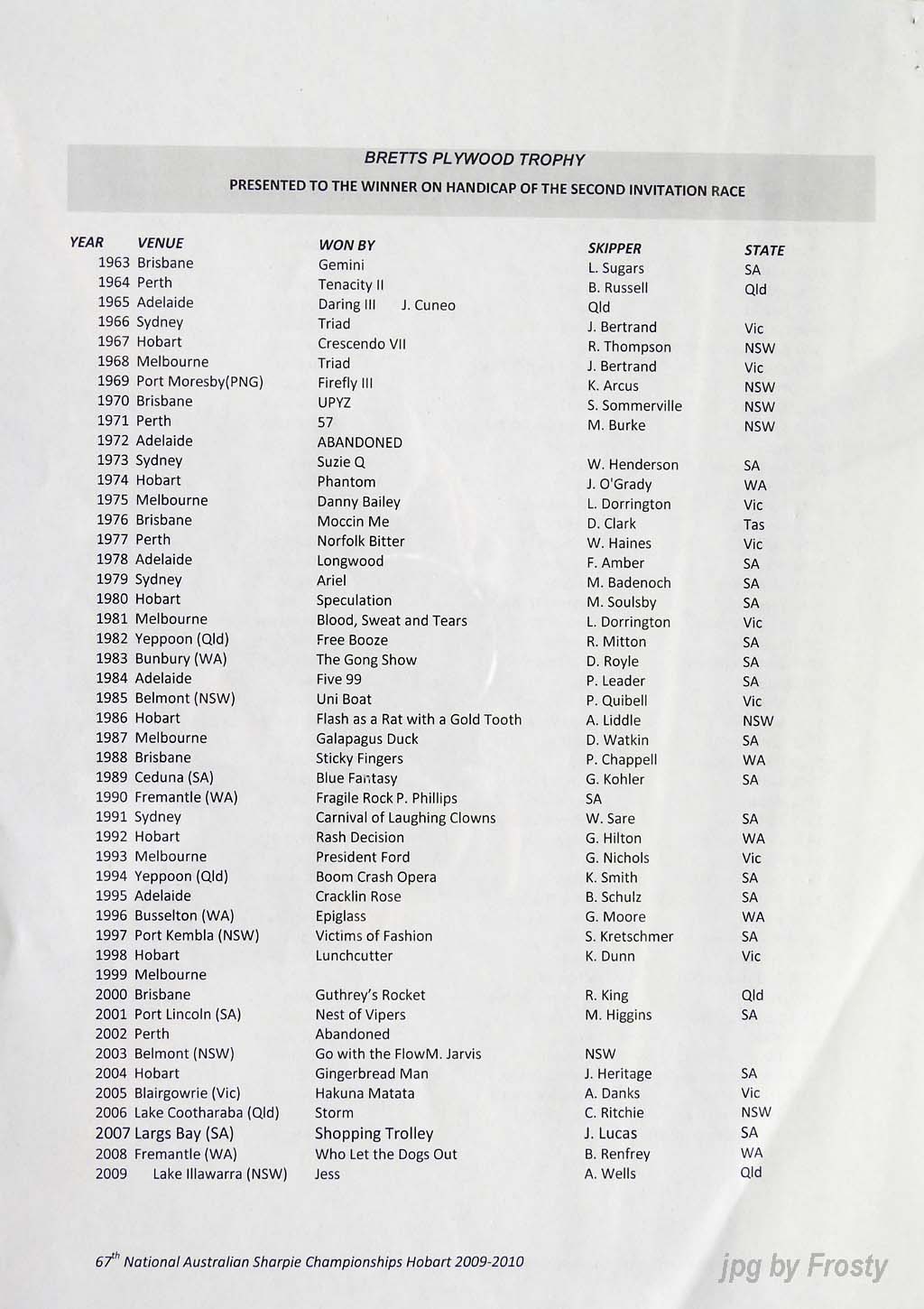 The Programme was supplied by Don Shields and Ross Wilson. Thanks guys.