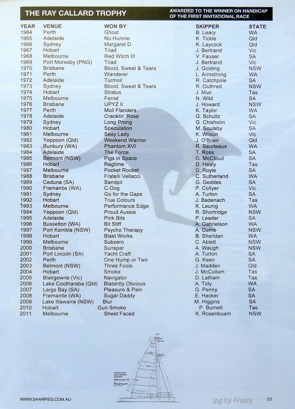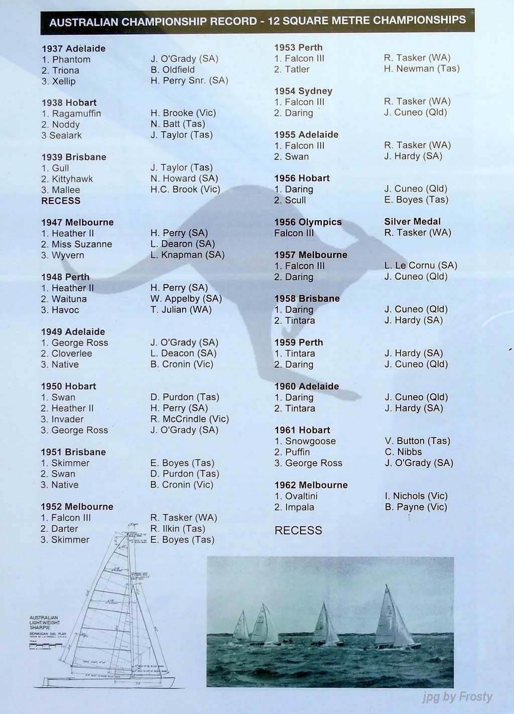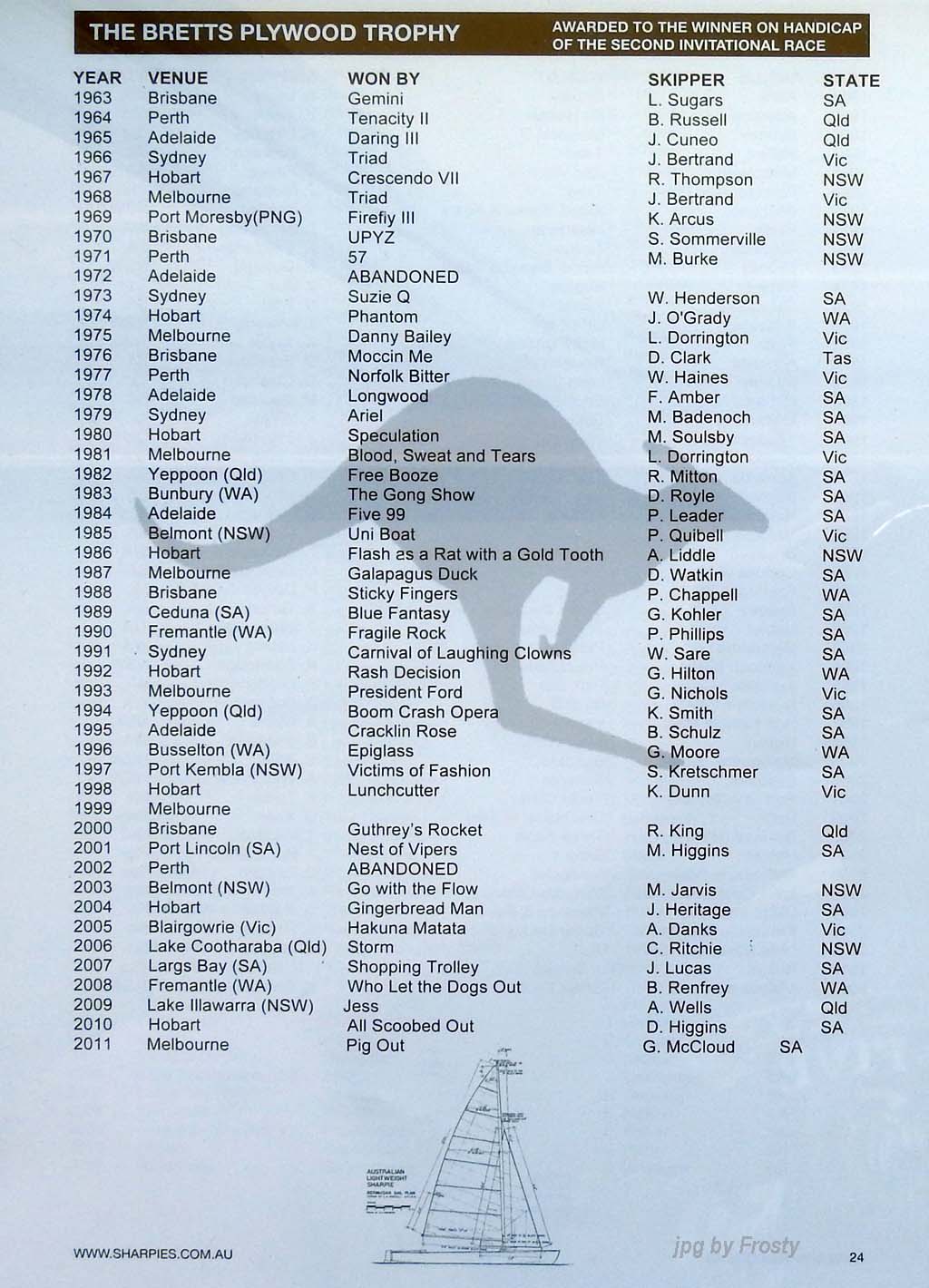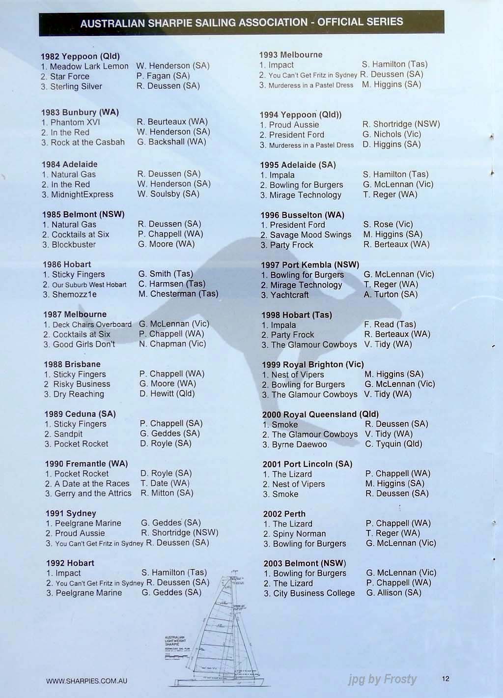 Placings showing Skipper and Crew.