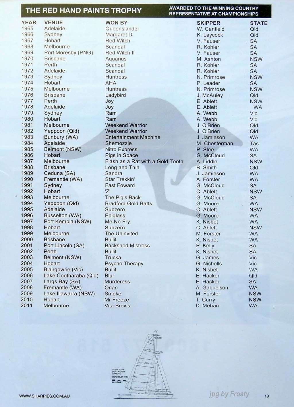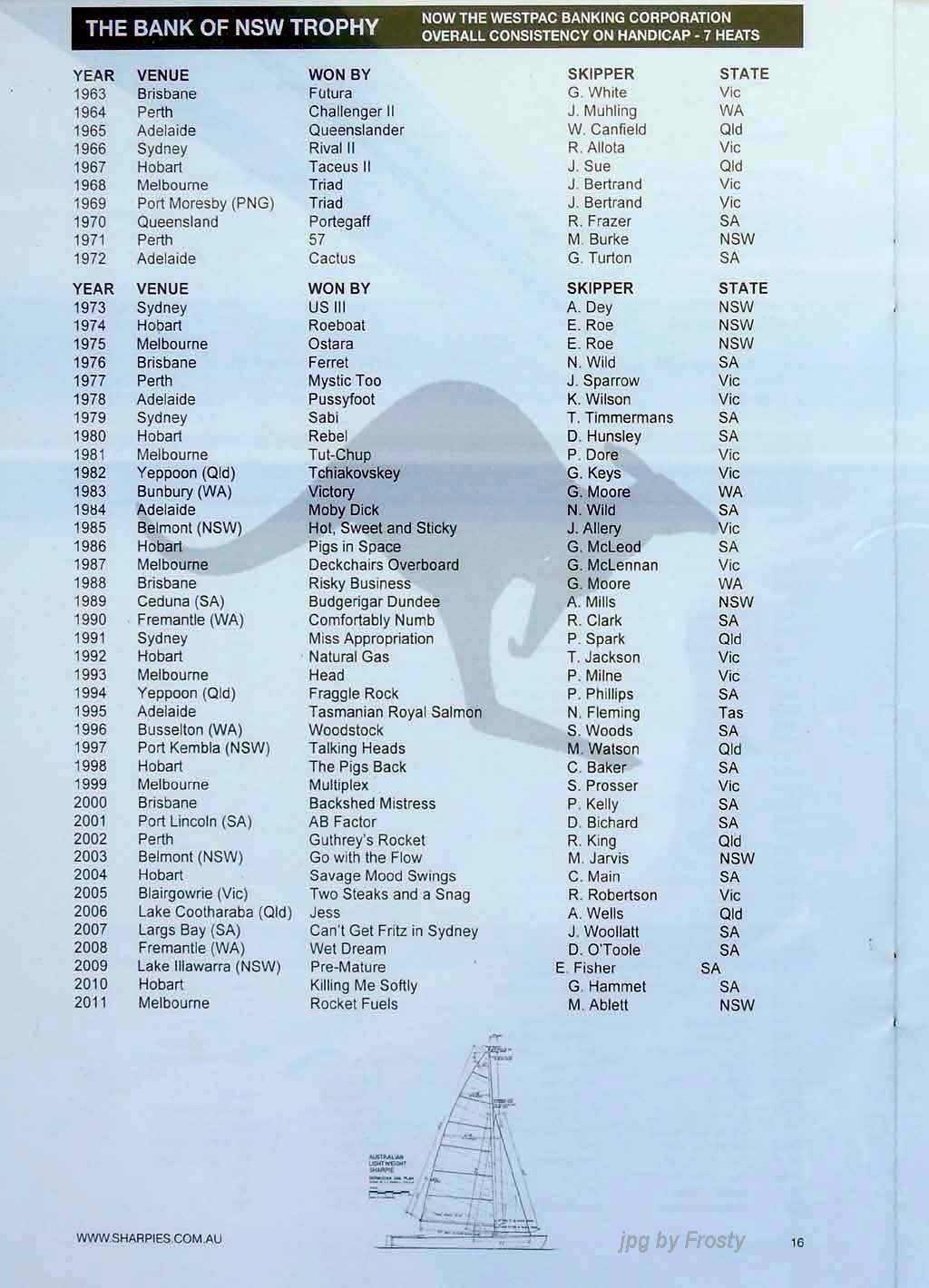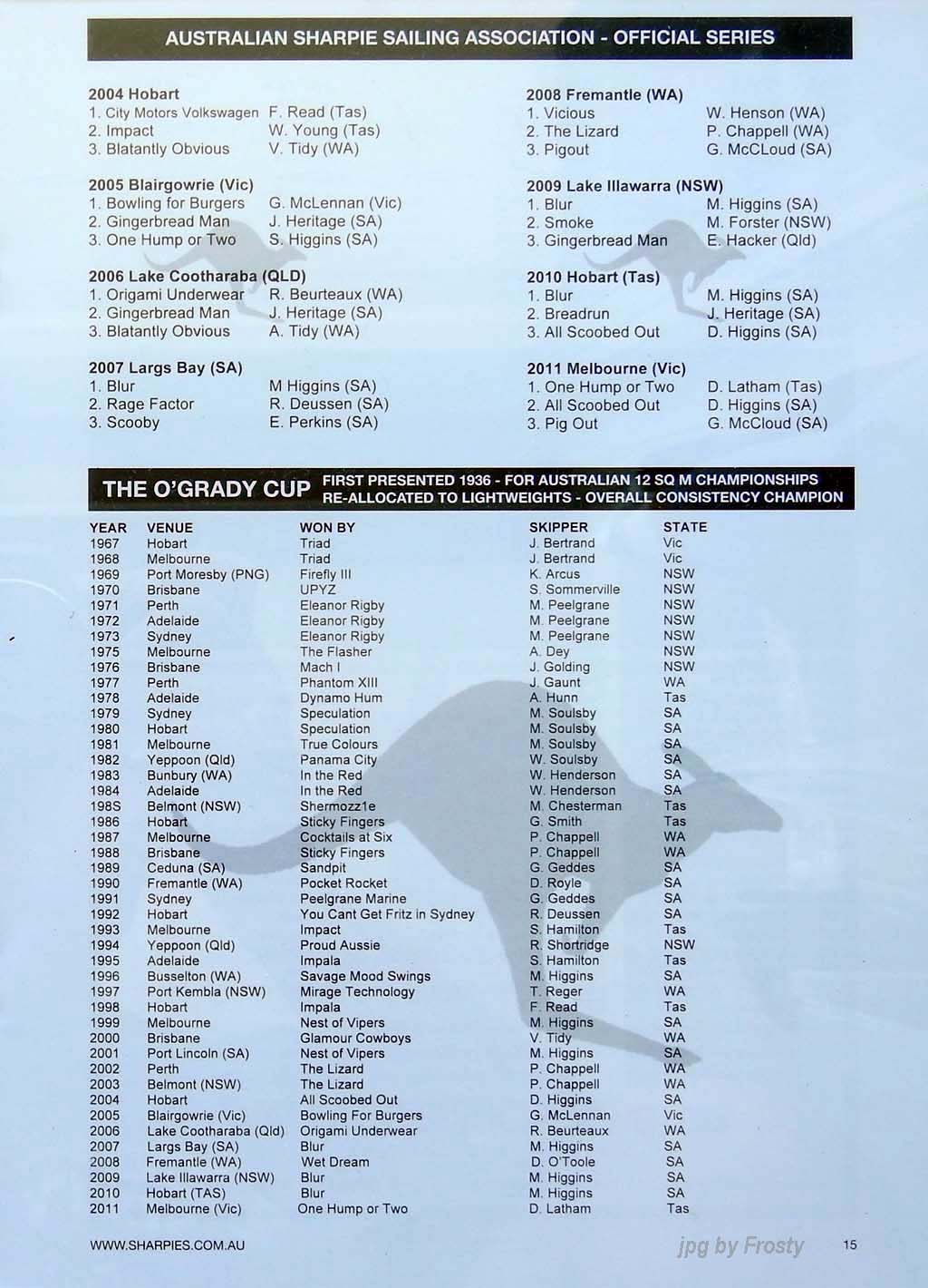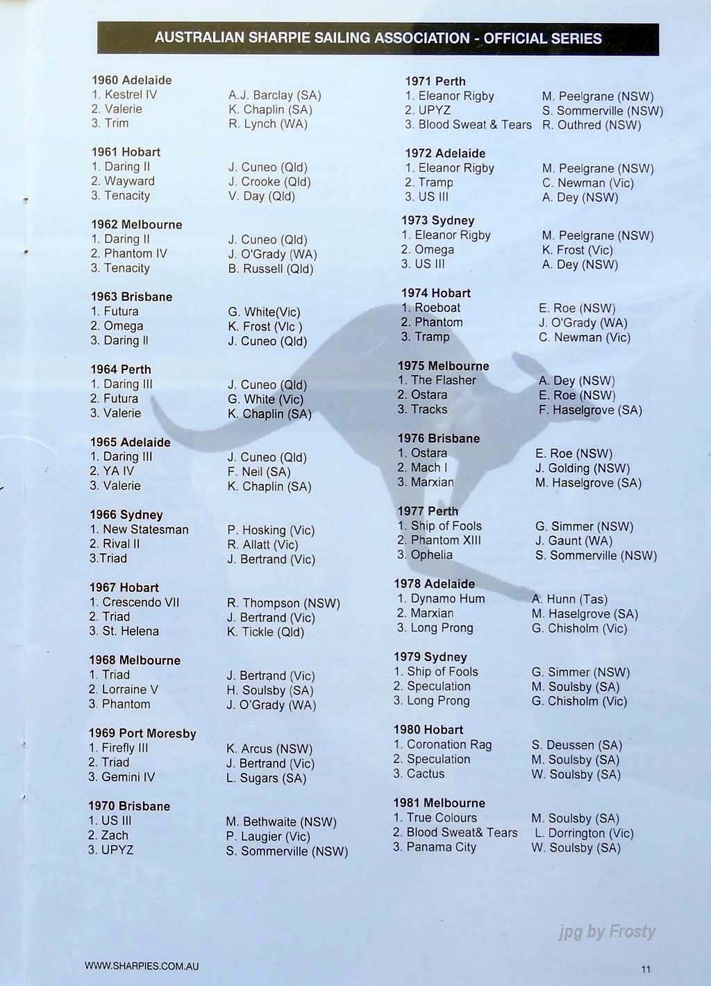 Placings showing Skipper and Crew.
