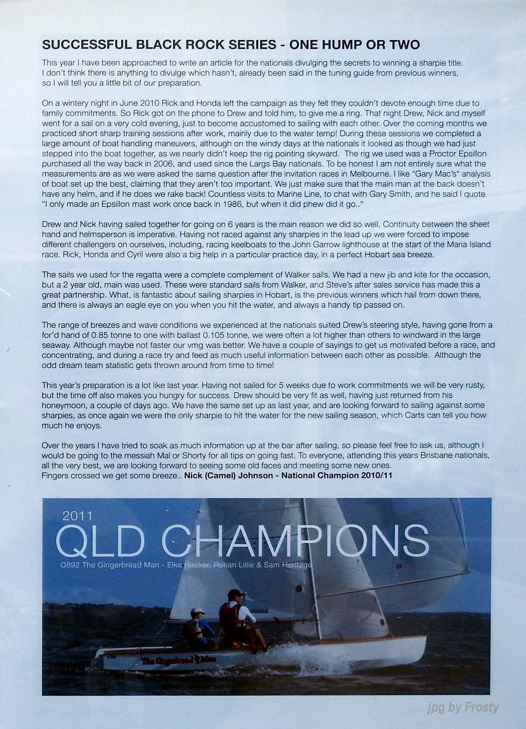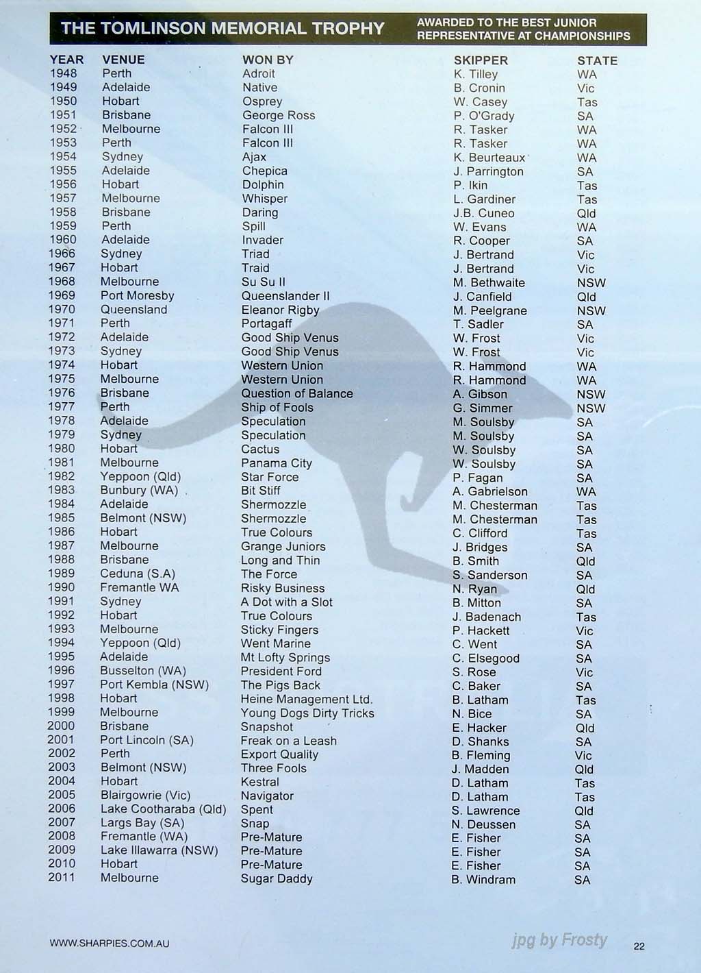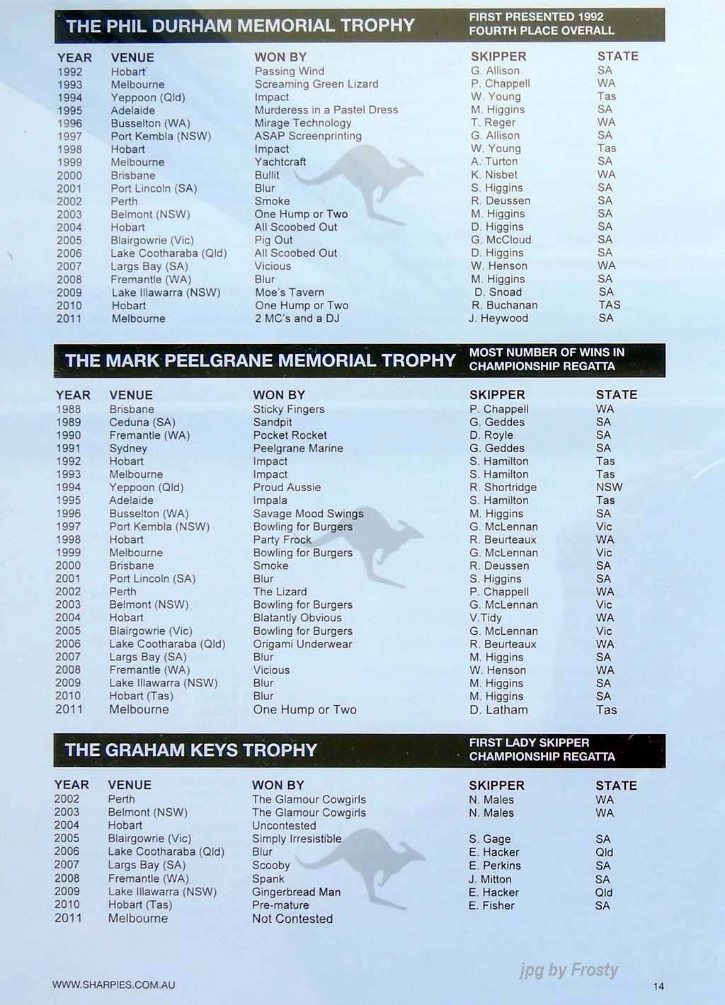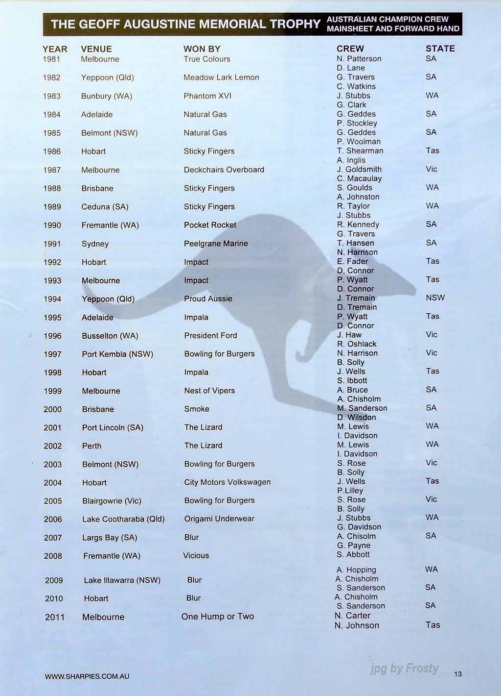 Placings showing Skipper and Crew.