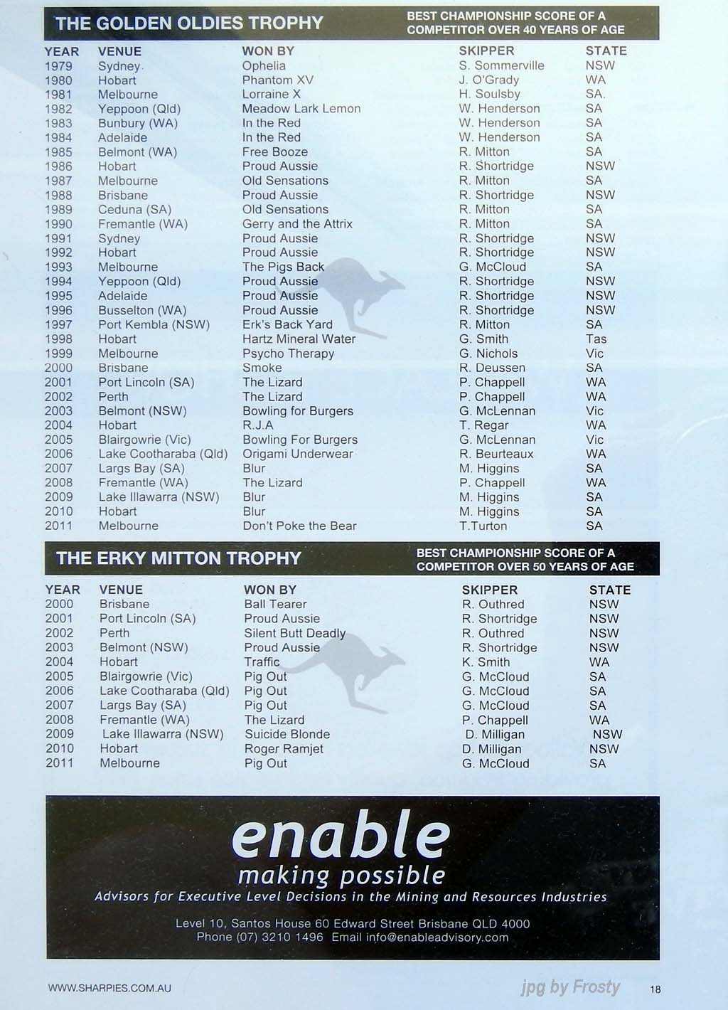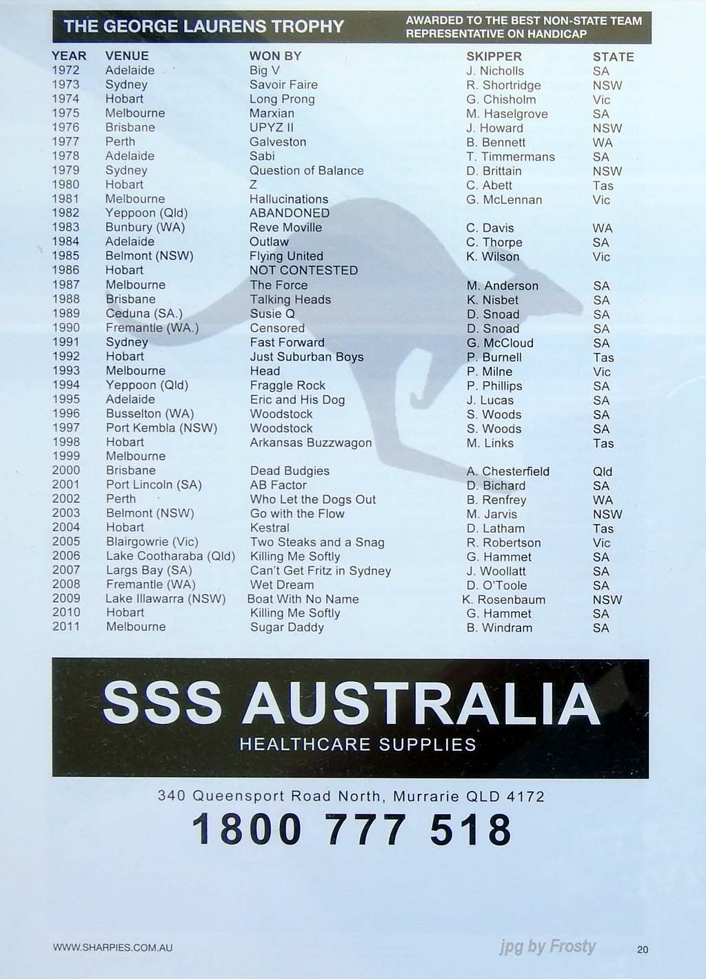 The Results were supplied by Michael Forster and ASSA Website. Thanks Michael.