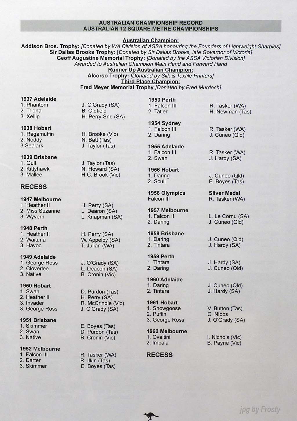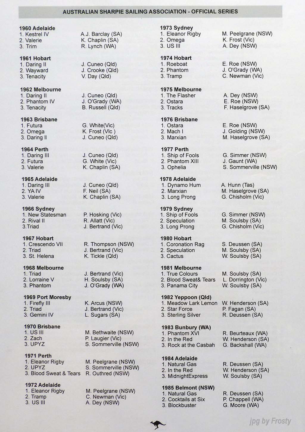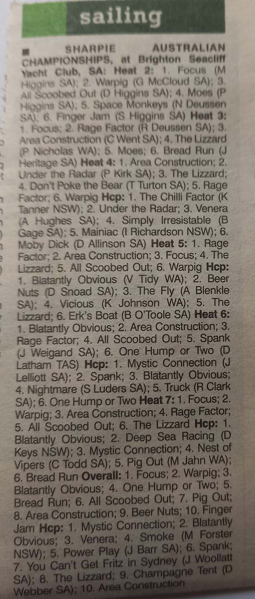 Volunteered for some low level positions on WA Committee and 71st Nationals committee, setup the WA website including setup with Google NFP. Last time I sailed sharpies was with Trevor Date on WA922-Out of Date at last Perth nationals.
