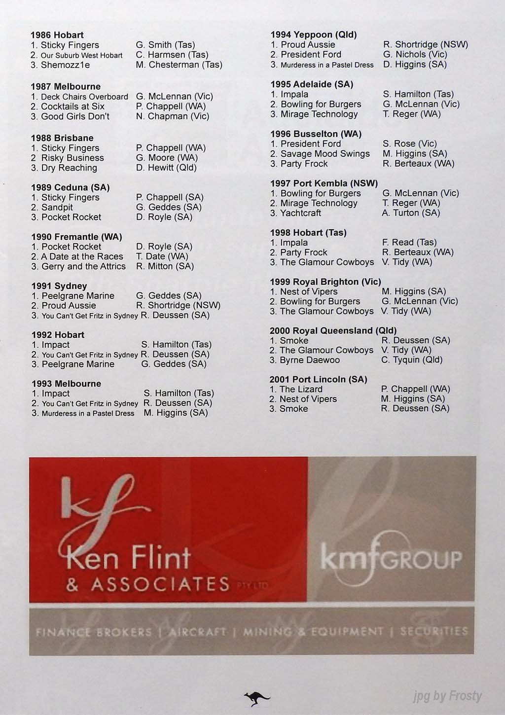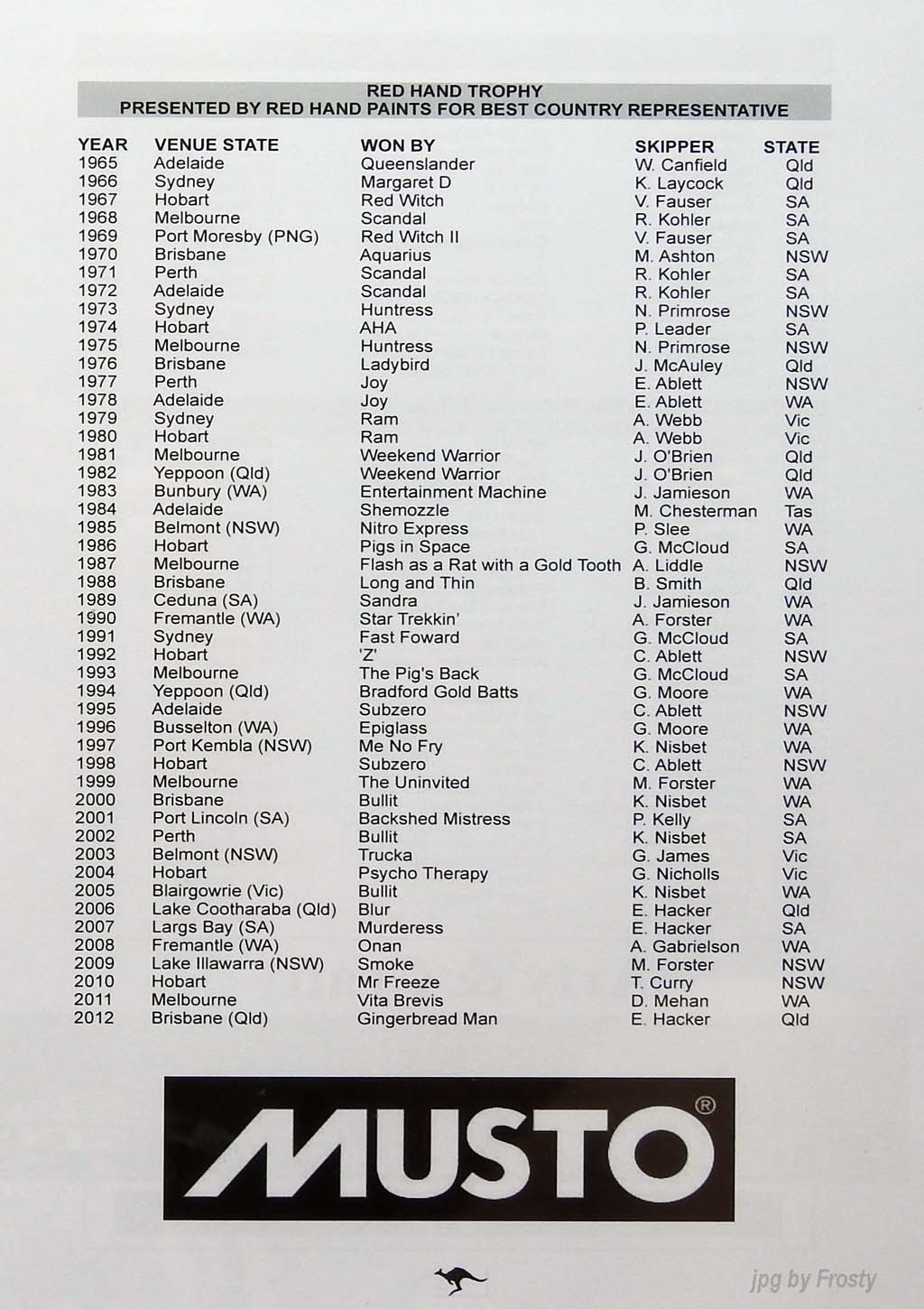 Rhyss sailed in 5 Aussie Titles as mainhand on board the following Sharpies: