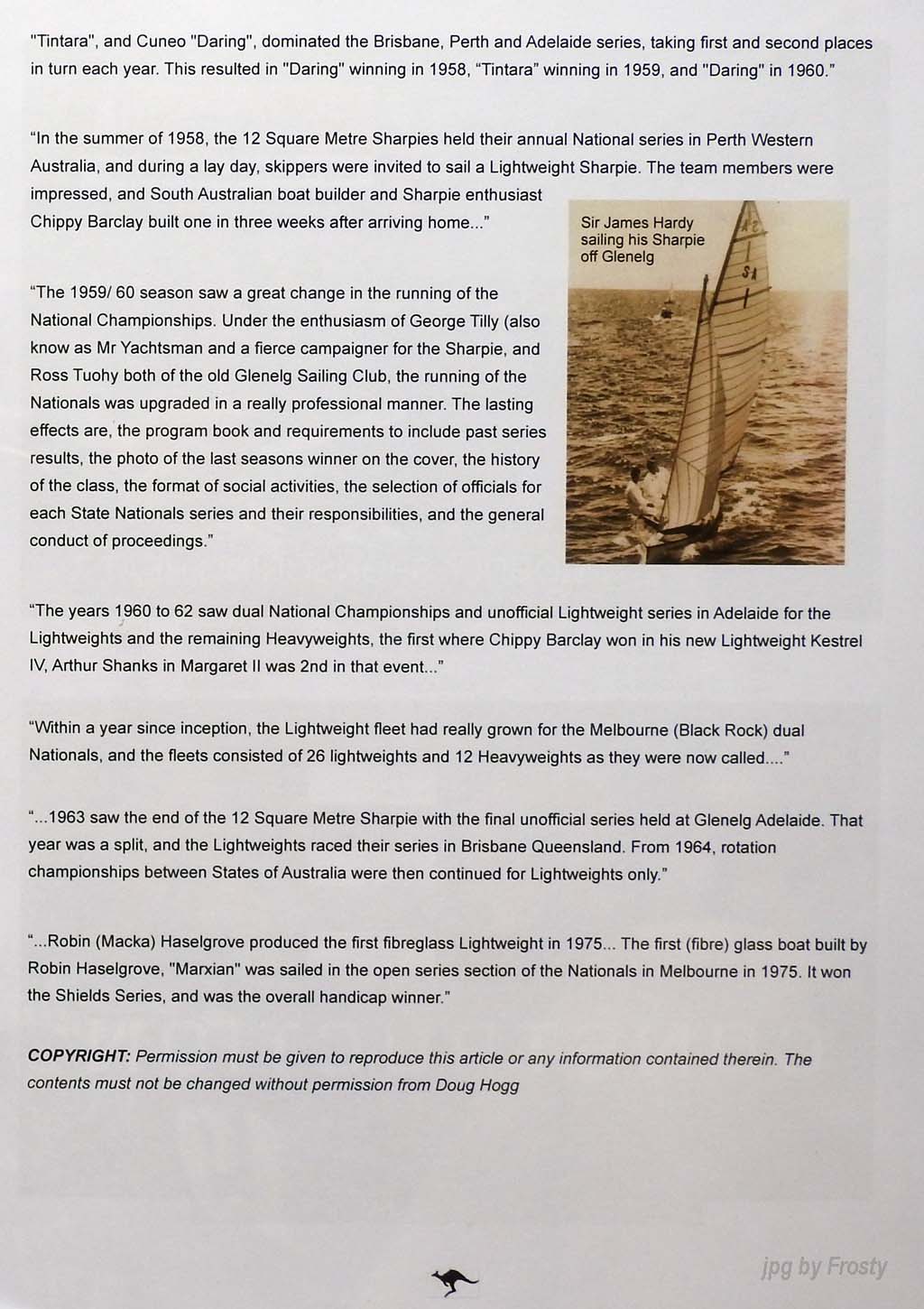 I started sailing sharpies around 2009 with David Meehan and Brendon Green on WA910 Vita Brevis and moved to sail with Gordon Mckercher on WA879-Loaded Dice. Did 3 or 4 years of nationals circuit.