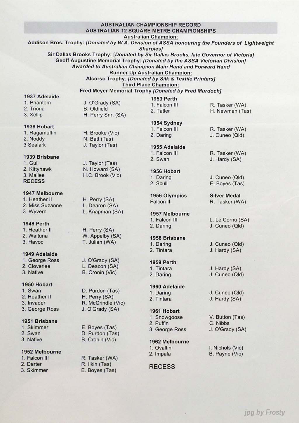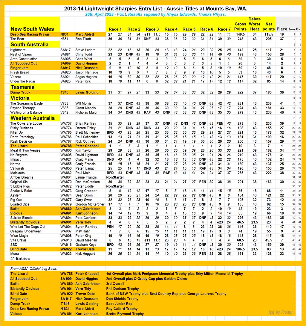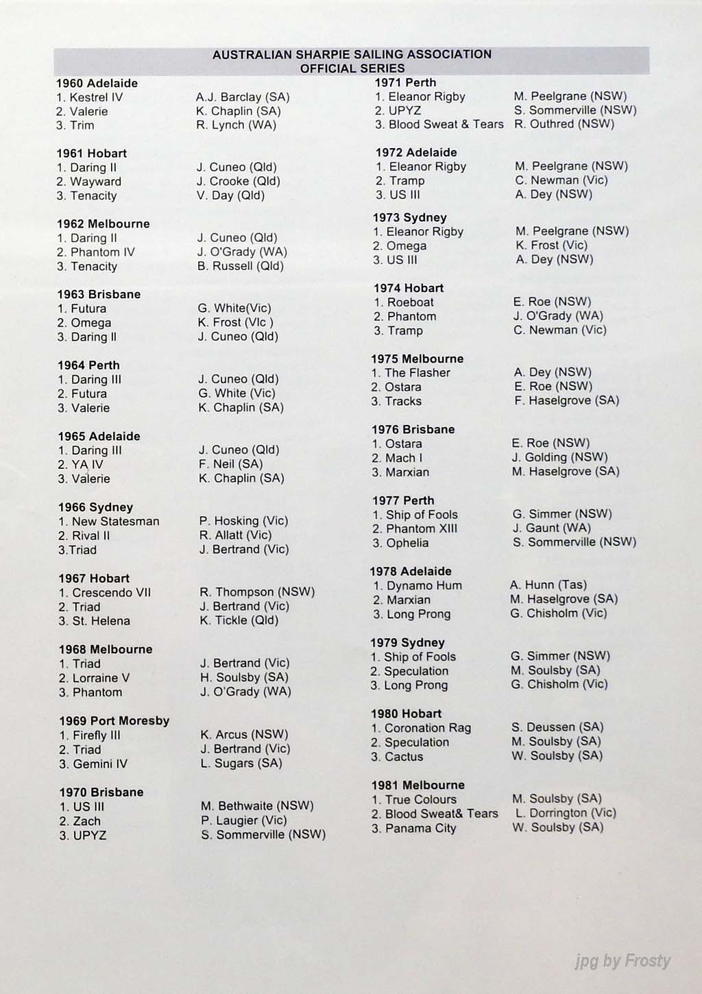 Volunteered for some low level positions on WA Committee and 71st Nationals committee, setup the WA website including setup with Google NFP. Last time I sailed sharpies was with Trevor Date on WA922-Out of Date at last Perth nationals.
