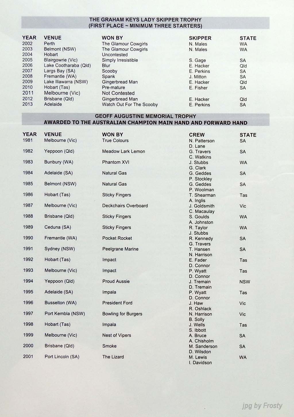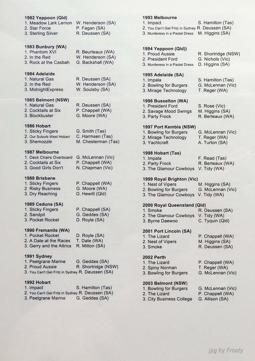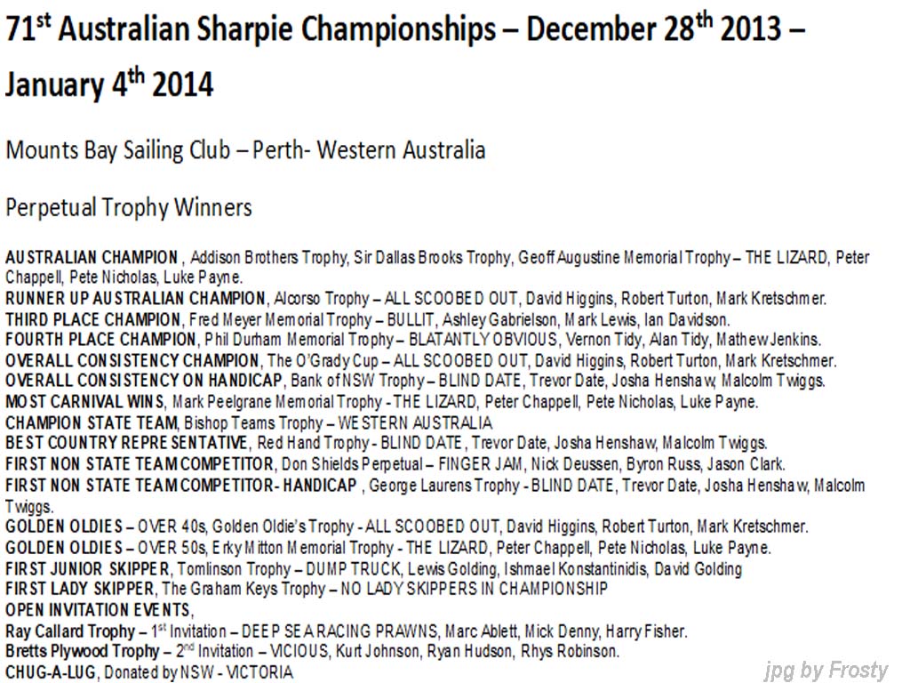 Volunteered for some low level positions on WA Committee and 71st Nationals committee, setup the WA website including setup with Google NFP. Last time I sailed sharpies was with Trevor Date on WA922-Out of Date at last Perth nationals.