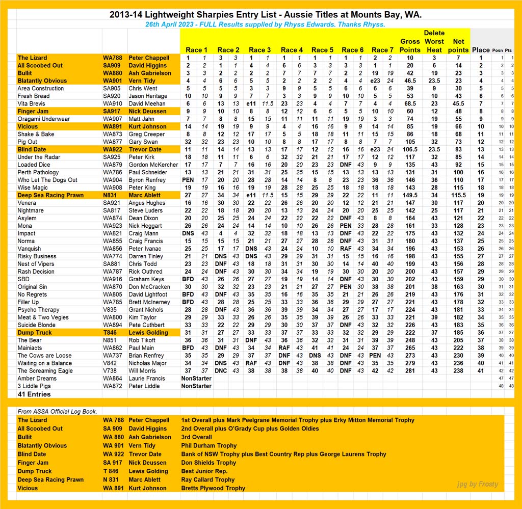 Thanks Rhyss, I never thought that I would get a copy of the 2013-14 FULL Results.