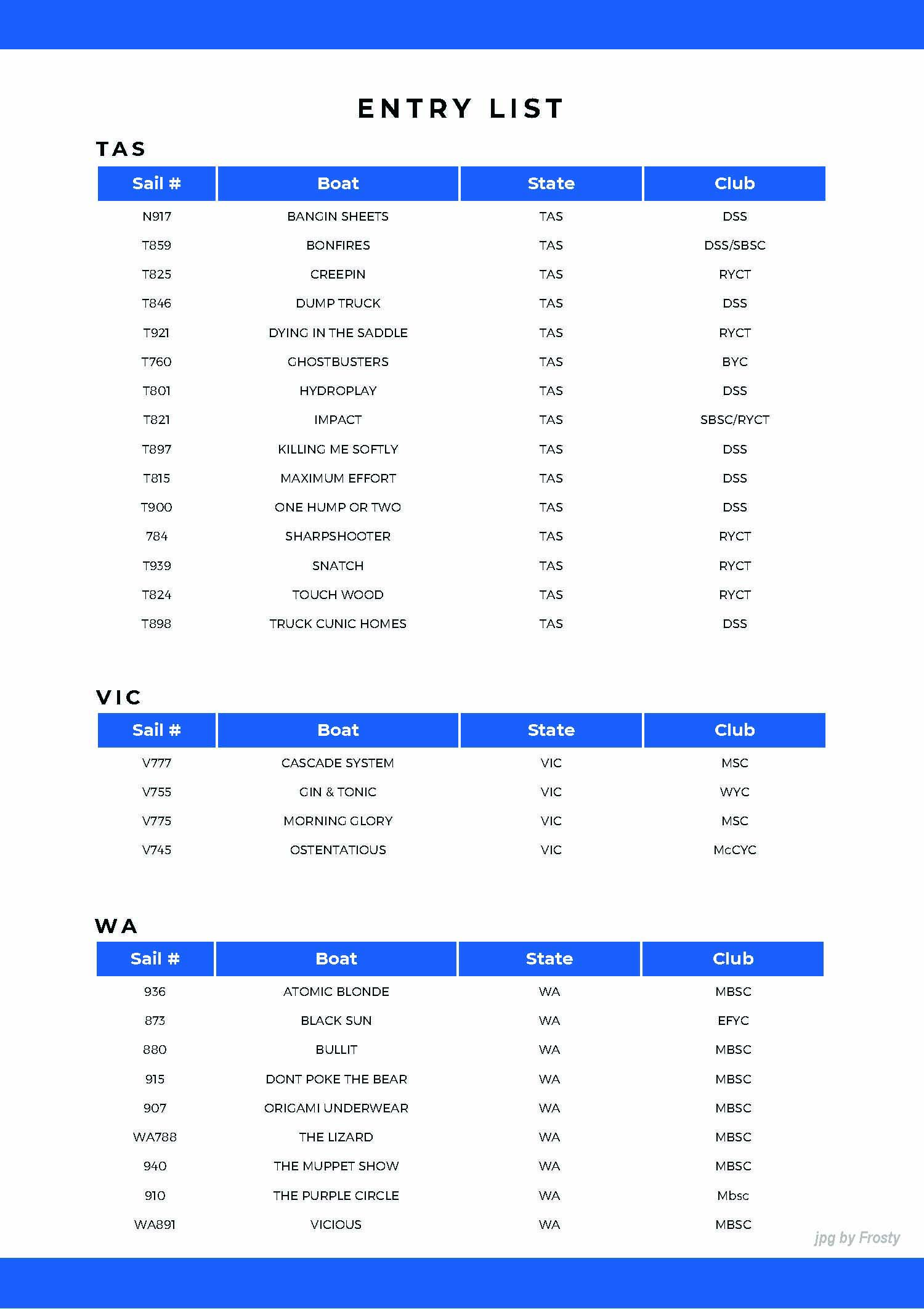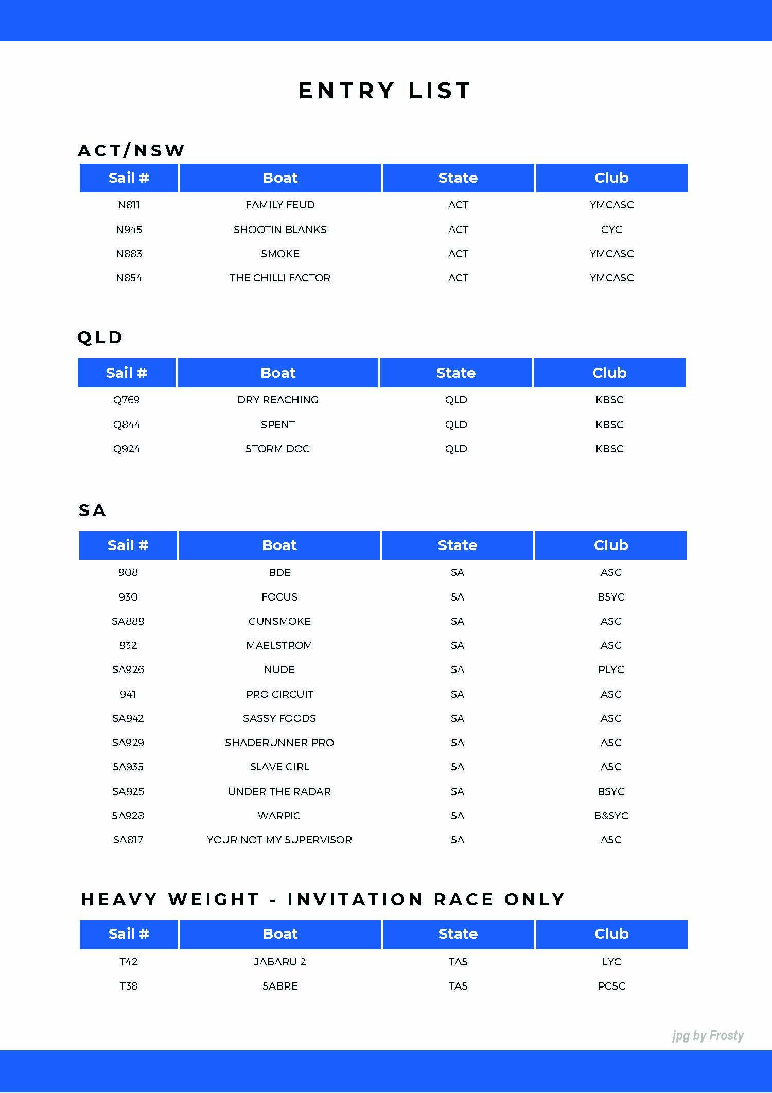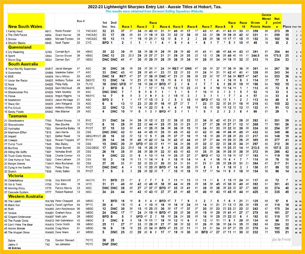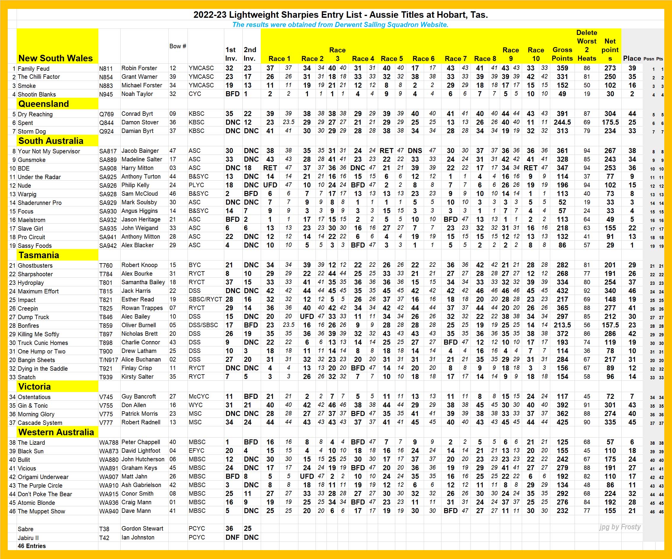 Host Club: Sandy Bay SC and Derwent Sailing Squadron.
