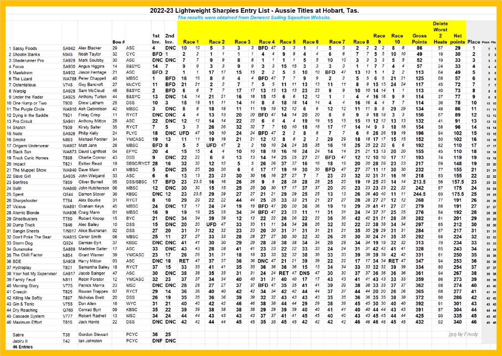 The Programme was downloaded from the Derwent Sailing Squadron website.