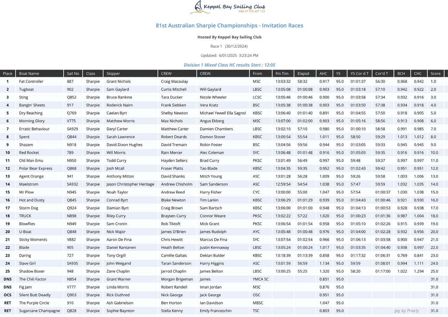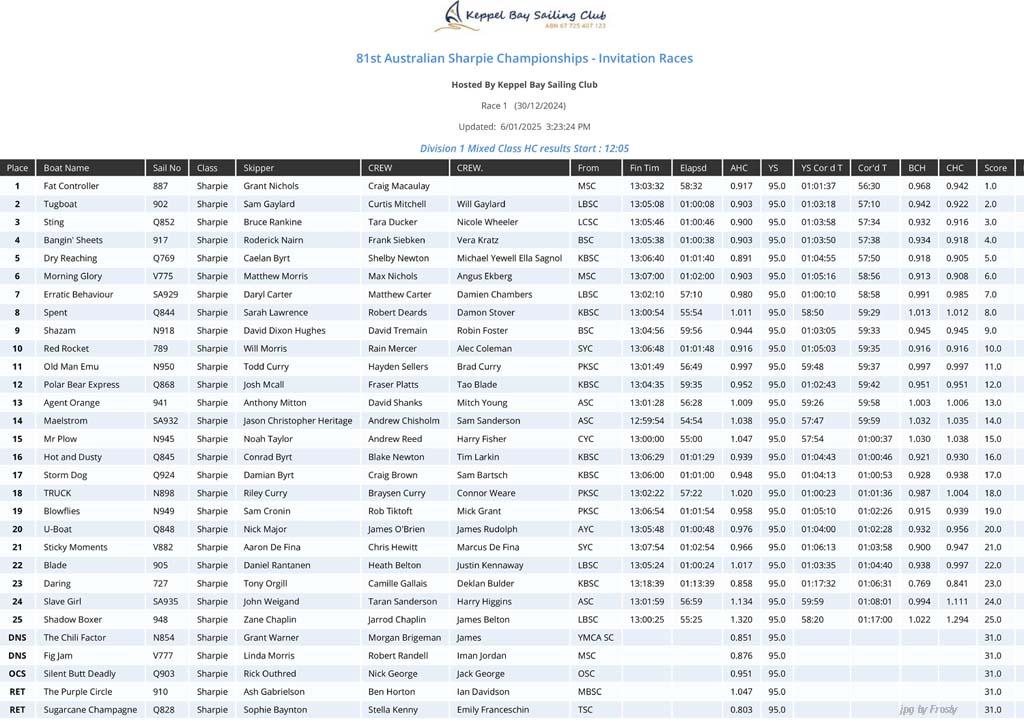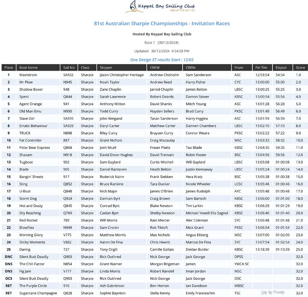 Overall - 1st Invitation Race - Monday 30th December 2024.
