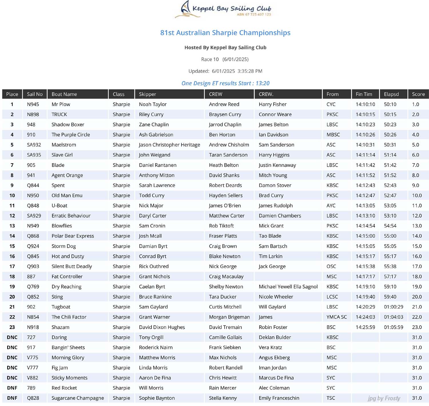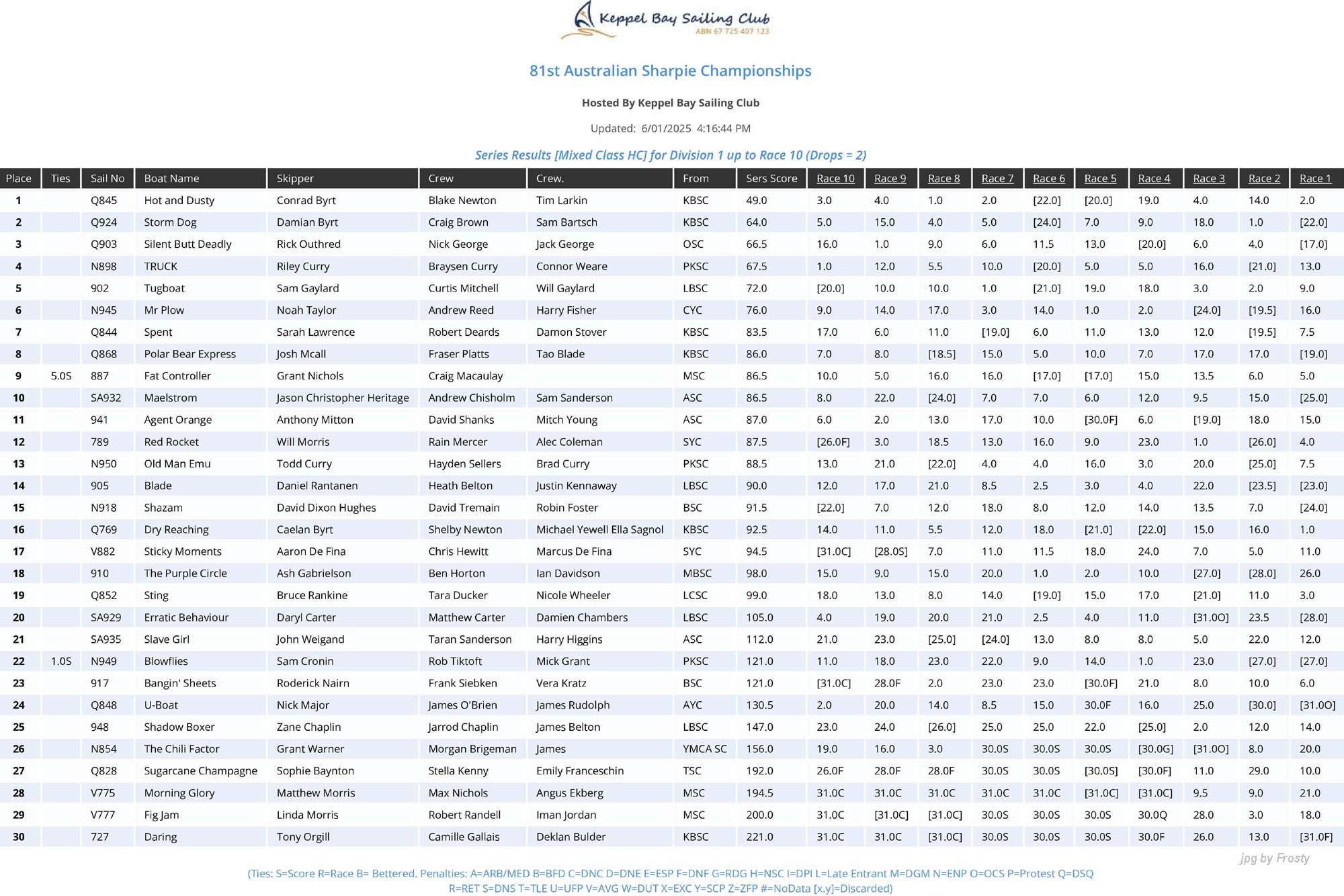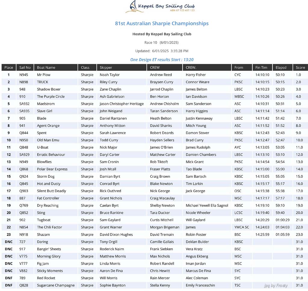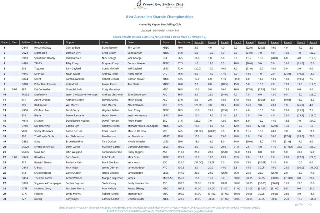 Full Results of 10 races - Overall.