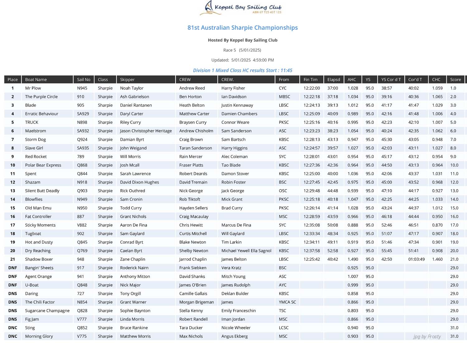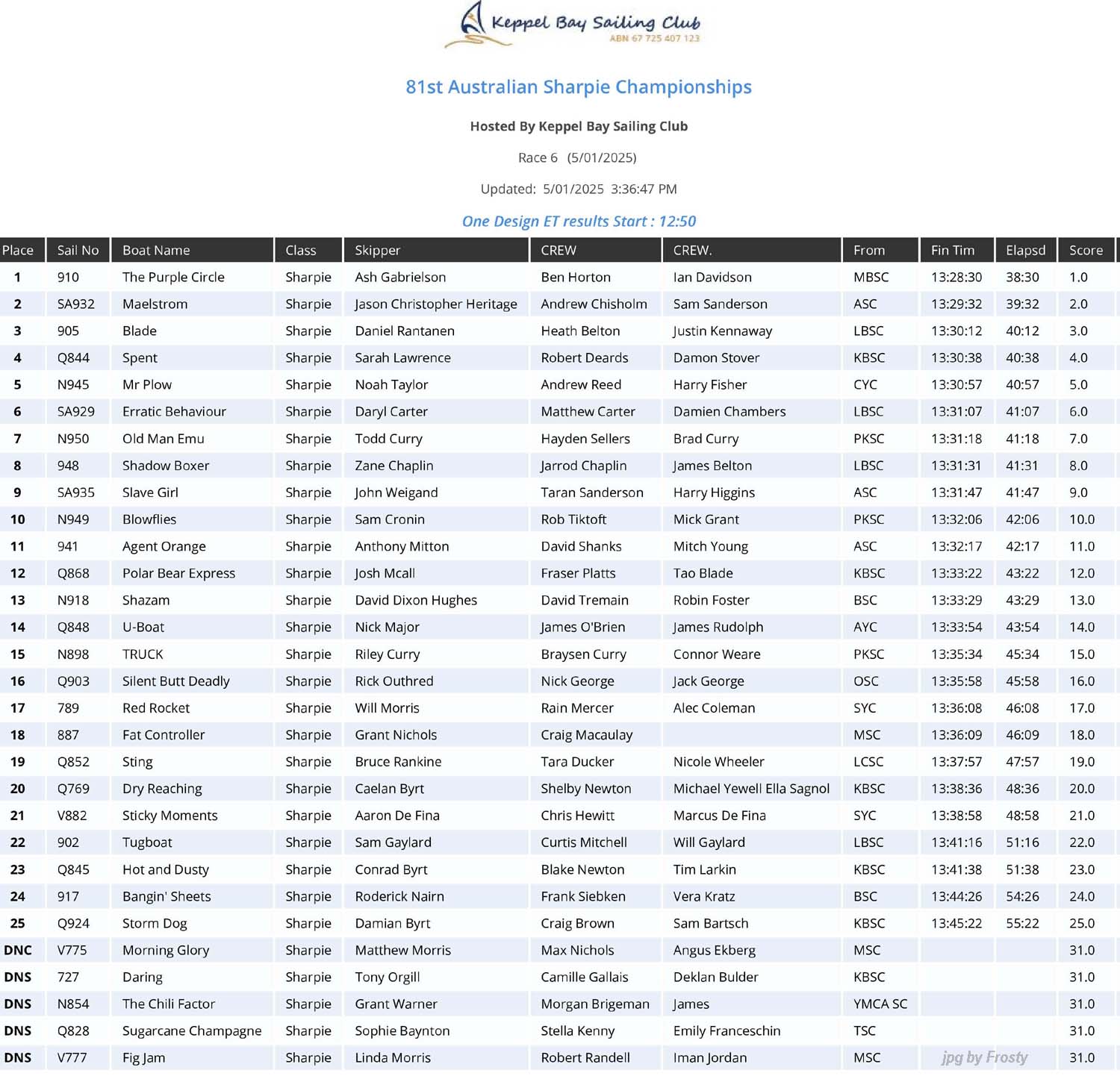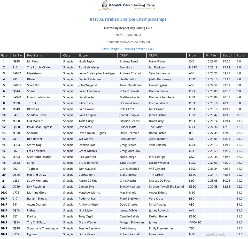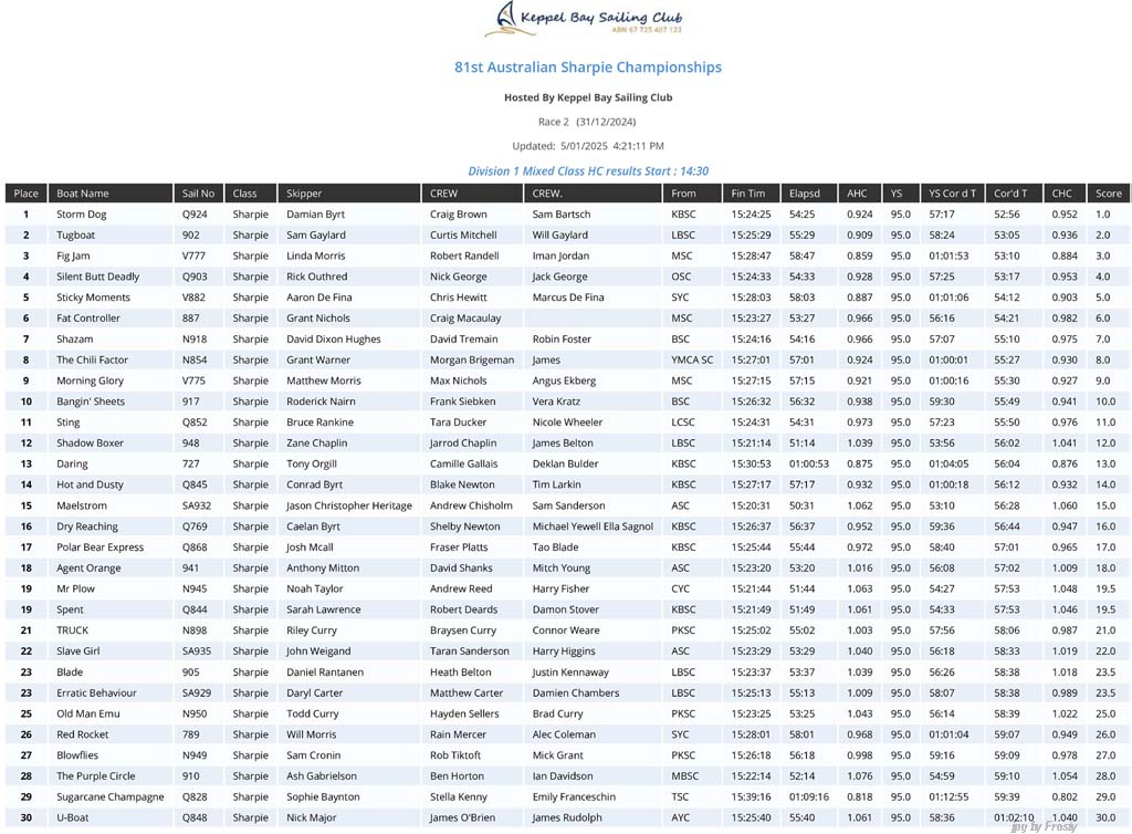Race #5 - Sunday 5th January 2025.