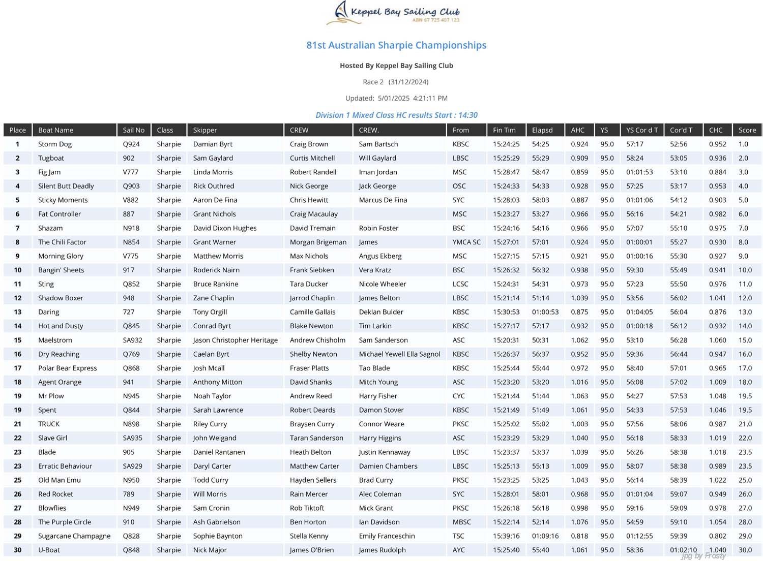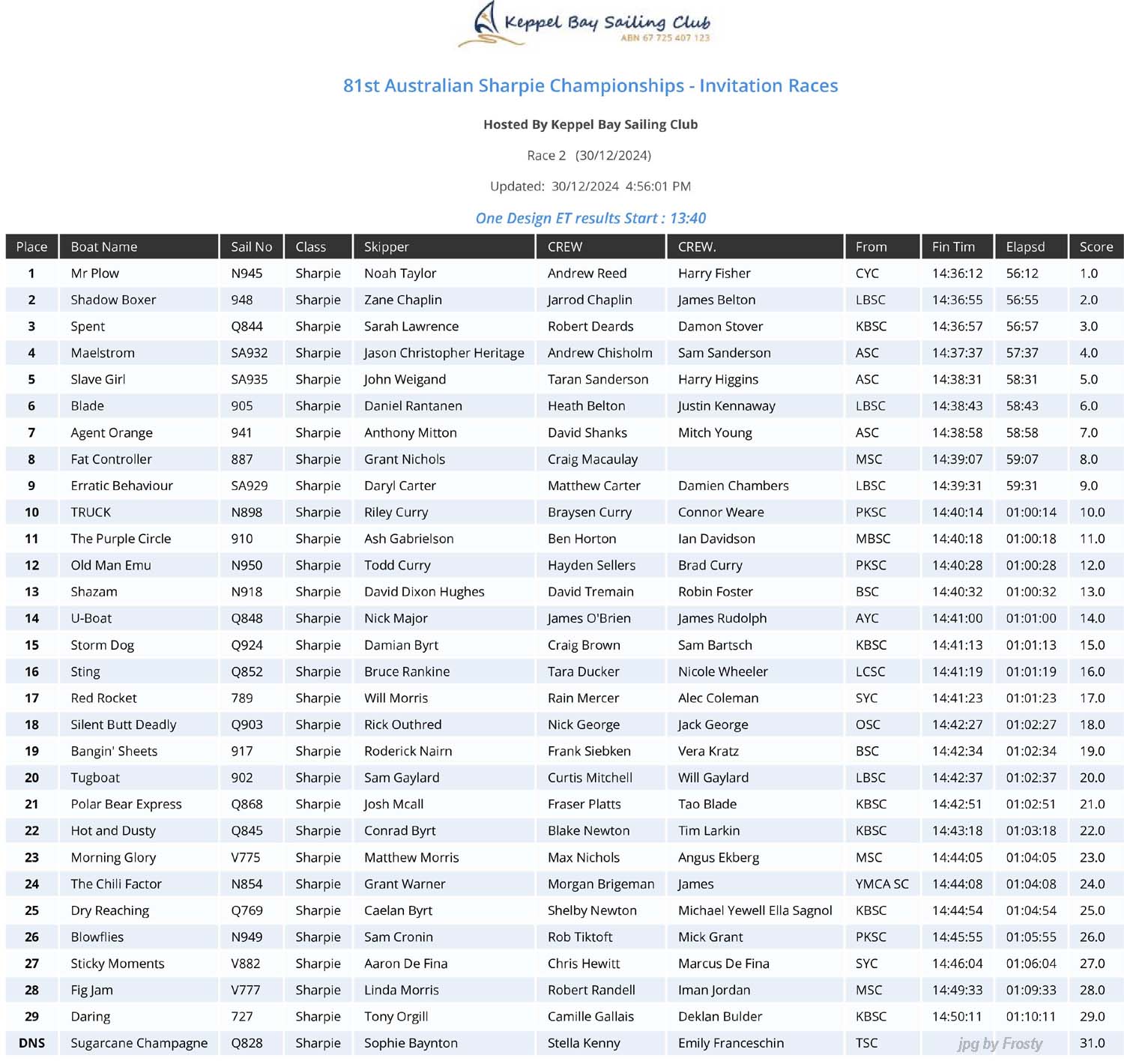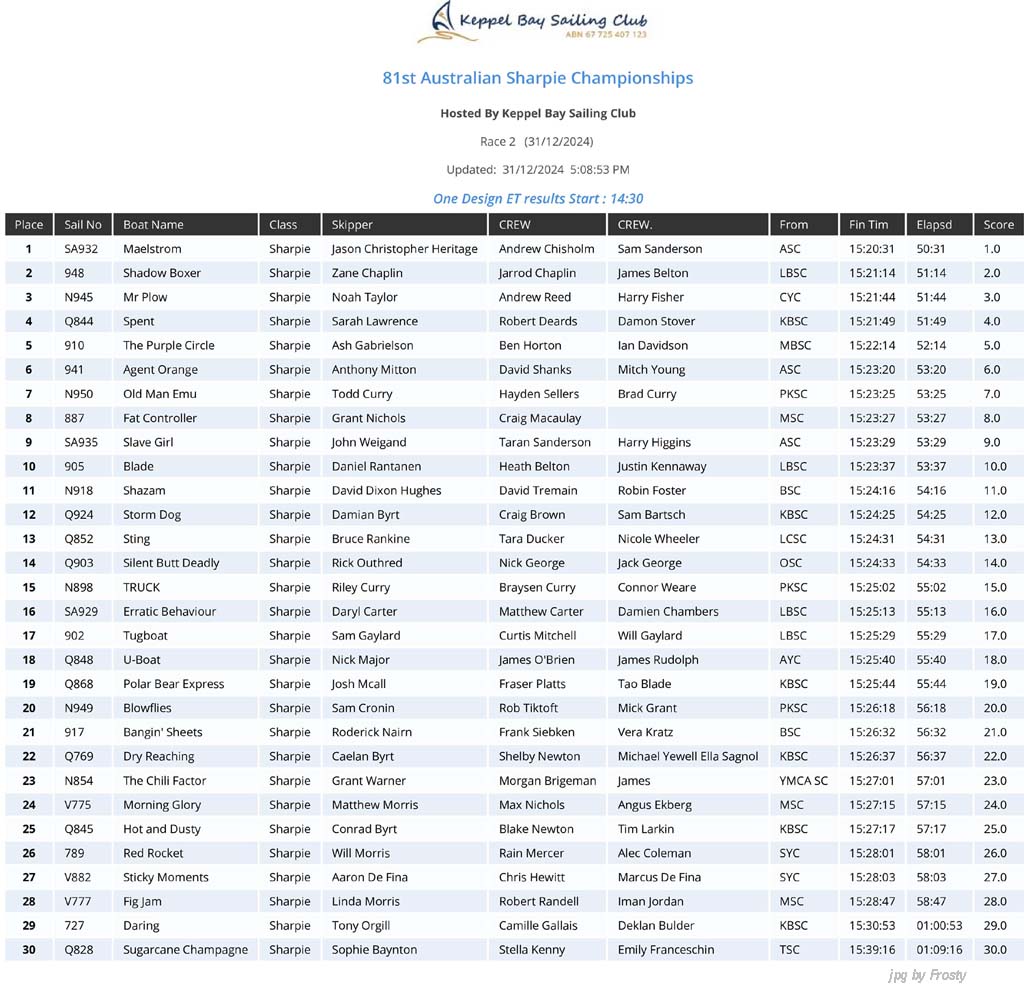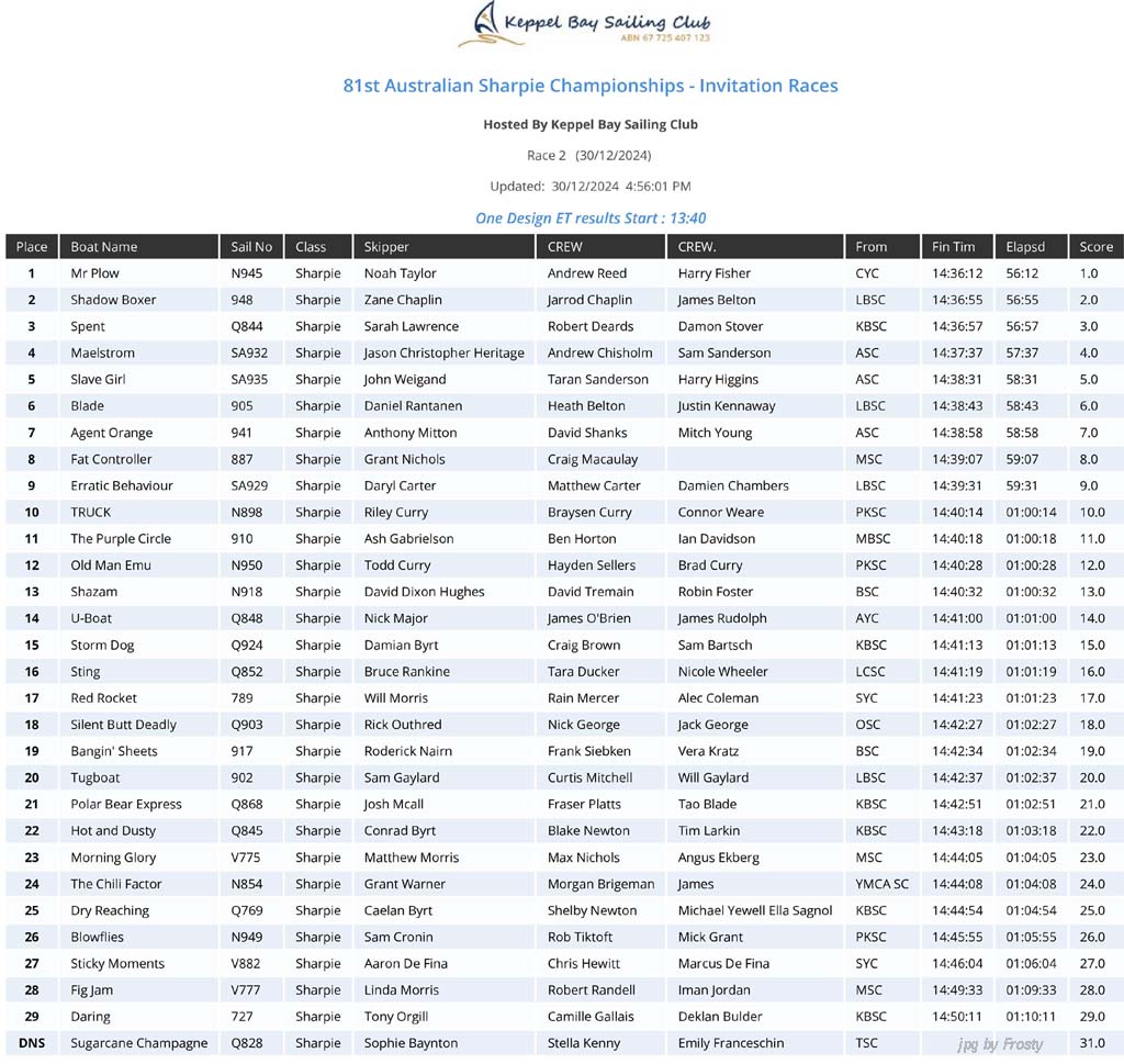 Overall - 2nd Invitation Race - Monday 30th December 2024.