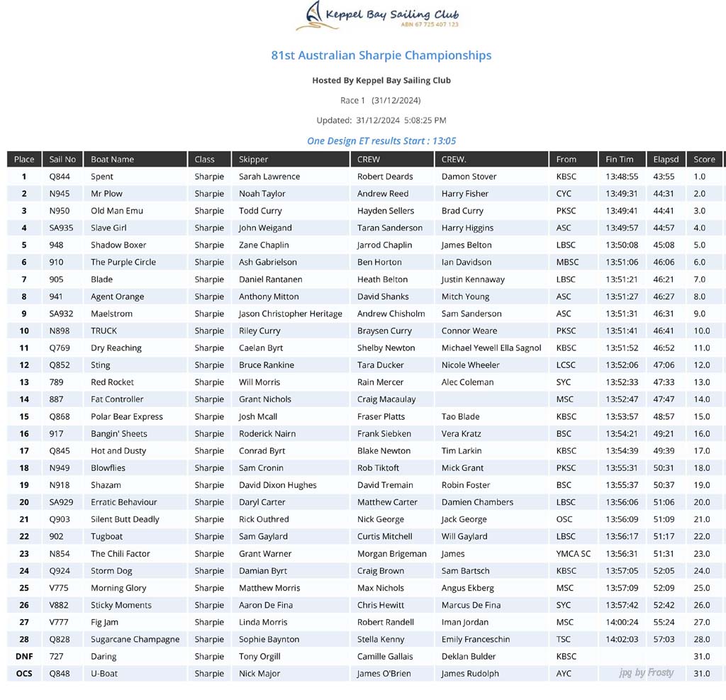 Race #1 - Tuesday 31st December 2024.