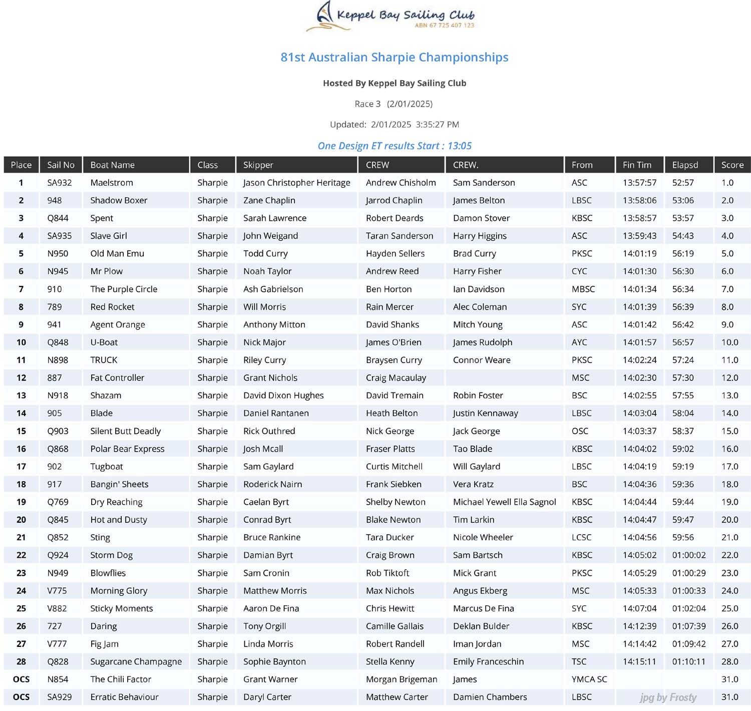 BOM Weather during race - Wind 20-24kph SE gusts to 39kph Temp:27deg.